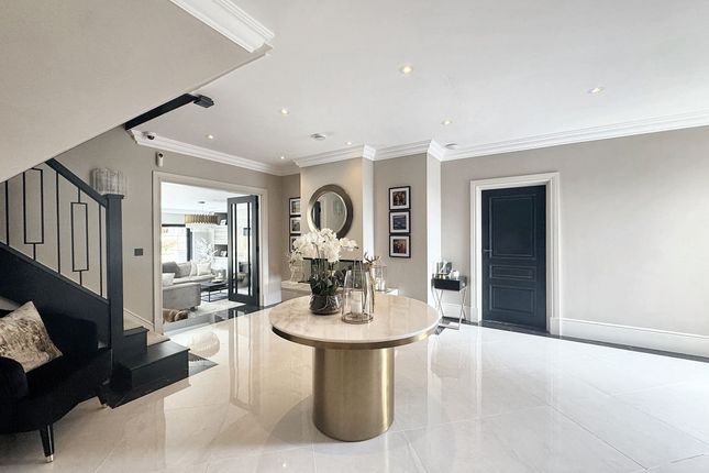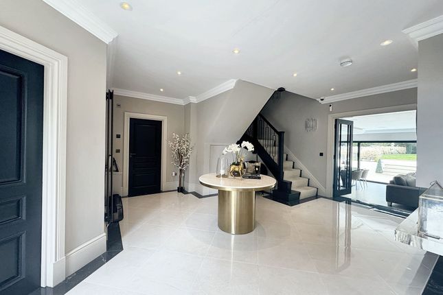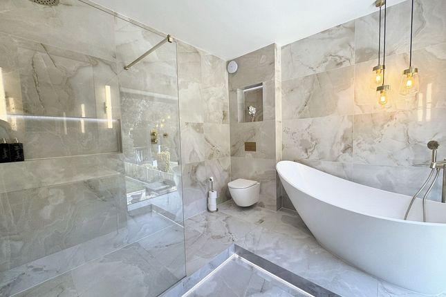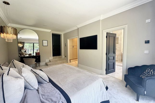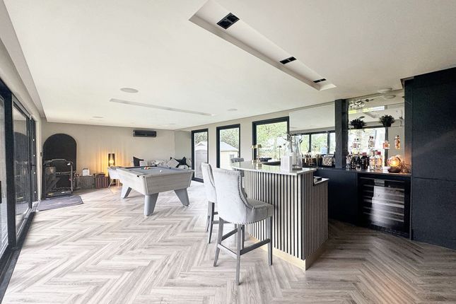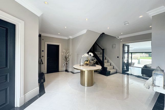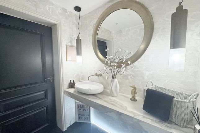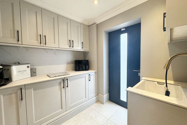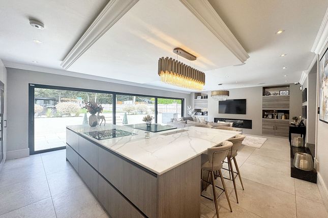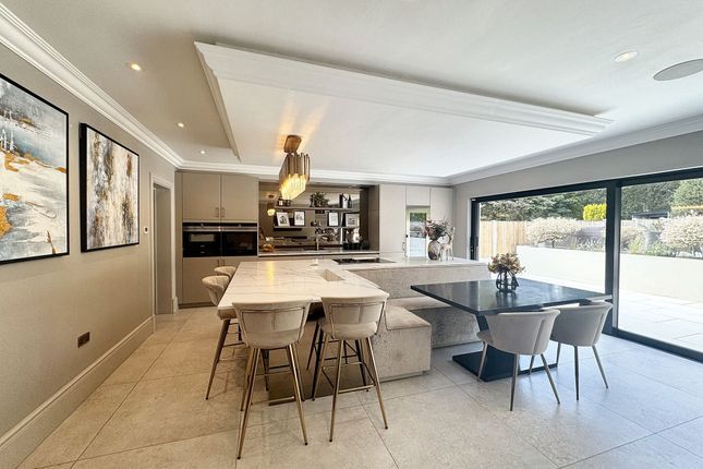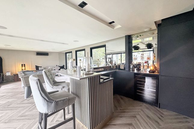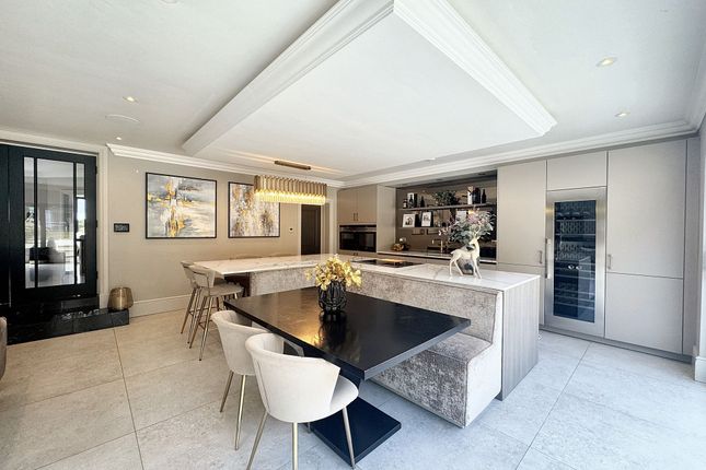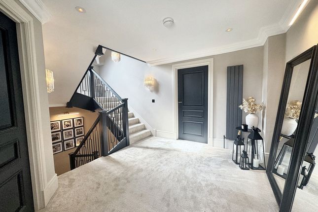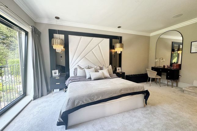 Tenure: LeaseholdBriscombe are delighted to bring to the market this luxurious four-bedroom family home designed and competed to a very high standard. The open plan kitchen/dining/family area is perfect for entertaining family and guests, while the property stretches over three floors, offering contemporary and modern living spaces throughout.Step outside to find a large private rear garden which has been thoughtfully landscaped, featuring a meticulously maintained lawn, a paved patio with a custom-built firepit, offering the perfect spot for alfresco dining and outdoor relaxation. A separate modern garden room at the rear of the deceptive space, currently used as a bar and pool room, adding a touch of luxury to the outdoor space, making it an ideal setting for hosting gatherings.The property also boasts a Control 4 system encompassing smart lighting, surround sound, and home automation throughout. A secure gated driveway greets you upon arrival, providing ample parking for multiple vehicles.Situated in a highly desirable location with views over the rhs Gardens, this home is also conveniently located near various excellent local schools and major transport links, making it an enticing proposition for families and commuters alike.EPC Rating: GLocationSituated in a much sought after location, just a 5 minute walk away from the newly opened rhs Gardens. Other local amenities include: Shops, restaurants, cafes and a variety of good local schools. The regions local motorway links are close by, offering easy access to Manchester City Centre, The Trafford Centre, Manchester Airport and surrounding areas.Entrance Hallway (6.3m x 5.4m)Grand entrance hallway with stairs leading to the first floor living accommodation.Kitchen/Living Room/ Dining Room (9.5m x 5.6m)Siematic designer kitchen with Siemens studio line appliances and Caple wine cooler. Floor to ceiling 9m, 3 panel sliding doors for glorious uninterrupted views of the beautifully landscaped terrace, fire pit and lawns. The kitchen is fitted with a range of modern, matching wall and base units with a hot tap and integrated appliances including: Oven, microwave, warming tray, wine cooler, hob, extractor and fridge freezer. A spacious island/dining area sits in the middle of the room with a bespoke seating area. The living area offers a modern design with wall mounted TV and contemporary fireplace.Study (5.8m x 4.8m)A spacious study with bay window to the front elevation.Snug Lounge (4.3m x 3.1m)Utilised as a second sitting room or could be used as a play room. Window to the front elevation.Utility Room (3.3m x 1.9m)A utility room with storage cupboards, second fridge and Belfast sink. An external door leading to the side elevation.WCA downstairs WC with low level WC and hand wash basinFirst Floor LandingFirst floor landing with doors leading into the bedrooms and bathroomBedroom One (6.4m x 5.6m)Master bedroom with window to the rear elevation.Dressing Room (3.05m x 2.70m)Custom built dressing room with illuminated presentation shelving.En-SuiteLuxurious floor to ceiling tiled bathroom suite comprising of walk in shower, low level W.C, wash basin and freestanding bath tub with private views of the rear garden.Bedroom Two (5.6m x 4.7m)Double bedroom with window to the rear elevation.Bedroom Three (4.7m x 3.6m)Third bedroom with bay window to the front elevationFamily BathroomModern family bathroom, fitted with an oval, free standing bath, low level WC, separate shower and vanity unit hand wash basin. Window to the side elevation.Second Floor LandingSecond floor landing with ample storage and doors lead to the second bedroom and a second bathroom.Bedroom Four (4.4m x 3.1m)Fourth bedroom with window to the rear elevation.Shower RoomSecond floor shower room with marble tiles, fitted with a walk in shower, low level WC and vanity unit hand wash basin. Velux window.Garden RoomPool room & bar with 7.2 Dolby Atmos surround sound, air conditioning and built in juice bar.GardenA beautifully landscaped garden sits to the rear of the property, complete with a well maintained lawn, custom built firepit and paved patio covered by a pergola, ideal for alfresco dining and outdoor entertaining.Parking - Secure GatedA larger than average driveway sits behind a secure electric gate, offering plenty of off road parking for multiple vehicles