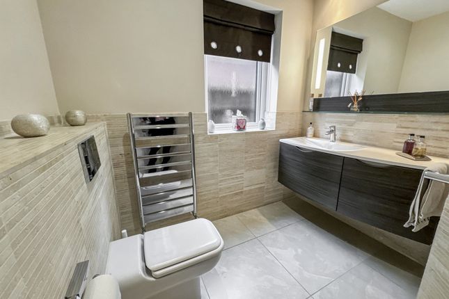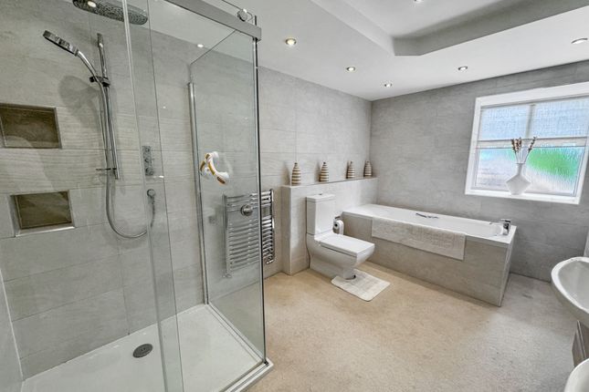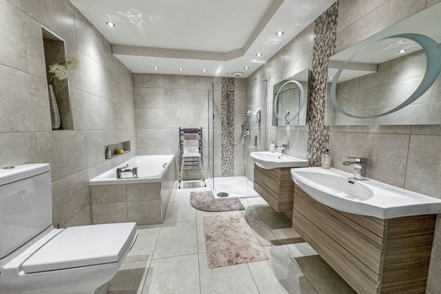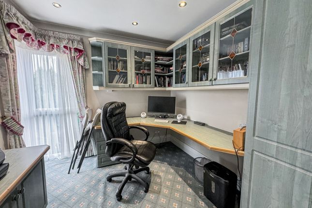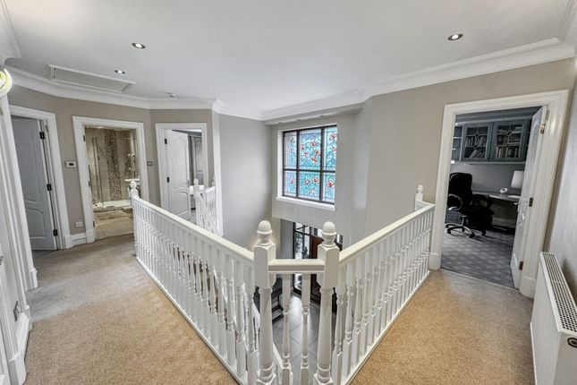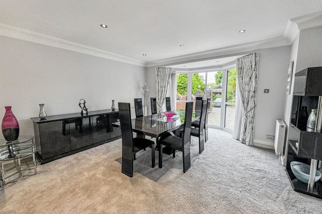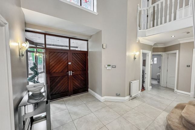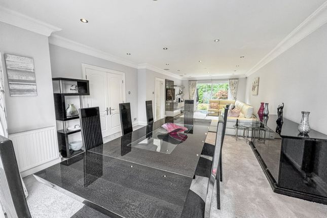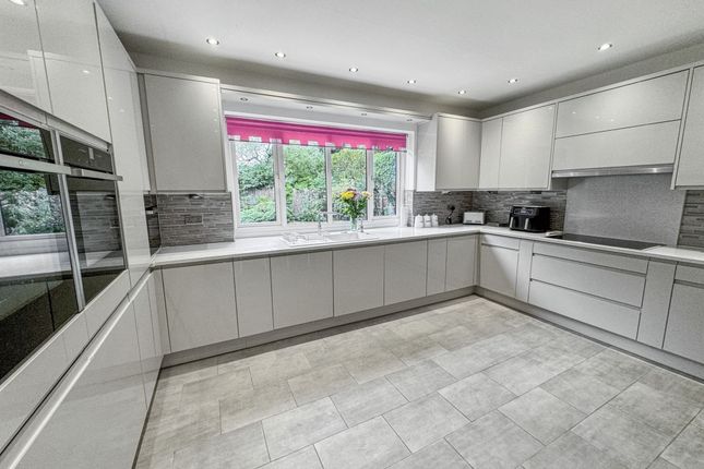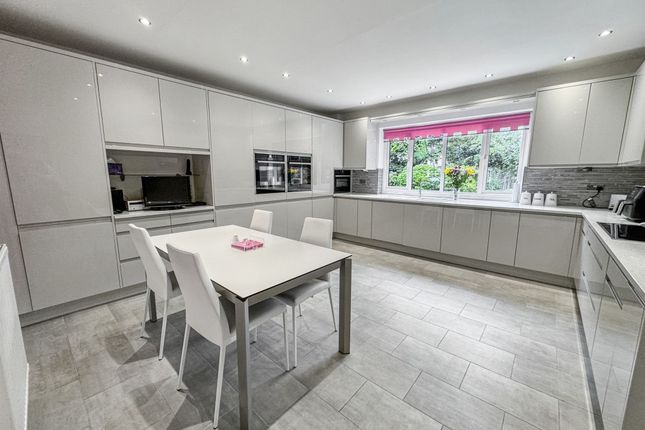 An Impressive Detached Family Residence on the Prestigious Ringley HeySituated on Ringley Hey, a discreet and highly regarded cul-de-sac just off Ringley Road, this outstanding five-bedroom, two-bathroom plus ground floor WC detached home offers a rare opportunity to secure a substantial family property in one of North Manchester’s most prestigious addresses. Built in the late 1980s by the renowned P.J. Livesey, the home combines timeless proportions with modern finishes, all set within a private, gated plot.The approach is striking, with electronic gates opening onto a block-paved driveway providing ample parking, together with a large double garage. Mature landscaped gardens frame the property, enhancing its sense of privacy and grandeur. A spacious porch provides a practical and welcoming entrance before stepping into the main hall.The entrance hall is both welcoming and impressive, with high ceilings that immediately set the tone for the generous accommodation on offer, further enhanced by underfloor heating. To the front, a bright reception room offers an additional sitting area or formal lounge, while a separate study is ideal for working from home. The magnificent open-plan lounge and dining room spans the depth of the house, with dual-aspect views to both the front and rear gardens, creating a light-filled and versatile living and entertaining space. This main living area also benefits from a built-in ceiling speaker system.Just off this space sits the modern fitted kitchen, complete with a full range of integrated appliances and space for a dining table, making it the heart of the home. A separate TV room overlooks the rear garden, providing a cosy retreat for family evenings. Completing the ground floor is a guest WC, a well-equipped utility room, and internal access to the garage.Upstairs, five well-proportioned bedrooms offer ample accommodation for the whole family. The principal suite is particularly impressive, featuring a modern en-suite with separate bath and walk-in shower, twin sinks, and contemporary finishes. The master bedroom also benefits from air conditioning, while the remaining bedrooms are served by a stylish family bathroom with underfloor heating.Externally, the property sits on a generous plot with extensive rear gardens offering both seclusion and space, perfect for outdoor entertaining or family recreation. Additional benefits include a recently fitted Worcester boiler, air conditioning in the sitting room, an easily accessible loft providing significant storage space, and an automated timed pump-operated watering system for the front and rear plants, ensuring they are watered three times daily with ease.With its gated setting, extensive accommodation, landscaped gardens, and prime position on one of the area’s most exclusive roads, this home is truly exceptional. Viewing is highly recommended to appreciate the scale, setting, and lifestyle this property affords.EPC Rating: C