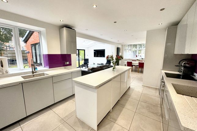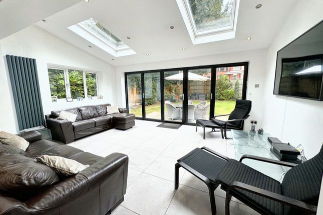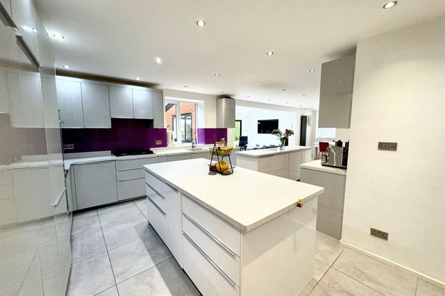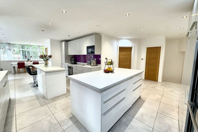A Substantial Six-Bedroom Family Home in the Heart of Broughton ParkPositioned in one of Broughton Park’s most sought-after locations, this impressive detached residence offers generous living space, contemporary design features, and wrap-around gardens – all combining to create a truly special family home.Upon entering, you’re welcomed by a spacious hallway that sets the tone for the rest of the property. At the heart of the home lies a stunning open-plan kitchen, dining and lounge area – an expansive, light-filled space designed for modern living and entertaining. The kitchen features sleek white and grey cabinetry, two central islands, and even a small larder – ideal for additional pantry storage. It flows effortlessly into the lounge, where bi-folding doors open out to the garden and Velux windows bathe the space in natural light. There is also ample room for a full-sized dining table, making this a true hub of the home. A guest WC is located just off this space for added convenience.The ground floor continues with a second lounge area that leads into a fully equipped utility room / optional Passover Kitchen, with direct internal access to the garage – ideal for busy family life. Additionally, there is a separate open-plan formal dining and sitting room at the front of the house, framed by large windows that bring in plenty of natural light. A second downstairs WC is also located off the main hallway.Upstairs, the home offers six generously sized bedrooms, including a principal suite with its own modern en-suite bathroom. The remaining bedrooms are served by a contemporary family bathroom. In addition, there is a dedicated space on this floor that was previously used as a shower room. With the original tiling and plumbing still in place, this room currently serves as a linen store but offers the potential to reinstate a fully functioning shower room if desired.Externally, the property is set on a generous plot with well-maintained gardens to the front, side and rear – perfect for outdoor entertaining, family play, or quiet relaxation. The large driveway, accessed via two gated entrances, provides in-and-out access and ample parking for six or more vehicles. A separate garage offers even more practical storage or secure parking.This is a rare opportunity to acquire a substantial and versatile family home in a prime position. Early viewing is highly recommended to fully appreciate the space, design and lifestyle on offer.EPC Rating: E