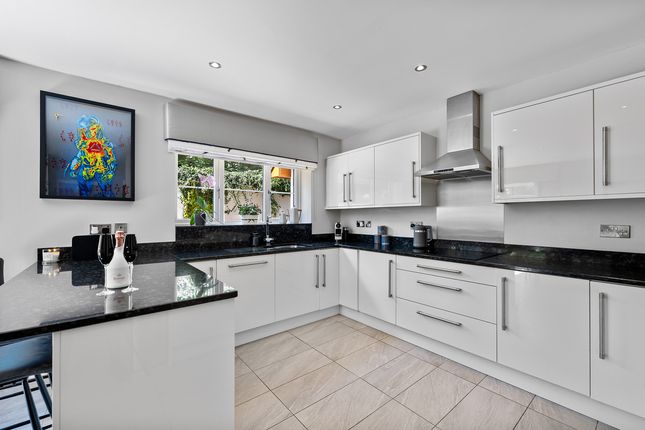 Set within an exclusive gated development of just six individually designed homes, this exceptional five-bedroom detached property was built in 2016 to an exacting specification. Positioned just a short distance from Poynton village and a stone’s throw from the Middlewood Way, it offers a rare combination of modern family living, high-quality finishes, and a peaceful, secure setting – perfect for growing families.Ground FloorUpon entering, you’re welcomed by a bright and spacious entrance hall with a turned staircase rising to the first floor and a convenient downstairs WC. The hallway offers an immediate sense of space and sets the tone for the rest of the home.To the front of the property is a versatile study or snug, complete with a deep box bay window offering lovely natural light – ideal as a home office, playroom, or reading room.The main lounge spans the depth of the property and enjoys a double aspect, with another box bay window to the front and bi-folding doors opening out to the rear garden. This room is the perfect retreat for family relaxation, with excellent natural light throughout the day and direct access to the patio and garden beyond.The real heart of the home is the superb open-plan dining kitchen, offering a stylish yet practical space for everyday family life and entertaining. Fitted with a comprehensive range of modern wall and base units, the kitchen features contrasting work surfaces, a one and a half bowl stainless steel sink, eye-level double ovens, induction hob, integrated dishwasher, and fridge/freezer. There’s ample room for a large dining table and chairs, and French doors open directly onto the rear paved terrace, creating a perfect indoor-outdoor flow for summer dining and entertaining.Off the kitchen, there’s also easy access to the utility room.First FloorUpstairs, the spacious landing leads to five well-proportioned bedrooms and includes a useful linen cupboard and access to the loft.The principal bedroom is a generous double with peaceful front aspect views and benefits from fitted wardrobes and a contemporary en-suite shower room, complete with tiled walls, a large walk-in shower, basin, WC, and chrome towel rail.Bedroom two is another excellent double with its own en-suite shower room, making it ideal for teenagers or visiting guests.Bedrooms three and four are also good-sized doubles, while bedroom five, currently used as a dressing room, would make an excellent child’s room or home office.The family bathroom is finished with a crisp white suite, including a bath with shower over, WC, and wash basin, along with attractive tiling and a window to the side for natural ventilation.Outdoor SpaceThe outside space has been carefully designed to offer both privacy and practicality for family life:To the front, a block-paved driveway provides off-road parking for multiple vehicles and leads to the double garage.A neat front lawn is bordered by mature hedging, providing excellent privacy from the road.The rear garden is split into distinct areas to enjoy throughout the seasons:A paved patio directly off the kitchen and lounge provides space for seating and dining.A lawned side garden gives children and pets room to play.Steps lead up to a raised patio area, complete with a charming timber bar – perfect for entertaining.Beyond, you’ll find another area of lawn and a timber garden shed, offering plenty of outdoor storage.The garden is well-enclosed, secure, and easy to maintain, offering a great balance of family-friendly space and sociable entertaining zones.LocationThis superb home is located in a private, gated development tucked away from the main road, offering a peaceful and secure setting ideal for family living.Poynton village centre is just a short walk or drive away and offers an excellent range of amenities including independent shops, restaurants, bars, supermarkets, and highly regarded local schools.For lovers of the outdoors, the property is just moments from the Middlewood Way, offering miles of scenic walking and cycling paths stretching to Bollington and beyond. There’s also easy access to the Peak District, local parks, and open countryside