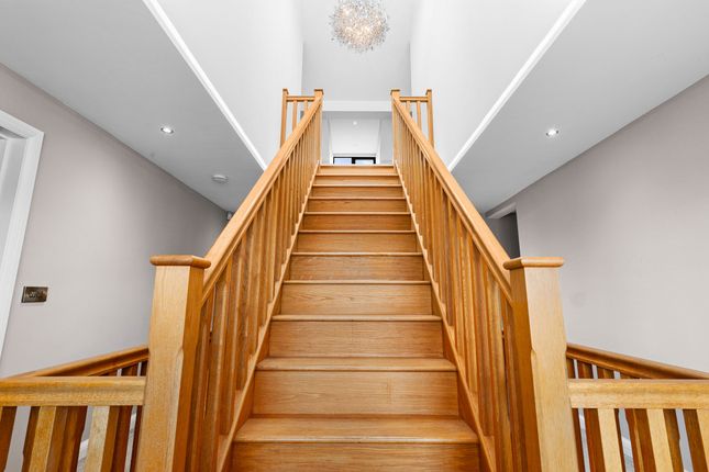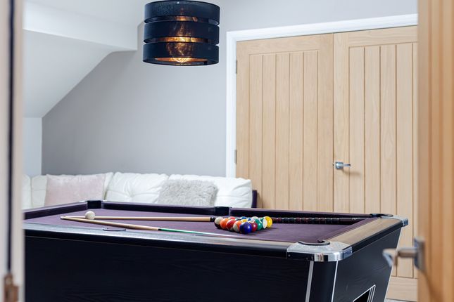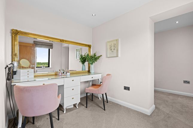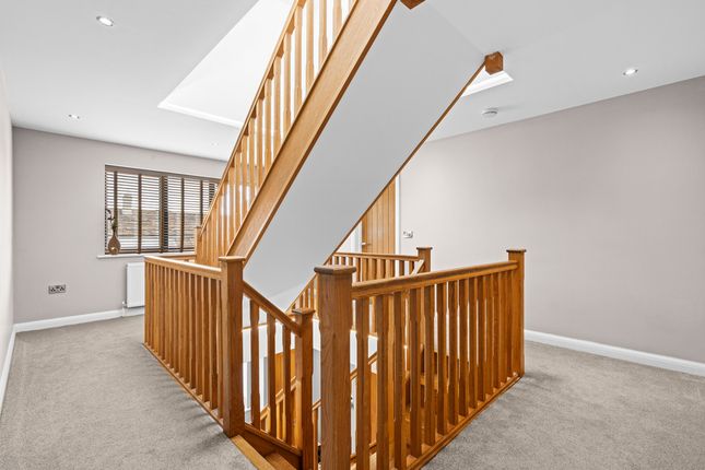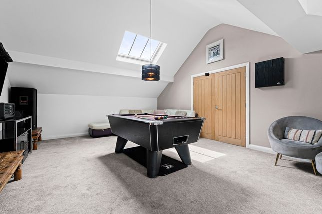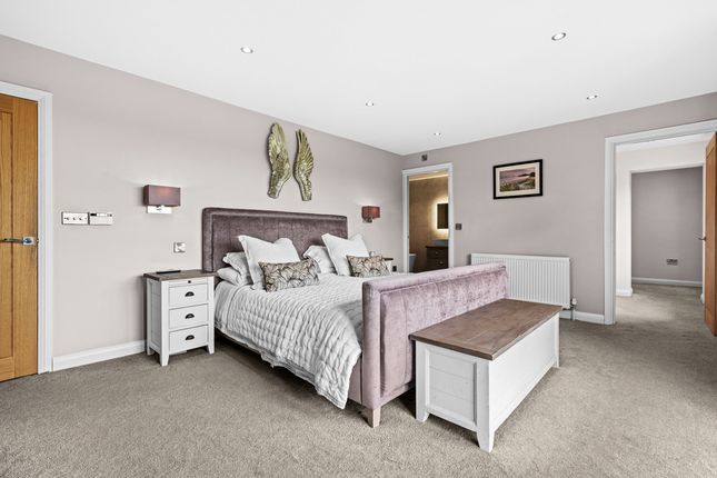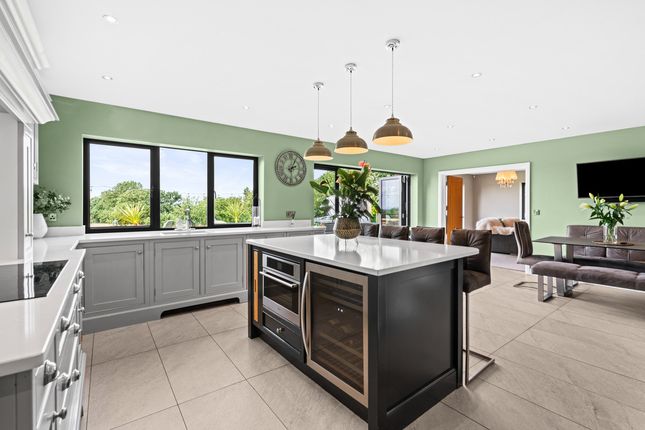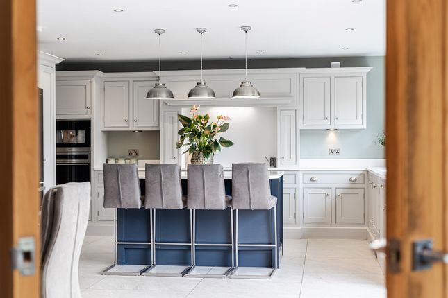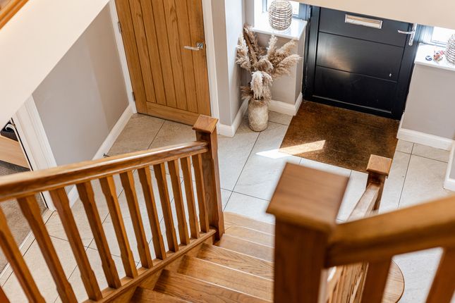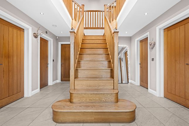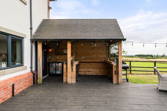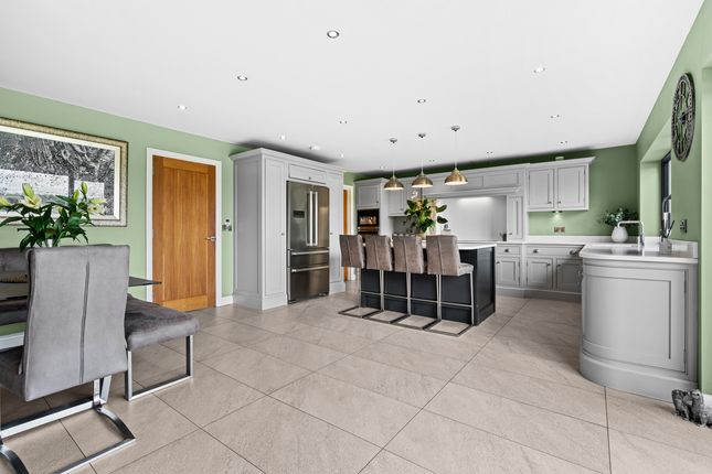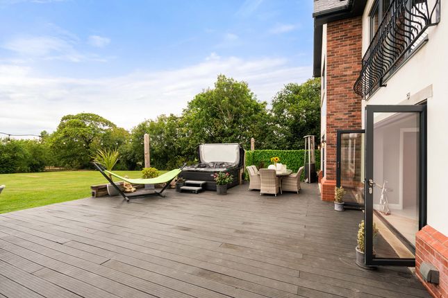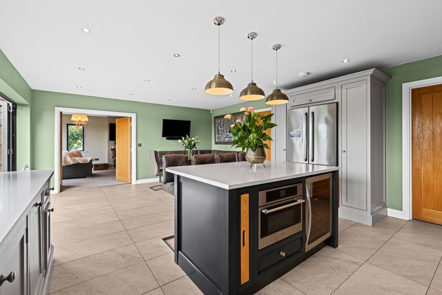 Located off a private lane adjacent to Threaphurst Lane, this outstanding detached home was custom-built by the current owners with a focus on space, quality, and practicality. The layout is extensive yet highly functional, making it ideal for a large family or those who value well-considered design.Upon entering, you're welcomed by a striking bifurcated oak staircase that sets a strong first impression. The large entrance hall features porcelain floor tiles with underfloor heating and provides access to a study, two reception rooms, the main living room, and the open-plan kitchen. There are also two cloakrooms (“his and hers”) and a downstairs WC.At the front of the property are two reception rooms that have previously served as home offices, perfect for remote working, playrooms, or quiet lounges. As with much of the home, the main spaces are positioned at the rear to make the most of the surroundings.The principal living room is generous in size and features a multifuel burner and double windows overlooking the side garden. Double doors to the rear open to a composite decked terrace, while additional double oak doors connect to the kitchen for a natural flow between spaces.The hand-built kitchen is a standout feature. Designed for family life and entertaining, it offers a large dining area, a substantial breakfast bar, and high-spec appliances including a Quooker hot tap, built-in coffee machine, wine fridge, steam oven, double oven, and warming drawers. The Silestone worktops complete the space with a clean, durable finish and continues the high end finishBeyond the kitchen is a flexible utility area, currently known as “the dog’s bedroom”, which could function as a boot room, pantry, or additional storage. This room leads through to the garage and plant room, which runs the depth of the house. Here you'll find all the essential systems: Boiler, tanks, and electrics, as well as double doors opening to both the driveway and the rear garden’s oak-framed outdoor area.First FloorTo the first floor there are four double bedrooms, each with its own en-suite. The main bedroom overlooks the rear garden and has some incredible views toward the Manchester skyline via a Juliet balcony. This suite includes a walk-in wardrobe, a dedicated dressing area, and a premium en-suite featuring a stone bath, rain shower, and double porcelain sinks.Two of the three additional bedrooms also benefit from walk-in wardrobes and all maintain the same high level of finish seen throughout the homeTop FloorThe second floor adds further flexibility with a fifth double bedroom, another bathroom, and two large multi-purpose rooms, currently used as a games room and gym. These spaces could easily be repurposed for independent living, a home cinema, offices, or additional bedrooms, depending on the needs of the next owners.External SpaceThe home sits on a plot of approximately 0.5 acres. A gated entrance opens onto a large gravel driveway with further gated access to the rear of the plot. The garden is designed for privacy and entertaining, with a substantial composite decked area accessible from both the kitchen and living room. An oak-framed outdoor dining and bar area adds a standout feature, alongside a hot tub, all surrounded by peaceful green views. From here the property has a large lawned area with a fenced boundary, also featuring a large pond with fountain to the very rear