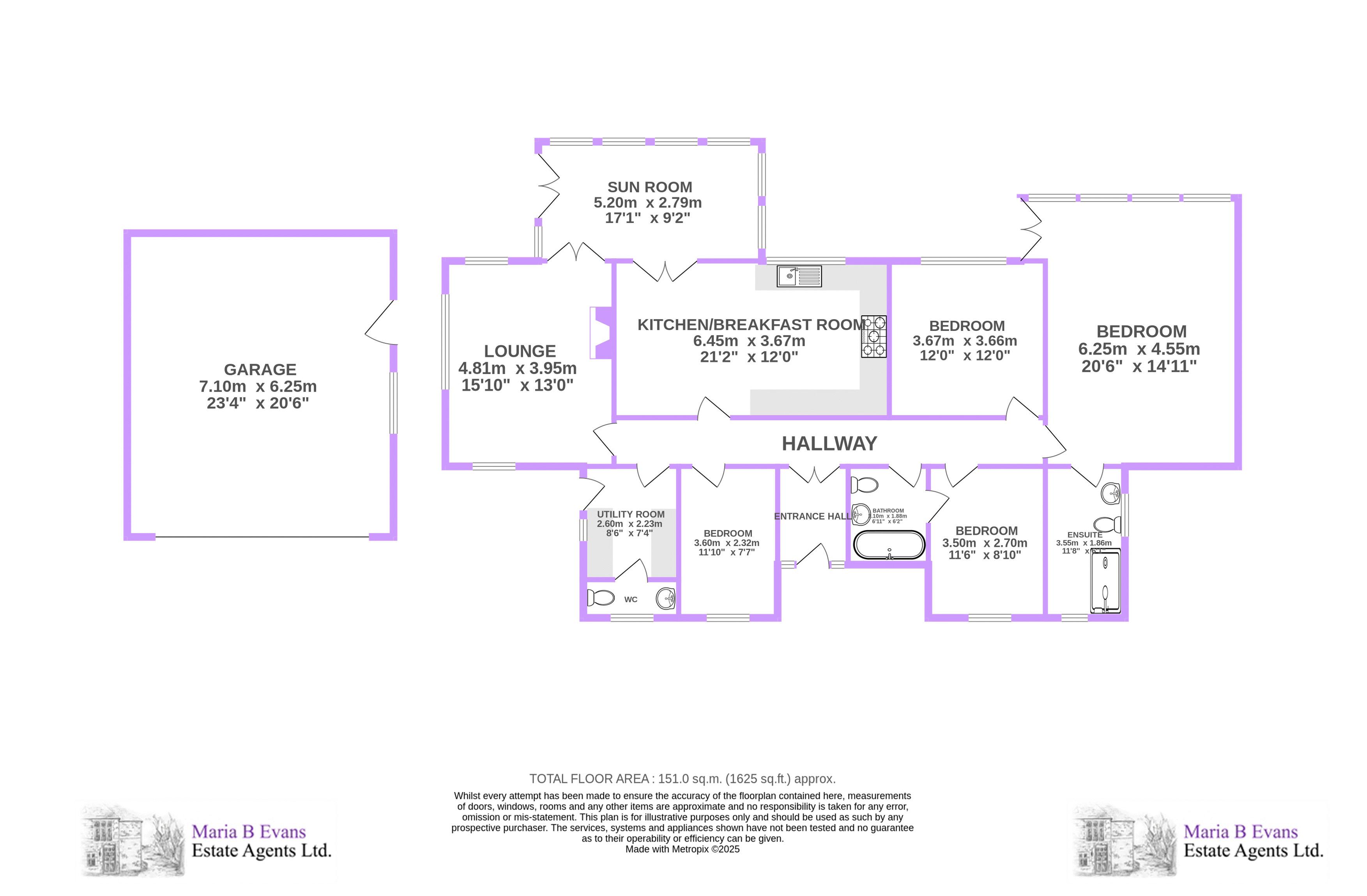 Beyond the electric gates, a sweeping driveway leads to a beautifully extended home designed to capture the breathtaking rural views that surround. Light-filled living spaces flow seamlessly to the kitchen and fantastic dining space, featuring a vaulted ceiling and windows across the landscape- the perfect setting for both relaxation and entertaining. Four spacious bedrooms include a serene master suite with apex windows, while outside, landscaped gardens, a wraparound patio, and a double garage complete this delightful retreat.Arrival at Highlands…Grandeur begins upon arrival as electric gates open to reveal the sweeping Tarmacadam driveway and extensive parking to the side of the property. A cobbled path leads the way to an Indian stone patio, which wraps gracefully around the property, and guides to the front entrance.Once inside, there is a spacious area for removing shoes and coats before continuing into the entrance hallway, guiding both to the living spaces and the bedrooms. This is laid with a decoratively tiled flooring and lit by recess downlights above.Look what’s cooking…Serving as the hub of the home, the kitchen offers a bright and spacious area, complete with cream wall and base units with black quartz surfaces and complementary black tile flooring. A window highlights the stunning, rural views available to the rear of the property, creating the perfect backdrop for entertaining. The kitchen is equipped with an electric range cooker, gas hob and extractor fan above whilst a checkered splashback is laid behind. Its integrated appliances include a microwave, dishwasher and one-and-a-half sink unit with etched drainer to the side whilst there is also space for an American-style refrigerator/freezer. The area is finished with a television point and a combination of pendant and recessed downlights, making the area both functional and inviting.The utility room offers practicality and convenience with light grey wall and base units lining the walls to provide ample storage. These are equipped with pluming for a washing machine, venting for a tumble dryer and a granite one-and-a-half bowl sink unit. The room is illuminated by fluorescent strip lights above and laid with oak-effect flooring whilst also having a UPVC side door for external access.The two-piece w.c. Is accessible from the utility room, with the same flooring running throughout. The suite comprises of a pedestal wash hand basin and close coupled w.c. Dado- height tiling surround the suite, complemented by a pendant light and an extractor fan. An opaque front-facing window allows further natural light to stream through.Walls out, views in…Mindfully extended, this property has been thoughtfully designed to maximise its exceptional views with an extension to the rear to provide what is currently used as a dining room. Striking apex windows frame the surrounding scenic views, whilst the vaulted ceilings above fitted with recess downlights emphasise the feeling of space. There is a television point to the side and a patio door opens out to the rear. There are also two sets of double doors connecting this area to both the kitchen and the reception room, offering the option of an open-plan layout or separate living spaces. Continuing into the reception room, this triple-aspect space is bathed in natural light and also enjoys the surrounding views. As evening falls, the room becomes a cosy retreat with a striking gas fire, surrounded by black granite and having a limestone mantle over. The room is lit by a combination of recess downlights and a pendant light and has a television point to the side. A door connects back to the main hallway, maintaining the flow of the home.Beds with a view…Located at one end of the property, the master bedroom benefits from a thoughtful extension. An ideal retreat, the room is completed with apex windows to the rear and vaulted ceilings. Fitted wardrobes occupy one corner, whilst a vanity dresser sits opposite. The spacious en suite is fully tiled and features a shower with glazed doors to enclose. Further amenities include a pedestal wash hand basin, close-coupled w.c. And fitted drawers with a marble-effect countertop, mirror and lights above. The suite is finished with a chrome heated towel rail.The second bedroom is a double room with fitted wardrobes to the corner, a television point and access to the jack-and-jill style bathroom. This fully tiled suite includes a claw foot freestanding bathtub, pedestal wash hand basin and close coupled w.c. An additional door leads back through to the hallway.The third bedroom is another double room, also with a fitted wardrobes and a desk to one wall and a television point. This room benefits from views across the rear. Scenery that speaks for itself…Immerse yourself in a sense of peace and tranquillity with breathtaking, uninterrupted views from the rear garden, extending as far as the eye can see. A patio area close to the property offers the perfect spot to relax, whilst the rest of the garden is laid to lawn, features slate-chipped rockery areas and is enclosed by a low timber fence across the rear and stone walls to the side. The designated parking area leads to a detached double garage featuring electric up-and-over doors, power, light and attic storage. Side access to the garage is also provided via a convenient pedestrian door.Viewing is strictly by appointment through Maria B Evans Estate AgentsWe are reliably informed that the Tenure of the property is FreeholdThe Local Authority is West Lancashire Borough CouncilThe EPC rating is CThe Council Tax Band is EWarmed by Calor Gas Central Heating The property is served by septic tank Please note: Room measurements given in these property details are approximate and are supplied as a guide only.All land measurements are supplied by the Vendor and should be verified by the buyer's solicitor. Wewould advise that all services, appliances and heating facilities be confirmed in working order 