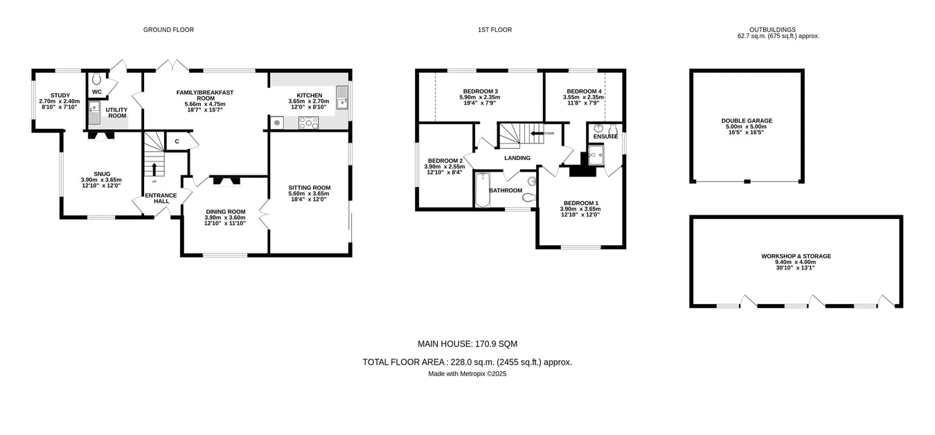 This four bedroom detached house built in the early 1900's offers spacious and versatile accommodation. The property benefits from substantial outbuildings, parking for multiple vehicles, a double garage and is set in approx 1/3 acre plot.Covered entrance porch with attractive front door with bespoke stained glass centre pane, leading into the entrance hall. Stairs rising to the first floor. Door into the dining room incorporating chimney breast, with window to the front aspect. Glazed double doors through to the sitting room which has a fitted wood burner, window to the side aspect and sliding patio doors opening out to the garden. The family/breakfast room has a lovely sunny aspect and has a cloaks cupboard, window to the rear aspect and double doors opening out to the rear garden. Door to utility room and arch through to the kitchen. The kitchen has a comprehensive range of floor and wall mounted cupboard and drawer units with inset one and a half bowl single drainer sink unit with tiled splashbacks. Range of matching eye-level cupboards incorporating wine rack and concealed underlighting. Space and plumbing for dishwasher. Space for range style cooker with large extractor in stainless steel canopy above. Space for tall fridge/freezer and window to the side aspect. Utility room with 'L' shaped worktop with inset single drainer stainless steel sink unit with cupboard under and space and plumbing for both a washing machine and tumble dryer. Tiled splashback. Matching eye-level cupboards. Worcester wall mounted gas fired central heating boiler. Door to the rear aspect and door to the cloakroom, which has a low level WC, and extractor fan. From the entrance hall, door leading into the snug Incorporating chimney breast with polished granite hearth stone and limestone fireplace with fitted woodburner. Arch through to the study which has windows to the side and rear aspect.First floor landing. Master bedroom with window to the front aspect and door into the en-suite shower room which has a fully tiled shower cubicle with Mira shower unit. Pedestal wash hand basin with mirror above, low level WC, window to the side aspect. Bedroom two with window to the side aspect. Bedroom three with large storage recess, door recess and two windows to the rear aspect. Bedroom four with large door recess, access to roof space and window to the rear aspect. Family bathroom with suite comprised of a panelled bath unit with shower unit over and shower screen. Wash hand basin and low level WC, chrome ladder radiator, extractor fan, window to the front aspect.The property is approached from Sway Road over a loose shingle drive and cattlegrid with its own five bar gate opening to a good size loose shingle driveway bounded by areas of lawn, all enclosed by fencing leading up to the open fronted garage and with a concrete pathway leading up to the front door.The open fronted garage has power, strip lighting and roof storage. To the rear of the garage are log stores and a loose shingle pathway leading through to the rear garden. The front lawn also leads through to the rear garden via a patio area, mature fruit trees, and through to a large loose shingle area where there is a small greenhouse and further log stores. Garden shed. Large outbuilding: This could have many uses and would easily subdivide into three with suitable doors and windows already in place. Good size hardstanding to rear of outbuilding.The property is conveniently located within walking distance of Brockenhurst village centre, in the heart of the New Forest, close to shops and amenities. The open forest is also just moment away. He village offers a mainline railway station with direct links to London Waterloo in approximately 90 minutes. To the north is the village of Lyndhurst and Junction 1 of the M27 motorway which links to the M3, giving access to London. The nearby Georgian market town of Lymington has many independent shops, a picturesque quay, deep water marinas, and sailing clubs. Lymington has numerous highly regarded restaurants and designer boutiques and is surrounded by the outstanding natural beauty of the New Forest National Park.