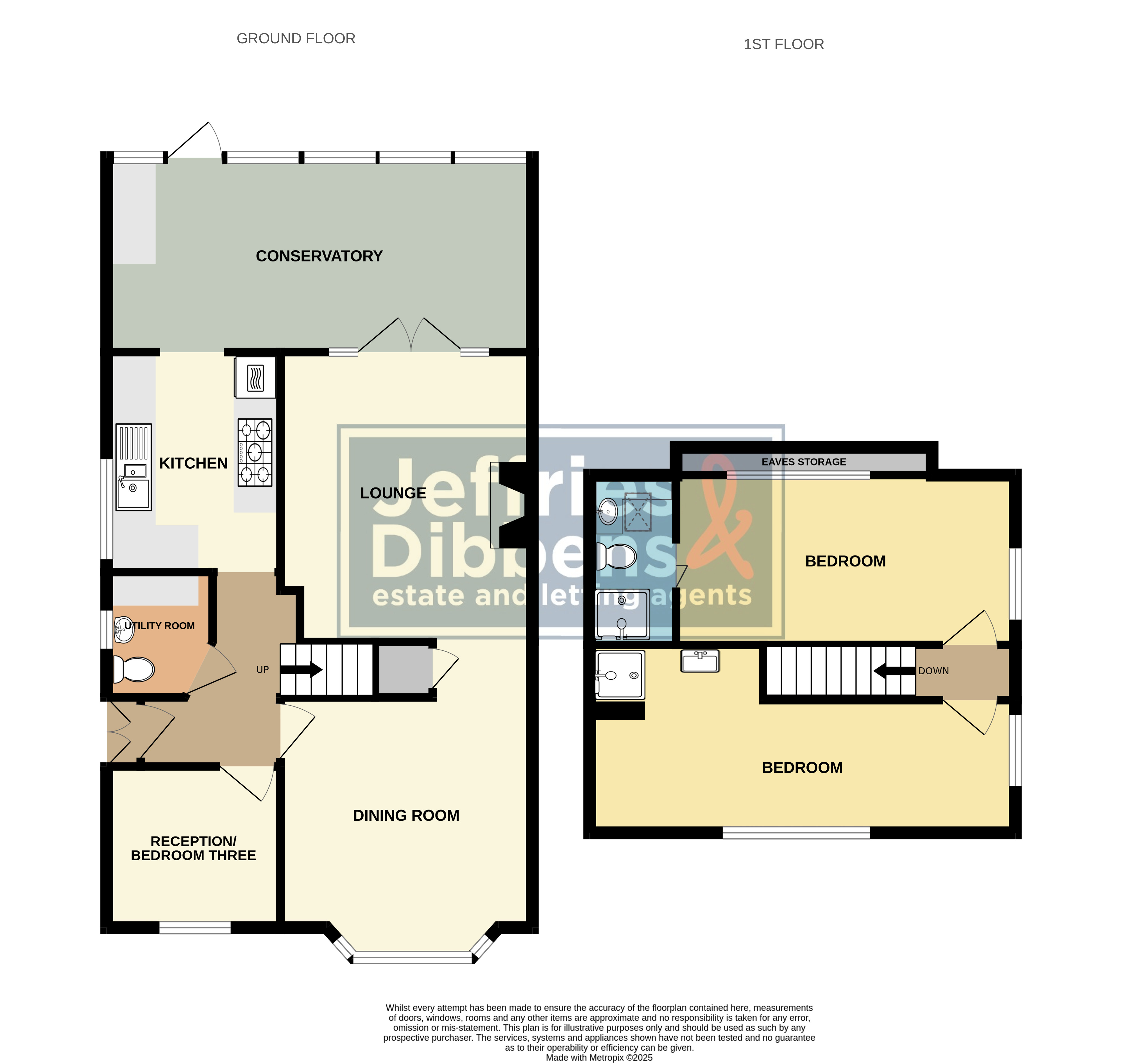 A delightful and versatile two/three bedroom home situated in a highly desirable area, offered for sale with no forward chain. The property features a dining room with bay window, lounge which leads into a bright conservatory, a modern fitted kitchen, utility room with WC and a versatile third reception room that could serve as a third bedroom or home office. Upstairs offers two double bedrooms, one with shower cubicle and one with an en-suite shower room and useful eaves storage. Outside benefits include front and rear gardens, garage and off-road parking for multiple vehicles. Ideally located close to local amenities, schools and transport links, this is a superb opportunity for those seeking a well-presented, chain-free home in a sought-after location. A delightful and versatile two/three bedroom home situated in a highly desirable area, offered for sale with no forward chain. The property features a dining room with bay window, lounge which leads into a bright conservatory, a modern fitted kitchen, utility room with WC and a versatile third reception room that could serve as a third bedroom or home office. Upstairs offers two double bedrooms, one with shower cubicle and one with an en-suite shower room and useful eaves storage. Outside benefits include front and rear gardens, garage and off-road parking for multiple vehicles. Ideally located close to local amenities, schools and transport links, this is a superb opportunity for those seeking a well-presented, chain-free home in a sought-after location.Porch 2' 1" x 2' 0" (0.64m x 0.61m)hallway 9' x 3' 11" (2.74m x 1.19m)reception room/bedroom three 7' 11" x 8' (2.41m x 2.44m)dining room 12' into bay x 11' (3.66m x 3.35m)lounge 13' 1" x 11' (3.99m x 3.35m)conservatory 9' x 19' (2.74m x 5.79m)utility room 5' x 4' 11" (1.52m x 1.5m)kitchen 10' x 8' (3.05m x 2.44m)first floor landing 2' x 4' (0.61m x 1.22m)bedroom 9' at widest point x 19' (2.74m x 5.79m)bedroom 9' x 14' 1" (2.74m x 4.29m)en-suite 9' x 4' (2.74m x 1.22m)rear garden garage
