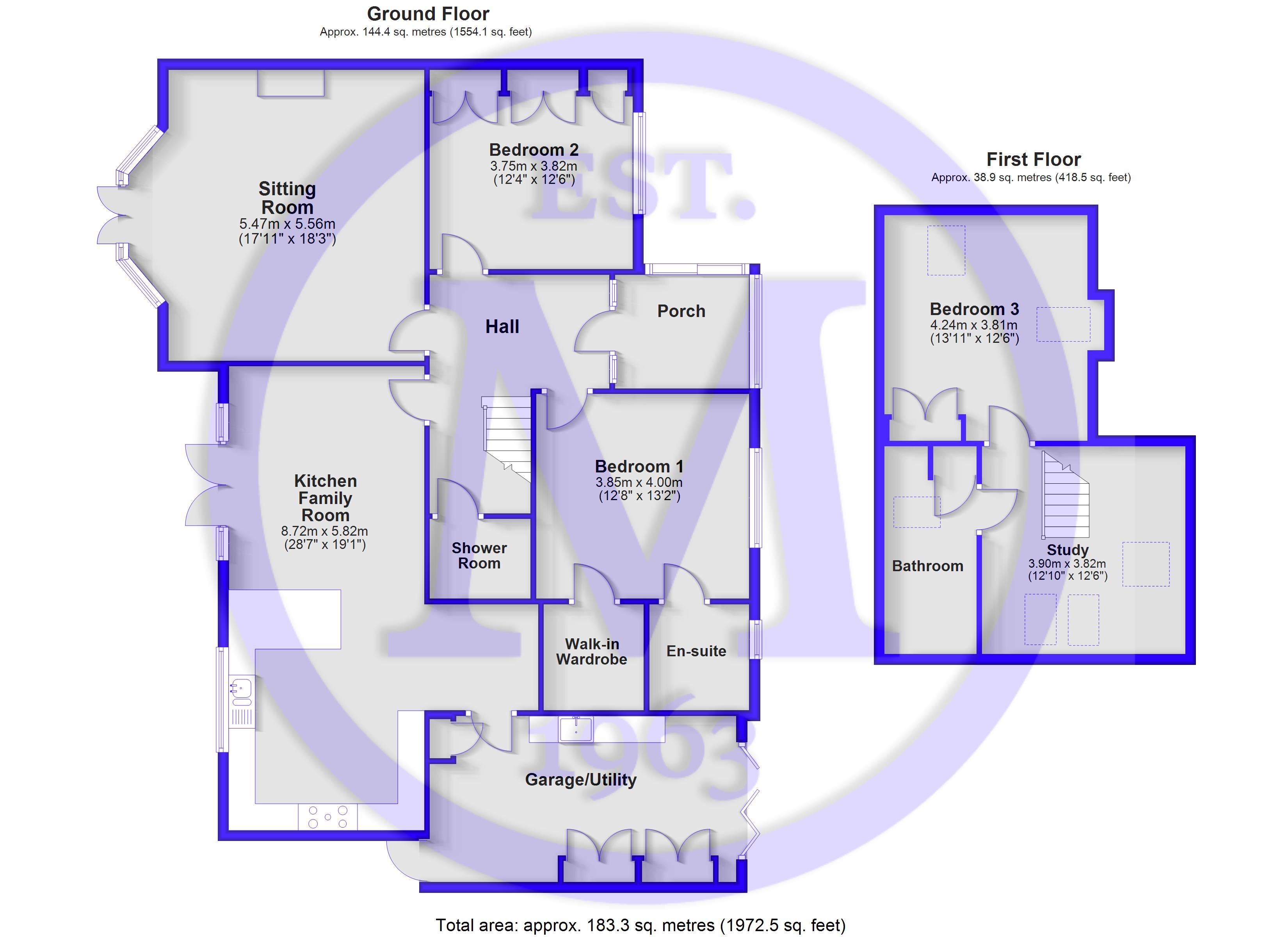 Entrance porch with a UPVC double glazed sliding door and tiled flooring.Lovely reception hall with an open glass staircase to the first floor, attractive tiled flooring, and recessed ceiling spotlights.Impressive large sitting room with a feature UPVC double glazed walk-in bay, casement doors opening onto the patio, a lovely outlook over the rear garden, a recessed fireplace with a timber mantle, tiled hearth, and a living flame stove.Stunning kitchen/dining room, with the kitchen area offering an excellent range of modern units with soft closing drawers and doors, stone worktops and upstands, an undermounted one and a half bowl sink unit with a mixer tap, a range style cooker with an extractor over, an integrated combination oven and dishwasher, an American style larder fridge, and a breakfast bar. The dining area provides ample space for a dining table, sofas, etc., and features UPVC double glazed casement doors onto the patio and rear garden.Garage converted into a large utility/store room, with an excellent range of built-in storage, a high level double glazed Velux window providing natural light, a modern wall mounted Vaillant gas fired boiler, a sink unit with a mixer tap, space for a washing machine and tumble dryer, recessed ceiling spotlights, and a UPVC double glazed door to the outside. This room could be reconverted into a garage if required.Two ground floor double bedrooms, with the excellent master bedroom benefiting from a walk-in dressing room with built-in shelving, drawers, and hanging space. There is an en-suite room fitted with a modern white suite comprising a fully tiled shower cubicle with a thermostatically controlled shower, a wash basin with storage beneath, a WC, recessed ceiling spotlights, an extractor fan, and tiled flooring.Ground floor shower room fitted with a modern white suite comprising a fully tiled corner shower cubicle, a wash basin, a WC, tiled flooring, recessed ceiling spotlights, and an extractor fan.Spacious first floor landing with built-in desks and storage, ideal for a study or home office area.First floor double bedroom benefiting from a double aspect, built-in wardrobes, and access to eaves storage.First floor bathroom comprising a tiled panelled bath with a mixer tap over, a wash basin, a WC, tiled flooring, an airing cupboard, recessed ceiling spotlights, and an extractor fan.This property sits on a much larger than usual plot for this location, having purchased an additional area of garden.The front garden is bordered by a low stone wall separating it from the pavement, and a shingle driveway provides off road parking for several vehicles.Adjoining the rear of the property is a large patio area, with the remainder laid mainly to two lawns facing a sunny south-westerly direction. The garden features mature flower and shrub borders, a large timber garden shed, and offers a good degree of privacy and seclusion.