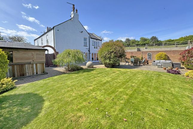 Rare to the market, The White House is an exceptional 5 Bedroom Detached family home occupying an impressive 4 Acre plot, inclusive of a delightful 1 Bedroom Detached Cottage born from a charming stable conversion, with the addition of a barn holding a wealth of possibilities. The White House is steeped in local history with a dwelling on the land dating back over 300 years, privately nestled along a discreet country lane within the medieval village of Sheraton, opposite a scheduled monument. The incredible 4 acre plot enjoys stunning panoramic views across the open rolling fields to the sea beyond courtesy of an elevated position, which can be enjoyed from the comfort of the Master Suite Juliet balcony or the landscaped gardens and paddocks. The main palatial residence is a luxury dwelling delivering in excess of 4,000sq ft of living space, extremely well finished throughout with a sense of country grandeur, celebrating the historical charm and original features with a contemporary 21st Century feel. The property is extremely energy efficient with heat source pumps providing all of the heating and hot water, with the addition of 16 solar panels on the roof of the front elevation generating power of approx. £2,500 per annum, along with a natural spring water well to the rear. The main residence achieved an impressive EPC rating of A as a result.The detached cottage has been previously utilised as an AirB&B generating a generous annual rental income. The cottage is also ideally suited as accommodation for elderly relatives, growing independent children, nanny, guest accommodation or an office / studio for those wishing to operate a business. The adjacent barn is holds great potential for conversion into another generous residential dwelling, event space, workshop, multicar garage or stables.The discreet country lane only services three residential dwellings, located just off the A19, ideal for those seeking rural luxury with the convenience of a rapid commute, with the Whitehouse being the last residence along the lane. As you approach the property, you’re greeted by a driveway leading up to grand electric gated entrance with intercom to greet your guests, with an extensive imprint courtyard driveway beyond, befitting of this impressive family residence. A series of external CCTV camera’s monitor the property 360 degrees for peace of mind.The Whitehouse proudly sits to the rear of the courtyard driveway with an impressive footprint. The front elevation is double front, finished in a pale cream render with a large reception porchway centrally located with oversized double doors. The porchway is half glazed with an apex roof, stonework sills and a feature tiled floor. Beyond the hallway you’re welcomed into a spacious reception hallway with beautiful Karndean flooring running underfoot, oak spindle staircase flowing up the wall to the right and handmade solid oak doors throughout. The property benefits from underfloor heating throughout the entire ground floor and a number of rooms on the first floor. The hallway is complimented by a guest washroom, to the rear of the stairs, fitted with a white bowl sink, wall mounted toilet and half height blue panelling.A doorway to the right, as you enter, leads you through into a generously proportioned family room with a bespoke built-in media wall, feature slate fireplace, soft pale carpet and an additional entrance to the rear linking through to the back door and kitchen. The family room is illuminated by ceiling recessed spotlights of an evening.Via half glazed double doors to the left of the hallway, you’ll discover a large living room with an incredible exposed brick inglenook fireplace, with a cosy multifuel stove within. A further set of half glazed oak doors connect the living room through to the dining room, creating a lovely open flowing family space. There’s a soft pale carpet within the living room, switching to wooden flooring within the dining room, helping to visually zone the space.A secondary hallway space feeds the main reception hallway, dining room, kitchen & breakfast room and the utility & boot room to the rear. The utility & laundry room the perfect addition to this country home, feeding through to a spacious boot room, with side door access to the driveway. Ideal for returning from country walks with the dog, riding the horse or returning with groceries from the car. The utility and boot room enjoys a vaulted ceiling with Velux windows and ceiling recessed spotlights.To the rear aspect, you’ll find a stunning family kitchen & breakfast room, flooded with natural light courtesy of bifold doors to the rear, opening out onto the stone patio beyond, ideal for alfresco dining during the summer months. The kitchen is exceptionally well presented with a multitude of fitted units finished in a high gloss wenge wood with contrasting crisp white quartz worktops, inclusive of a large central feature island. The island plays host to a black glass induction hob and modern pop-up extractor unit, along with a recessed wrap around breakfast bar. The kitchen benefits from an array of integrated appliances, inclusive of a high mounted double oven, warming drawers, microwave and coffee machine, in addition to a dishwasher. Off the kitchen there’s a pantry & wine store, handy for those passionate home cooks.Completing the ground floor, located between the kitchen & family room, there’s a rear reception area with a side door leading out into the landscaped gardens and a wet room, with white gloss tiling, ceiling mounted rainfall shower and a corner sink, ideal if you’re returning with muddy dogs or have a family hot tub in the garden.As you ascend the oak spindle staircase from the reception hallway, you’re welcomed onto a spacious first floor landing, which directly services 5 large double bedrooms, family bathroom and a home office & study. Th family bathroom is generously proportioned with an oversized minimalist walk-in sho