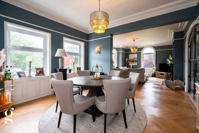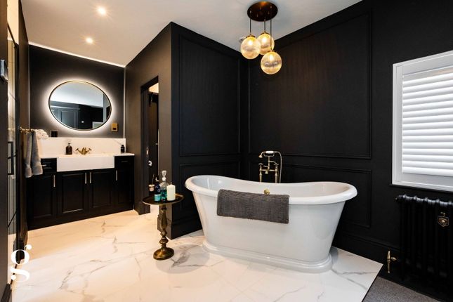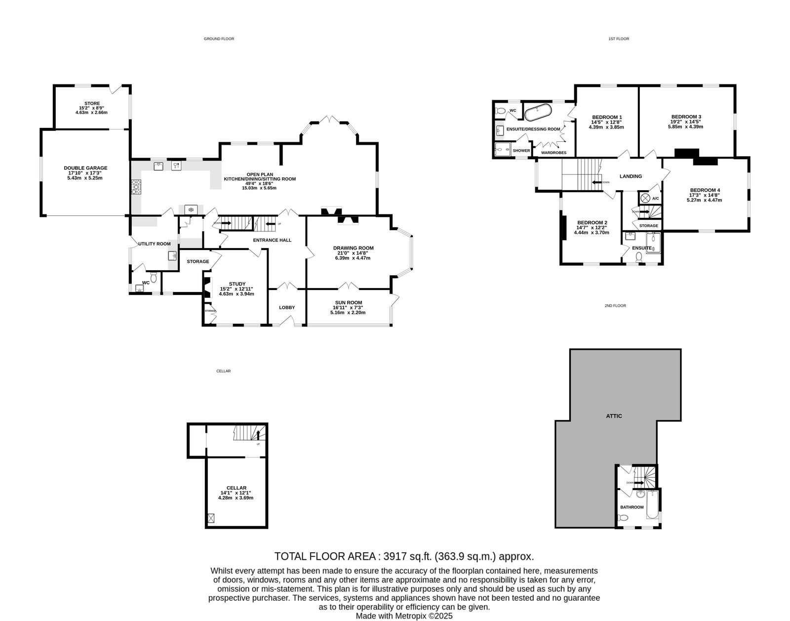 A Distinguished 4 Bedroom Detached Victorian House set in Hampton Park, one of Hereford’s most prestigious residential districts. The Clyst offers over 3,900 sq. Ft of beautifully renovated period living, restored with exceptional care and finished with bespoke craftsmanship.Lobby – Entrance Hall – Drawing Room – Sun Room – Study with Concealed Storage Room – Open Plan Kitchen/Dining/Sitting Room – Utility Room – Downstairs WC – Cellar – Landing with Reading Nook – Airing Cupboard – Principal Bedroom Suite with Ensuite/Dressing Room – Second Guest Bedroom with Ensuite – 2 Further Large Double Bedrooms – New 2nd Floor Bathroom – Attic – Wrap-Around Lawned Gardens – Entertaining Terrace – Summerhouse – Double Garage with Store Room – Sweeping DrivewayThe house is arranged across four levels, with four reception rooms including a stunning open plan kitchen and family area, four double bedrooms including two ensuite chambers, wrap-around lawned gardens with private entertaining terrace summerhouse, and generous driveway & double garage adding practicality. Elegant Victorian character is married alongside thoughtful reconfiguration, high quality fittings and handcrafted detailing throughout, with renovation works throughout completed in the last 2 years.Hampton Park is one of Hereford’s most desirable addresses, combining leafy residential streets with easy access to the city. The property lies within walking distance of Hereford Cathedral School, the Sixth Form College, the County Hospital and the city centre, with its shops, restaurants and rail links. Riverside walks along the Wye and countryside pubs at Hampton Bishop are also close at hand, offering lifestyle appeal.The PropertyLobby & Entrance Hall: A striking entrance, freshly re-skimmed and redecorated, with bespoke wall panelling and solid oak herringbone flooring laid with brass trim insets. Hand-carved skirting and architraves reinforce the heritage detailing, while a bespoke stair runner sets an elegant first impression. The initial lobby space is separated from the entrance hall via the first of two stunning bespoke archways with Crittall-style glazing, laid in new floor tiles.Drawing Room: An imposing reception room with Victorian cornicing and ceiling roses, central fireplace fitted with a woodburning stove, and sash windows with curved arches set within the bay window, overlooking the gardens. Re-skimmed walls and brass-finished sockets add period authenticity.Sun Room: A bright and inviting accessed from the drawing room, with half-vaulted glazed roof, windows and a door onto the terrace, creating an excellent reading or breakfast room.Study: A beautifully decorated workspace, overlooking the driveway. The inclusion of Corston solid brass and bronze sockets elevates the detail, while proportions allow for a library or professional office setup. Two tall arch windows are stylishly finished with new plantation shutters, while a working woodburning stove sits within the fireplace between two full height bookshelves, the right of which is actually a large secret door; concealing a useful shelved storage room behind.Open Plan Kitchen/Dining/Sitting Room: The central hub of the home, reconfigured by knocking through the wall between the lounge and dining room, now forms a generous and versatile open plan space. A newly created archway, modelled on the original, enhances the symmetry and flow, while bespoke Crittall style steel & glass doors add architectural splendour. The kitchen includes a Rangemaster stove with matching extractor & black subway splashback tiles, dishwasher, space for an American style fridge/freezer, and extensive cupboard storage with granite countertops. A practical u-shaped arrangement of units is set beneath two wide windows overlooking the garden, fitted with a Belfast sink and drainer.At the heart of the room, beneath the reinstated Victorian cornicing and ceiling roses, the dining area offers excellent proportions for entertaining, comfortably accommodating a large table. This space enjoys direct flow to the sitting area, filled with natural light from French doors that open to the rear garden. With oak herringbone flooring continuing seamlessly throughout, woodburner set within the fireplace and a cast iron radiator with antique brass fittings, this space is beautifully appointed.Utility Room & WC: Practical and separate, with ample storage & Belfast sink, space for laundry appliances and external access to the drive, with a further door to the redecorated WC. The utility also includes a newly laid flat roof.First Floor Landing: Wide and well-lit, freshly decorated with bespoke panelling, leading to the bedroom suites. A seating area at the top of the stairs offers a perfect reading nook, beneath the shuttered window.Principal Bedroom Suite: The ultimate retreat – a large master bedroom with new fitted carpets. Walls have been removed to create a large private dressing room & ensuite bathroom, now fitted with bespoke joinery and finished to an exceptionally high standard. A roll-top bath, walk-in shower and marble-effect tiling complete the look, while new carpets and ceiling detailing ensure warmth and elegance.Second Bedroom Suite: Another substantial double with its own newly fitted ensuite shower room. This room offers the proportions of a Victorian home, privacy, and luxury for visiting guests.Bedroom 3: A generously spacious double bedroom with newly re-skimmed walls, fresh decoration, dual-aspect sash windows and built-in wardrobes.Bedroom 4: A further sizeable double, also redecorated and presented with the same attention to detail. Includes a cast iron radiator, dual aspect sash windows, oak flooring and pendant lighting.Family Bathroom: Reconfigured into the tower space. A completely new installation, with traditional style pedestal basin, WC, LED mirror and bath with overhead shower, surrounded by marble-effect tiling. Finished in soft grey tones w