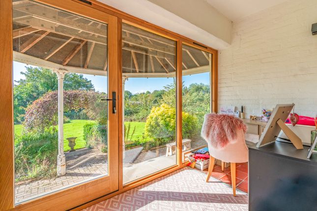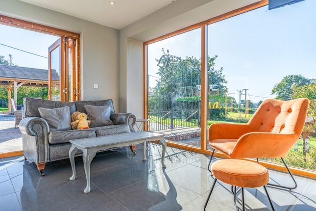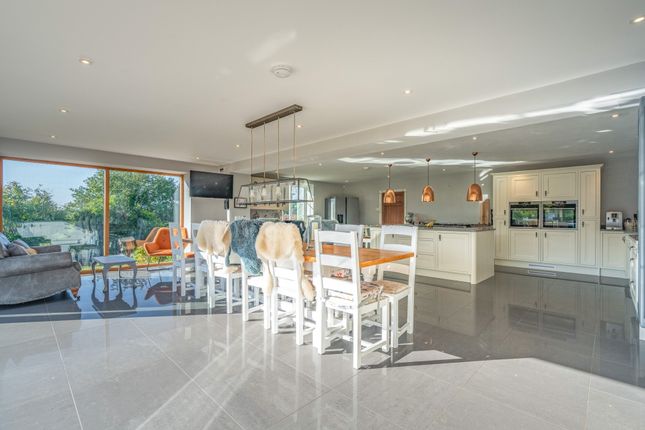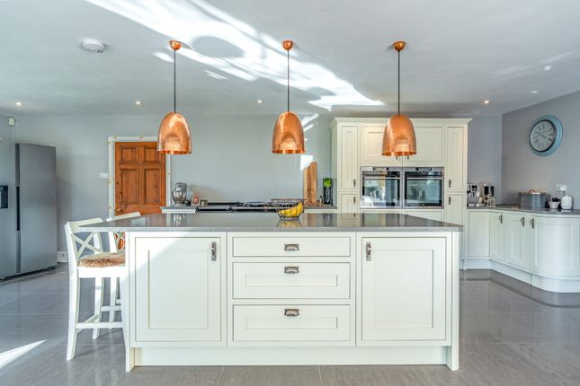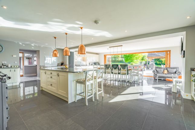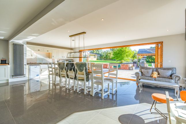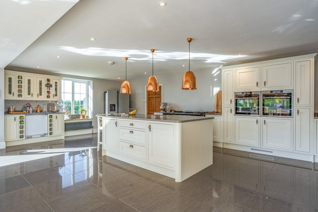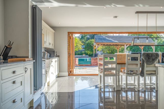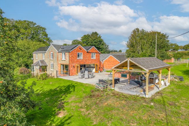 A beautifully rebuilt country home with extensive outbuildings and gardens, offering versatility, income potential and breathtaking views across Herefordshire countryside.DescriptionSubstantial five-bedroom country home with versatile accommodation, modern enhancements and roof-mounted solar panels.Impressive 12m by 12m terrace with Koi pond and covered entertaining area.4,500 sq ft registered commercial barn offering rental or business potential.Extensive range of additional outbuildings including American barn, stables, kennels and double garage.Wraparound gardens with two ponds, extending to 1.4 acres, with an additional 13.2 acres available by separate negotiation.Large tarmac car park providing extensive parking.Peaceful rural location with amenities, schools and transport links within easy reach.The kitchen areaThe kitchen is the true heart of the home and was designed by the vendors as their favourite space. Its generous proportions include a substantial island with polished worktops, extensive storage and integrated appliances set within bespoke cabinetry. An electric aga is complemented by double ovens, while practical preparation areas are arranged with ease of use in mind. Pendant lighting adds definition to the space, creating a room that is both functional and striking in equal measure.The dining areaThe dining area is positioned to take full advantage of the exceptional Hereford Oak bi-fold doors, the largest ever fitted by the company, which extend the entire width of the room and open onto the expansive terrace. This arrangement creates an outstanding environment for entertaining, with the natural flow between indoors and out ideal for gatherings. The scale of the room allows for a long dining table and additional seating, while large windows frame uninterrupted views of the gardens and surrounding countryside.The living areaThe living area forms part of the open plan design yet has a distinctive character, making it a welcoming retreat. Wide picture windows and glazed doors provide triple aspect views, flooding the space with natural light and enhancing the outlook over the gardens. The proportions allow for comfortable seating and relaxation while retaining a close connection with the kitchen and dining areas.The sitting roomThe sitting room is a bright and inviting space with large windows that fill the room with natural light and frame views across the gardens. A feature fireplace with log burner creates a warm focal point, complemented by solid oak flooring from a local mill. The positioning of the room gives it a comfortable and relaxed feel while still connecting easily to the rest of the ground floor.The playroomThe playroom offers a versatile space that lends itself to family living. Well proportioned and naturally bright, it provides an ideal setting for children while also functioning as a snug or informal lounge. A wide window draws in light and gives views over the grounds, while its proximity to the utility room enhances practicality for everyday use. The scale of the room allows for flexibility in layout, whether arranged for play, hobbies or additional seating.The utility and cloakroomsThe utility room is a practical addition to the ground floor, fitted with extensive work surfaces and cabinetry that provide ample storage. Plumbing and space for laundry appliances ensure it functions perfectly for everyday household needs. Two cloakrooms are conveniently positioned, each finished with style and attention to detail. One includes a high level cistern and traditional fittings, while the other has a modern suite with vanity storage.The entrance hallThe property is approached through a welcoming hall that sets the tone for the accommodation, enhanced by a central skylight that floods the area with natural light. From here the ground floor unfolds with direct access to the main reception rooms, kitchen and utility spaces, as well as the staircase rising to the first floor. From here, the rear entrance, with thoughtfully positioned windows bring in garden views. Currently utilised as an office, the layout combines practicality with an immediate impression of scale.The principal bedroomThe principal bedroom is an impressive suite, arranged with generous proportions and filled with light from its double aspect windows, capturing open views of the surrounding countryside. The layout provides ample space for furnishings and creates a calm setting that is perfectly suited for rest and relaxation. A well-appointed en suite complements the bedroom, finished with character touches that reflect the property’s heritage.The principal en suiteThe en suite to the principal bedroom is a beautifully appointed room that combines style with practicality. A walk-in shower with glazed screen is set against striking tiled walls, while a large bath offers an alternative space for relaxation. Twin windows draw in natural light and highlight the thoughtful design, complemented by fitted storage and contemporary fittings. The layout provides excellent functionality without compromising on character.The second bedroom and en suiteThe second bedroom is a spacious double that combines comfort with an attractive outlook over the gardens. Its generous proportions provide flexibility for furnishings, while dual windows bring in abundant natural light. This room is complemented by a private en suite, fitted with a contemporary suite including a corner shower, vanity unit and modern fittings.The third bedroomThe third bedroom is a generous double with an open outlook across the surrounding countryside. A wide picture window frames the views and fills the room with natural light. Subtle character features provide charm, while built-in storage provides practicality and the layout makes it easy to personalise.The fourth and fifth bedroomsThe fourth bedroom is a well-proportioned double that combines character with light and space. Dual windows ensure the room feels bright, while views over the g