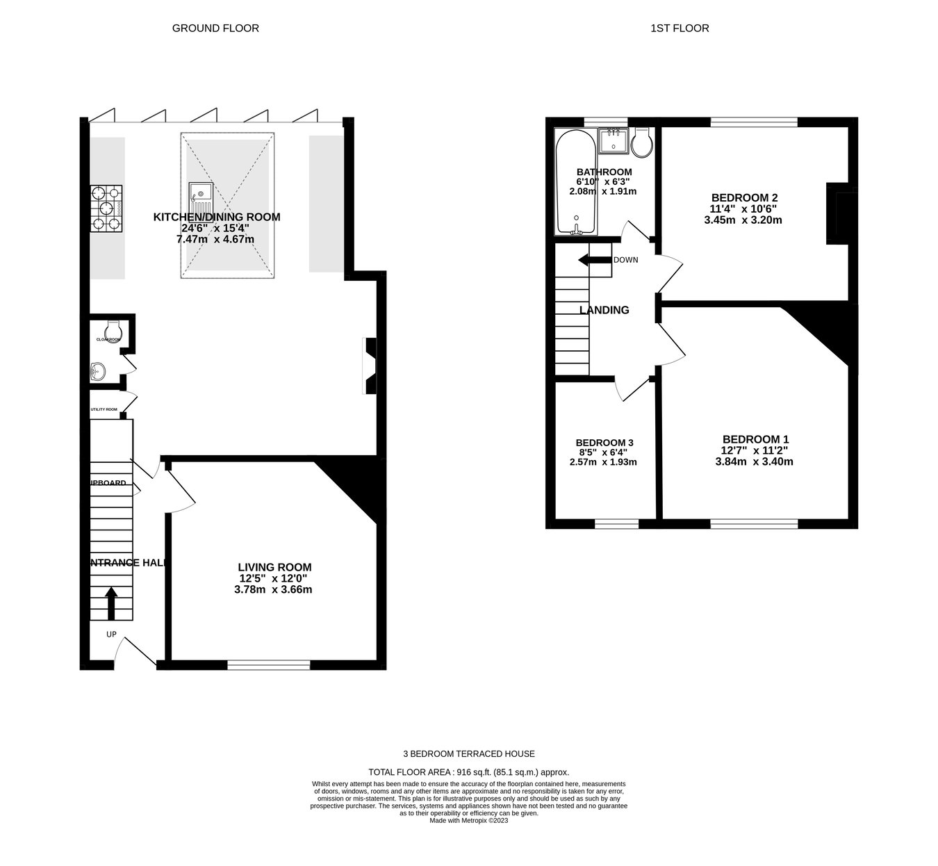 This fabulously renovated and refurbished, 3 bedroom terraced property offers so much more than initially meets the eye, with spacious bedrooms, modern bathrooms and plenty of living space. The large, open plan, attractive kitchen area boasts all the latest luxuries, with underfloor heating, two integrated ovens, coffee machine, full length fridge, full length freezer and microwave, accentuated by the large skylight. In the dining/living area, there's a television port on the wall, log burning stove and underfloor heating, with easy access to the cloakroom and utility space. Brand new carpet, bespoke Thomas Sanderson shutters, downlights and hues of grey and white marble feature throughout the property. With bi-fold doors opening up to the private garden, enclosed with Yew hedges and fencing, and parking space for two cars on the paved driveway, this property has lots to offer, both in convenience and style.Entrance HallUpon entering the property, there is space for coats and shoes, as well as a convenient storage cupboard under the stairs.Living Room12' 0" x 12' 05" (3.66m x 3.78m)A versatile living space, perfect for family and guests, with new cream carpet, television wall port and downlights. Large, double glazed windows look out to the drive, accompanied by bespoke white shutters.Open Plan Kitchen/Dining Room15' 04" x 24' 06" (4.67m x 7.47m)The spacious kitchen exudes luxury, with all AEG appliances, including a dishwasher, two ovens, integrated coffee machine, integrated microwave, full length fridge, full length freezer, five burner gas hob and extractor fan. Featuring Corian worktops, a large island/breakfast bar, plenty of cupboard space and a large skylight with electronic blinds, as well as bi-folding doors, also with blinds. The underfloor heating follows through to the open plan, versatile dining/living space, alongside a log burning stove. From this space, both cloakroom and utility space are easily accessible.CloakroomA conveniently located cloakroom, with underfloor heating and hand wash basin with storage cupboard.Utility RoomA tucked away useful space, large enough for stacked washing machine and tumble dryer.Family Bathroom6' 03" x 6' 10" (1.91m x 2.08m)A stylish main bathroom, including a bath with shower head, hand wash basin with storage unit underneath, heated towel rail and illuminated heated bathroom mirror.Bedroom 111' 02" x 12' 07" (3.40m x 3.84m)The largest of the three bedrooms, with brand new carpet, large double glazed windows, bespoke shutters and downlights.Bedroom 211' 04" x 10' 06" (3.45m x 3.20m)Another double bedroom, with pristine new carpet, large window overlooking the garden, bespoke shutters and downlights.Bedroom 36' 04" x 8' 05" (1.93m x 2.57m)A small single bedroom or study area, with newly fitted carpet, double glazing and bespoke shutters.GardenA well proportioned, private garden, with patio with new resin surface, lawn, alongside shrubs and plants such as lavender. Enclosed by fencing and Yew hedges, which will prevent overlooking. At the rear of the garden, there is a back gate to an alleyway.LoftInsulated and with previously granted, yet now lapsed, planning permission to extend into.Council tax: Band D