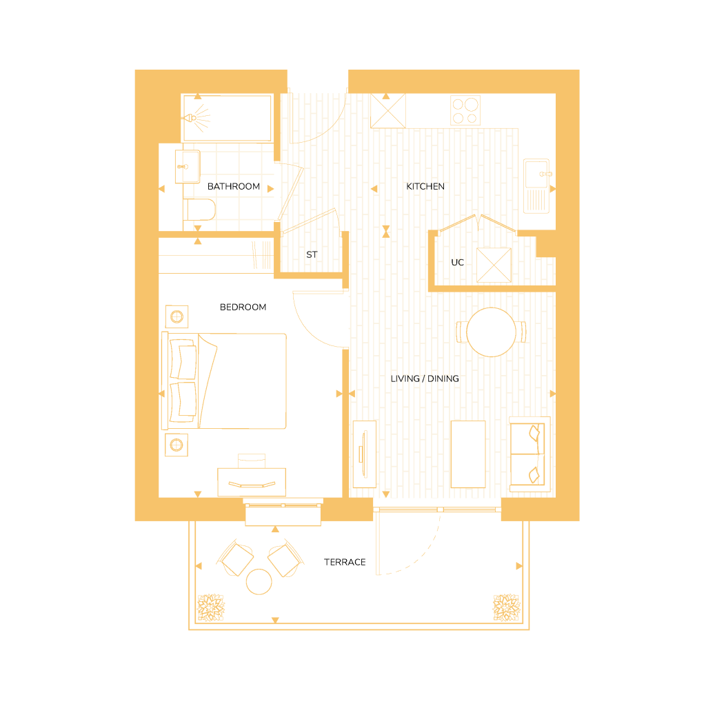 Ideal for first time buyers, this ground floor one-bedroom apartment enjoys a modern, open plan layout.A stylish kitchen includes stone worktops, with integrated AEG appliances.The south-east facing, 17-foot private terrace overlooks the landscaped gardens, and creates a fantastic outdoor extension to your living space.Total area: 41.28 sq m (444 sq ft)Set between buzzy Tooting and leafy Earlsfield, enjoy hybrid living with quick transport connections to central London, or disconnect in 32 acres of urban wilderness on your doorstep. Your Springfield Village neighbourhood provides a supermarket, gym and café for added convenience.RoomsGBathroom (1850mm x 2200mm (6'0" x 7'2"))Bedroom 1 (2940mm x 4170mm (9'7" x 13'8"))Kitchen (2945mm x 2200mm (9'7" x 7'2"))Living/Dining (3330mm x 4250mm (10'11" x 13'11"))Terrace 1 (5204mm x 1540mm (17'0" x 5'0"))About The LanesThe Lanes is a collection of 1,2 & 3 bedroom apartments and 3 bedroom houses in London’s largest new park.Set between buzzy Tooting and leafy Earlsfield, enjoy hybrid living with quick transport connections to central London, or disconnect in 32 acres of urban wilderness on your doorstep.Your Springfield Village neighbourhood provides a supermarket, gym and café for added convenience.Opening HoursMonday 10:00-17:30, Tuesday 10:00-17:30, Wednesday 10:00-17:30, Thursday 10:00-17:30, Friday 10:00-17:30, Saturday 10:00-17:30, Sunday 10:00-17:30DisclaimerPlease note that all images (where used) are for illustrative purposes only.