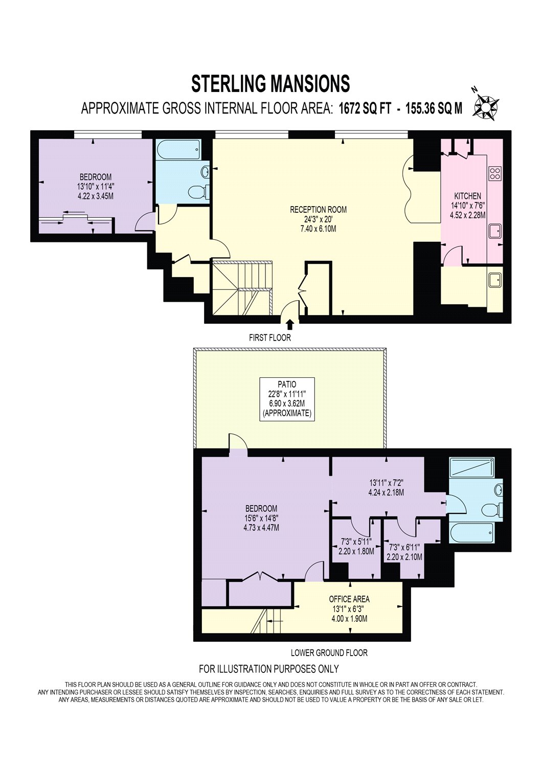 Guide Price £1,400,000 to £1,500,000This outstanding duplex apartment offers impressive proportions and the rare benefit of a private, low-maintenance courtyard garden. Set across the raised ground and lower ground floors of the prestigious Sterling Mansions - a distinguished part of the highly regarded Goodman's Fields development - the property seamlessly blends period charm with contemporary design and specification. Sterling Mansions features a handsome façade and an impressive central staircase, creating a strong sense of arrival. The communal areas are both elegant and characterful, setting the tone for the apartment itself.Entered on the raised ground floor, the home opens into a generous open-plan living and dining space that immediately conveys a sense of volume and light. The adjoining kitchen is intelligently designed, with ample work surfaces, a breakfast bar, and full-height storage. A separate utility room provides further practicality, with plumbing for a washing machine and space for a tumble dryer.Also on this level is a spacious guest bedroom with built-in wardrobes. The adjacent bathroom can function as either an ensuite or a guest WC, offering flexibility. Large east-facing windows and classical high ceilings contribute to the bright and airy atmosphere.The principal suite is located on the lower ground floor and features a large double bedroom, an ensuite bathroom, two generous walk-in wardrobes, and a spacious dressing area. Space at the foot of the stairs offers the potential for use as a home office or secondary sitting area.From the principal bedroom, large glazed doors open directly onto the private patio garden - a tranquil, low-maintenance space with lighting and water feature, perfect for relaxing or entertaining.Additional features include underfloor heating, recessed ceiling speakers, LED lighting, and excellent storage throughout.Sterling Mansions combines the architectural elegance of a period building with the comforts of modern living - a unique and highly desirable proposition in this central location.Additional informationWe have been informed that the primary external wall materials of the building/block have been assessed for fire safety. The assessor concluded that the fire risk of the external wall materials is sufficiently low that no remedial works are required. If you have any further questions, you should seek independent professional adviceSterling Mansions residents benefit from concierge services in the entrance lobby, and access to the exceptional Goodman's Fields amenities, including a swimming pool, a well-equipped gym, a cinema, and the tranquil 'Four Seasons' gardens.Aldgate East station is just 0.2 miles away, providing swift connections into The City, with easy access to the Elizabeth Line from both Liverpool Street and Whitechapel stations.Spitalfields and Shoreditch are just to the north, while Tower Bridge and Wapping lie to the south, offering an abundance of local amenities and vibrant destinations.