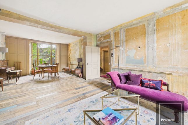 Malplaquet House is an exceptional Grade ii-listed early Georgian residence with a rich history in the Stepney Green conservation area of east London. Built between 1741 and 1742 and refined in the 1790s, it has been meticulously restored in recent years in consultation with The Spitalfields Historic Buildings Trust. Arranged over four generous storeys, the house spans nearly 4,400 sq ft and includes six bedrooms, with private walled gardens at both the front and rear. The restoration-executed with extraordinary care by master craftsmen behind many of Spitalfields' most celebratedhouses-preserves an authentic sense of period character.As a result, Malplaquet House stands as a remarkable showcase of East End heritage and a rare, beautifully preserved example of early Georgian architecture.Set behind a lush, secluded frontage on Mile End Road, the five bay London stock brick façade opens to four atmospheric storeys spanning almost 4,400 sq ft. The house offers six bedrooms and a sequence of elegant reception rooms enriched with period detail: Aged pine floors, original panelling, fine marble and bolection fireplaces, incised lime-plaster walls, Regency cornices, and beautifully distressed joinery. Craftsmanship is of the highest order, undertaken by artisans responsible for many of Spitalfields' most revered restorations.The lower-ground floor kitchen is a highlight, combining reclaimed materials- Swedish green marble, Victorian fittings and Barber Wilson taps-with an early 19th century iron range and bespoke panelling. Bathrooms feature specimen marbles and 19th century tiles, while upstairs rooms retain original wedding doors, historic wallpapers, and iron-grate fireplaces. Practical touches include box sash windows and shutters, reclaimed castiron radiators, tulipwood-mounted dolly switches, and carefully layered period paints on lime plaster.Private, walled gardens lie to the front and rear, the latter laid with York stone and brick paths and planted for yearround texture and tranquillity; commissioned plans for a glass-roofed winter garden (subject to consent) offer exciting scope.The setting is superb: An ancient Roman route lined with restored historic architecture, moments from the green spaces of Mile End and Victoria Park, the cultural draw of Whitechapel and Spitalfields, and excellent transport - Stepney Green and Whitechapel (Elizabeth line) withineasy reach.Council Tax Band: H