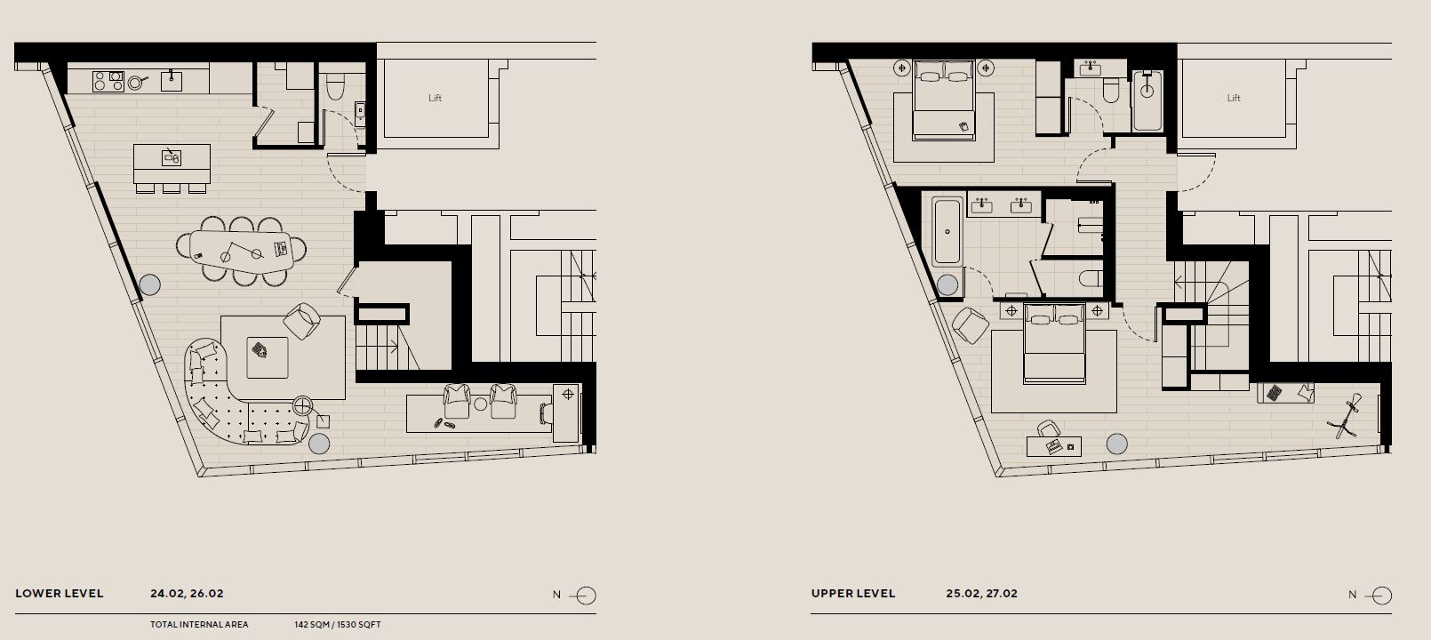 An exceptional 2 bedroom 2 bathroom duplex apartment with a home office set on the 24th & 25th floor in this impressive new development. This apartment offers space & luxury at 1530 sq ft.DescriptionRising above the city on the 24th floor of the landmark Vetro development, this duplex penthouse offers a rare opportunity to own a signature residence in one of East London’s most striking new towers. With sweeping, uninterrupted views across the River Thames, Canary Wharf, and the London skyline, it provides a front-row seat to the capital’s most iconic vistas.From the moment you enter, the sense of space and light is immediate. Full-height glazing wraps the apartment, drawing in natural light and framing the ever-changing cityscape like a living work of art. The open-plan living and dining area is expansive yet intimate, designed for both quiet evenings and effortless entertaining. At the heart of the home is a bespoke hand-crafted kitchen, finished to the highest standard with premium appliances and elegant detailing.Upstairs, the principal suite serves as a private sanctuary in the sky, complete with a luxurious en-suite bathroom and generous wardrobe space. Two additional bedrooms offer flexibility for guests, family, or home working, all with the same attention to detail and elevated views. Every element of the design has been considered to create a sense of calm, comfort, and understated luxury.Residents of Vetro benefit from a curated collection of amenities including a landscaped podium garden, a fully equipped gym, sauna, and a twelve-hour concierge service that adds convenience and peace of mind. The development is just moments from Westferry DLR, placing Canary Wharf, the City, and London City Airport within easy reach, while the surrounding area offers a vibrant mix of independent cafés, fine dining, and riverside walks.This penthouse is more than a home. It is a statement of lifestyle, design, and location. Whether you are seeking a primary residence, a London base, or a long-term investment in one of the capital’s fastest-growing districts, this is a rare chance to own something truly exceptional.LocationVetro is mere minutes from Canary Wharf, along with its extensive shopping, cafés and restaurants. Within just a 12 minute walk (Google maps), you will be among the splendour, events, parks and excitements of this extraordinary neighbourhood.Square Footage: 1,530 sq ftLeasehold with approximately 996 years remaining.Additional InfoService Charge: £5.55 psf paGround Rent: £0 (Peppercorn)Estimated Completion: Completed
