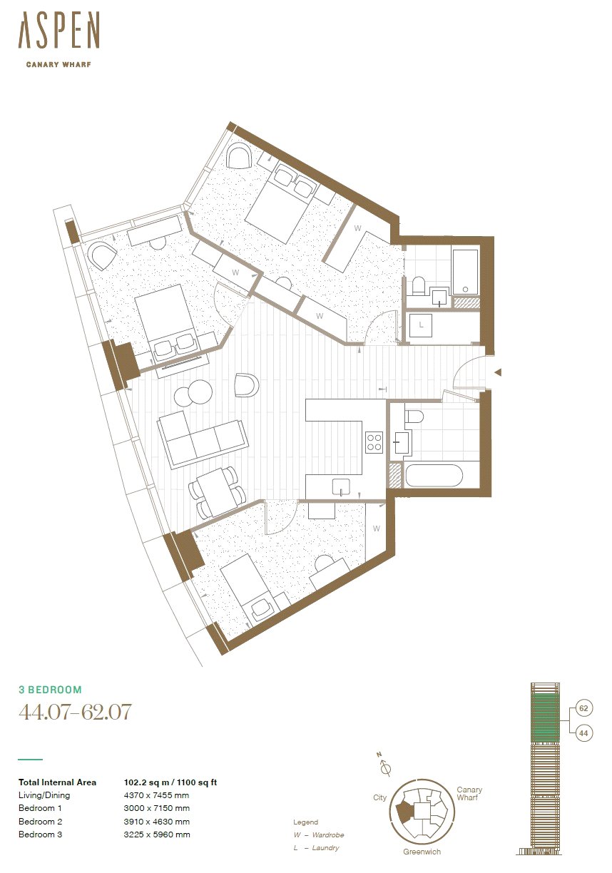 A 53rd-floor, west-facing 3-bed apartment at Aspen with 1,100 sqft of luxury living, skyline views, and access to world-class resident amenities. Move in from today!DescriptionThis exceptional three-bedroom apartment is located on the 53rd floor of Aspen at Consort Place, offering 1,100 square feet of beautifully designed living space with uninterrupted west-facing views across the London skyline. The apartment’s elevated position provides a dramatic backdrop of sunsets over the City, with full-height glazing that floods the interiors with natural light and frames the panoramic vistas. The open-plan layout is thoughtfully arranged to maximise space and flow, with a generous living and dining area that connects seamlessly to a bespoke designer kitchen featuring marble-effect surfaces, copper bronze accents and integrated Siemens appliances. The principal bedroom includes a luxurious en-suite bathroom and built-in wardrobes, while the additional bedrooms offer flexibility for family living, guests or a home office.Aspen is a landmark residential tower within the vibrant Consort Place neighbourhood, designed to offer residents a lifestyle of elegance, comfort and convenience. Residents have exclusive access to Aspen Paramount, a sky lounge on the 63rd floor with 180-degree views, a rooftop terrace, and a snug room for quiet moments or informal gatherings. The Aspen Club provides a comprehensive wellness experience with a vitality pool, sauna, steam room and a state-of-the-art gym. Additional amenities include a private dining and wine tasting room, a screening room, a winter garden and a business lounge. Families are well catered for with the Aspen Family Club, which features indoor and outdoor play areas and a games room.Consort Place is a dynamic new destination in Canary Wharf, home to cafés, restaurants, a health centre, education facilities and the stylish Dorsett Hotel. The development is surrounded by landscaped public spaces and cultural landmarks, creating a rich and engaging environment for residents. Aspen is ideally located just 0.8 kilometres from Canary Wharf Underground Station, served by the Jubilee and Elizabeth Lines, and 0.5 kilometres from South Quay DLR Station. The area also benefits from Thames Clippers river services and proximity to London City Airport, making travel across the capital and beyond effortless.Living at Aspen means being part of a cosmopolitan community with access to world-class shopping, dining and leisure. Canary Wharf offers over 120 stores across five malls, a wide variety of restaurants and bars, and tranquil waterside walks adorned with public art. With its blend of architectural excellence, luxury amenities and prime location, this 53rd-floor apartment at Aspen is a rare opportunity to experience elevated living in one of London’s most exciting neighbourhoods.LocationInternational Canary Wharf is the third largest shopping centre in London. It is a treasure trove of small boutiques, designer labels and much-loved brands. Whether in search of a tailor-made suit or that must have handbag, you’ll find over 120 stores across five vibrant malls.Within easy reach of many of London’s best-known landmarks and popular spots, Aspen at Consort Place is a mere 0.5 mile walk from Canary Wharf underground station (Jubilee Line) or 0.4 mile walk from South Quay DLR (Docklands Light Railway) stationThe new Elizabeth Line (better known as Crossrail) station is less than 11 minutes from Consort Place and links to Bond Street in only 13 minutes.Connections are further enriched by the Thames Clippers river boat services to London's landmark destinations such as Greenwich, Tower Bridge, Tate Modern, Westminster, and Blackfriars.*All referenced distances calculated using Google Maps.*Square Footage: 1,100 sq ftLeasehold with approximately 998 years remaining.Additional InfoService Charge (pa) : £9.23 psf per annumGround Rent: PeppercornAverage EPC rating: B