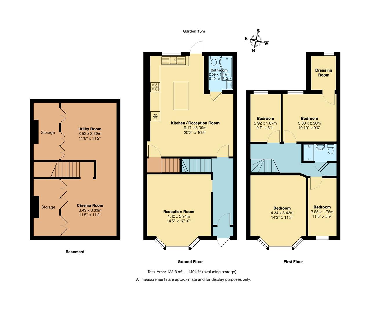 An immaculately presented four bedroom, two bathroom family home. Arranged over three floors, with a spacious kitchen diner, large basement and south facing landscaped garden, all within easy reach of Forest Gate, West Ham Park and Plashet Park.Forest Gate station is less than a mile away on foot. Here you'll find swift Elizabeth line services to London Liverpool Street in thirteen minutes and Heathrow Airport in fifty four.If you lived here...Your stylish, 180 square foot reception room is floored with blonde timber and illuminated by a bay window. Mosaic floor tiles in the entrance hall lead along to a huge, 330 square foot, open plan kitchen diner, where a kitchen island, smooth cream cabinets and glossy white tiled splashbacks give way to a deep, Belfast sink with peaceful garden views. Your family bathroom is to the rear, decorated in neutral tones with a handset mixer shower over the L shaped bathtub. Downstairs the spacious, 245 square foot basement is partially partitioned and ideal for turning to all manner of uses; a gym, utility room, storage or even all three at once. It's currently in use as a home cinema and utility room.Step out for your beautiful, South facing landscaped rear garden, with two outdoor relaxation areas; a slate paved patio and a handsome raised deck, separated by a stretch of lush lawn and mature foliage. Up on the first floor you'll find four bedrooms, all with lovingly restored timber floorboards underfoot. The principal features another wide, bright bay window and the second double bedroom comes with its own dressing room. In the centre of the landing you have another sophisticated family bathroom with a modern white suite, chrome heated towel rail and a refreshing, stroll in shower.You're never far from lush, greenery, with Plashet Park only ten minutes away on foot and West Ham Park just fifteen. As well as the usual sports and playground facilities, Plashet Park is also home to a delightful ornamental garden. Over at West Ham Park there are a number of public sports facilities, including an outdoor gym, and a large, well equipped children's playground for the younger members of your family to enjoy. For date night, treat yourselves to a mouth watering steak at Elvet Steakhouse on Romford Road, followed by one of their exquisite desserts or signature mocktails.What else?- As substantial as this home already is, with the loft space so far unexplored there's scope for you to follow your neighbours' lead and, expand still further. Perhaps even adding your own whole new storey (subject to the usual permissions).- On nearby Green Street you'll find plenty of shops and family friendly restaurants, making it easy to shop local and providing weekend dining out options for the whole family.- You'll have an abundance of choice in education, with thirty eight primary and secondary schools within a mile of your new home. Half of them less than half a mile away.Reception Room (4.40 x 3.91m (14'5" x 12'9"))Kitchen / Reception Room (6.17 x 5.09m (20'2" x 16'8"))Bathroom (2.09 x 1.47m (6'10" x 4'9"))Shower RoomBedroom (4.34 x 3.42m (14'2" x 11'2"))Bedroom (3.55 x 1.75m (11'7" x 5'8"))Bedroom (3.30 x 2.90m (10'9" x 9'6"))Dressing RoomBedroom (2.29 x 1.87m (7'6" x 6'1"))Cinema Room (3.49 x 3.39m (11'5" x 11'1"))StorageUtility Room (3.52 x 3.39m (11'6" x 11'1"))StorageGarden (15m (49'2"))A word from the expert..."When I decided to move to Forest Gate a few years ago, I was drawn by the great housing stock, the green spaces of Wanstead Flats and the friendly, up-and-coming vibe of independent boutiques, eateries, and bars.I’ve spent many a happy weekend walking on the flats and in Wanstead Park. Often, i’ll finish up with an all-trimmings roast at The Holly Tree or perhaps a fantastic curry from The Wanstead Kitchen. After living here for a while, you really start to feel happy and settled. I love the arty, independent feel of Forest Gate, and I get the impression i’m not the only one - it’s something all the locals nurture and support."Joseph earnshawE7 branch manager