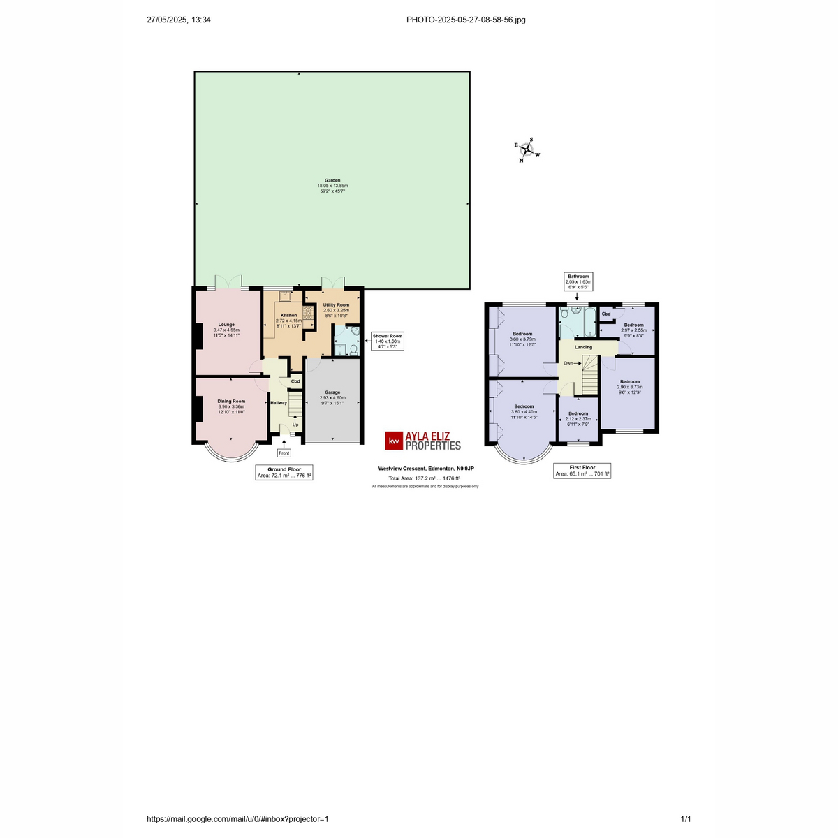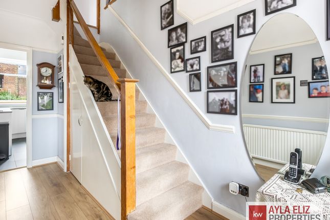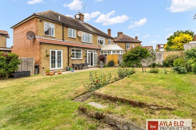 Property descriptionThis Semi-Detached house has been extended to the side to create an approximately 1,476 sq ft, five-bedroom house. The unconverted loft space provides additional development potential.There’s also plenty of space outside with an huge garden approx.. (59.2" by 45.7" provides off-street parking and there’s also a garage (9.7” by 15.1’ at the side of the house.The main living space on the ground floor, comprises a well-equipped electric fire place. French patio doors provide lovely garden views and a seamless connection to the paved terrace, making the whole space ideal for entertaining.A traditional front living room with an attractive bay window, currently used as an dinning room by the current owners. There’s also a utility room conveniently located off the kitchen with rear access to the garden, and a WC with a shower room. The generously sized hallway has a storage cupboard.The central landing on the first floor, has doors to all five bedrooms and the family bathroom. Three of the bedrooms are large doubles with two with fitted wardrobes, whilst the fourth & fifth bedroom are single. The bathroom is generously sized and has a bath tub. An obscured glass window provides good natural light and ventilation.The property has been well-maintained by the current owners and has double glazing and gas central heating. The décor features a palette of pale neutrals,Outside, This has been thoughtfully landscaped to provide a terrace to an extensive lawn bordered by mature planting. Attractive trees at the end of the garden provide a leafy backdrop to this ideally orientated sunny, south-facing space.Local lifeLocated between Bush Hill Park, Edmonton, Grange Park and Winchmore Hill, the property has easy access to a wide selection of local independent stores and larger chain stores.Transport links are good, with approximately 30 minute journeys from nearby Bush Hill Park overground station approx. (0.7 miles from the property) to Liverpool Street.The property is in the catchment areas for some of Enfield's most sought-after schools, including The Raglan Schools and Bush Hill Park Primary School.There are plentiful open green spaces in the area. Award-winning Bury Lodge Park with its great play area and lovely rose garden is literally a one minute walk away, Firs Farm Wetlands and Park is a 10 minute walk, and it’s just a couple of miles to the Lee Valley Reservoir Chain