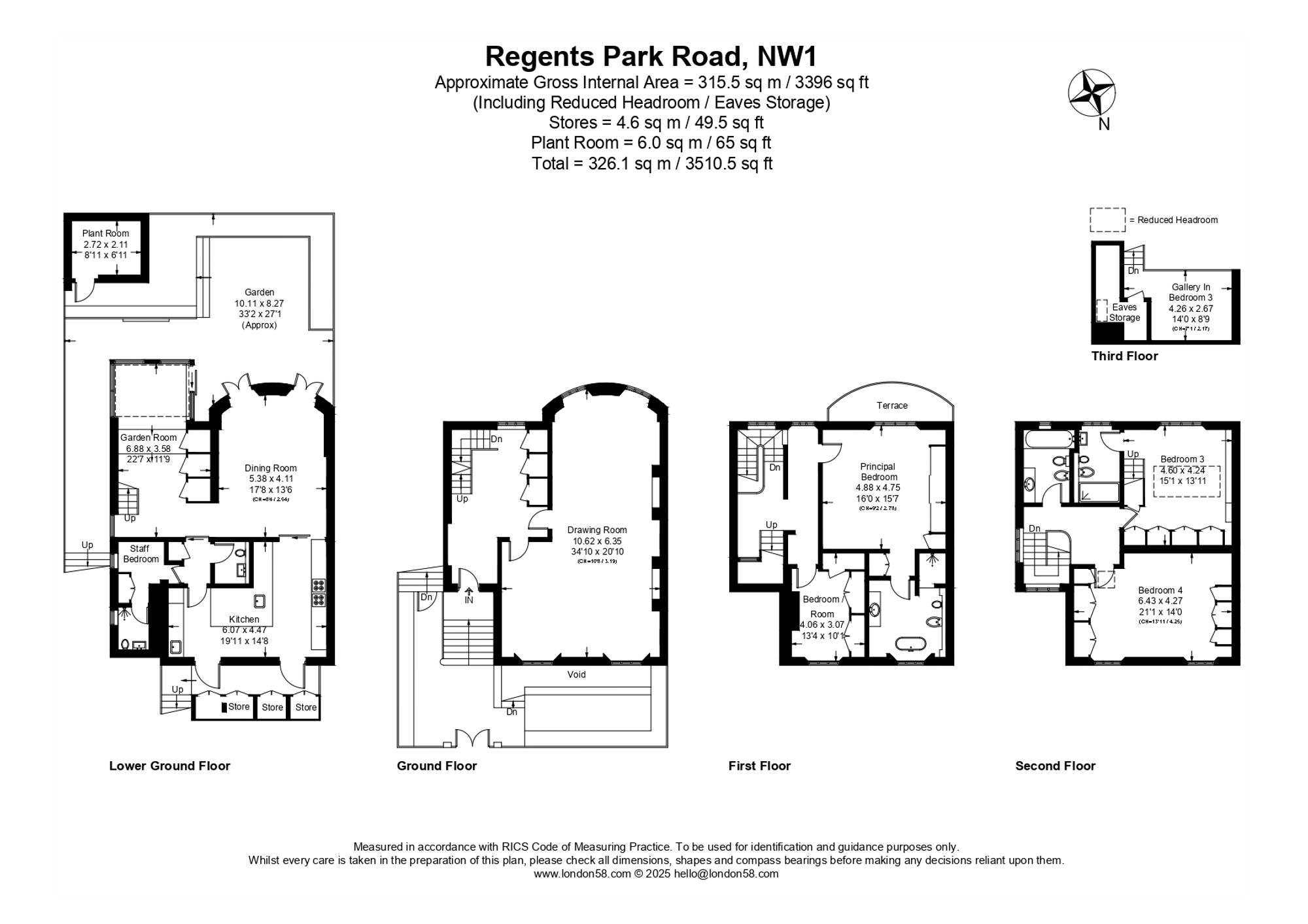 This elegant semi-detached Italianate villa is situated on one of the most desirable residential roads in Primrose Hill, offering a rare opportunity to acquire a high-calibre residence in one of London’s most sought-after enclaves.Arranged over four floors and presented in excellent condition throughout, the house combines classical proportions with refined modern detailing. The accommodation comprises four bedrooms, including a nearly full-floor principal suite on the first floor. This serene space includes an expansive bedroom with generous wardrobe provision, a bright en-suite bathroom, and access to a sunny south-facing balcony.The additional bedrooms include two spacious double rooms, one of which benefits from an en-suite and exceptional natural light, and a fourth bedroom currently arranged as a study.On the raised ground floor, the reception spaces are distinguished by their impressive scale and volume, with ceiling heights of approximately 3.2 metres. The drawing room, with near full-height sash windows, offers both grandeur and warmth-ideal for entertaining or quiet retreat.The interiors blend contemporary and traditional elements, including modern joinery, tall internal doors, and a carefully selected combination of exposed brick, wood, and plaster finishes across staircases and window reveals.The kitchen and dining area open directly onto a well-established, south-facing garden with low-maintenance decking-perfectly suited for alfresco dining and outdoor relaxation.A separate staff bedroom with en-suite shower room adds to the home’s practicality and discretion.Located just 0.2 miles from the heart of Primrose Hill Village, the property is ideally positioned for access to the green expanses of both Primrose Hill and Regent’s Park, as well as the village’s celebrated cafés, boutiques, and restaurants.This is a rare opportunity to acquire a turn-key family home in one of London’s most prestigious neighbourhoods, combining classical architectural character with contemporary functionality and exceptional design.EPC Rating: DLocationLocated just 0.2 miles from the heart of Primrose Hill Village, the property is ideally positioned for access to the green expanses of both Primrose Hill and Regent’s Park, as well as the village’s celebrated cafés, boutiques, and restaurants.