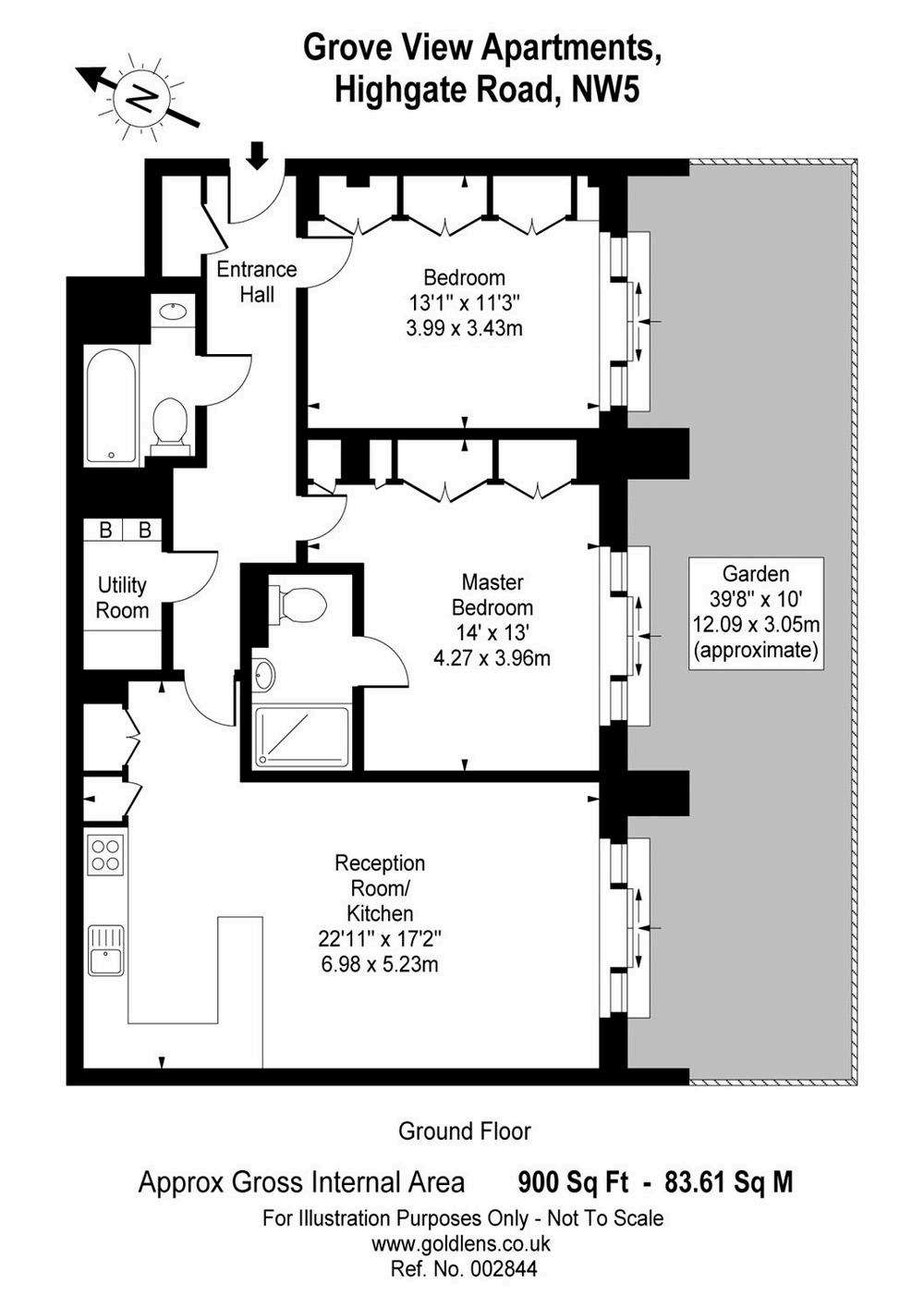 Impressive two bedroom, ground floor apartment with a patio garden in Highgate, NW5.The apartment is in excellent condition and measures approximately 900 sq.ft. Situated within a stunning church conversion, the property boasts a unique blend of historic charm and modern living. The accommodation features two spacious double bedrooms, with direct patio access, and two bathrooms. The open plan living room / kitchen also provides access onto a south facing decked patio garden.The property benefits from one allocated parking space and is located on Highgate Road, close to various local amenities, Hampstead Heath and convenient transport links, including access to the Northern Line via Tufnell Park Station, just a 10 minute walk away.