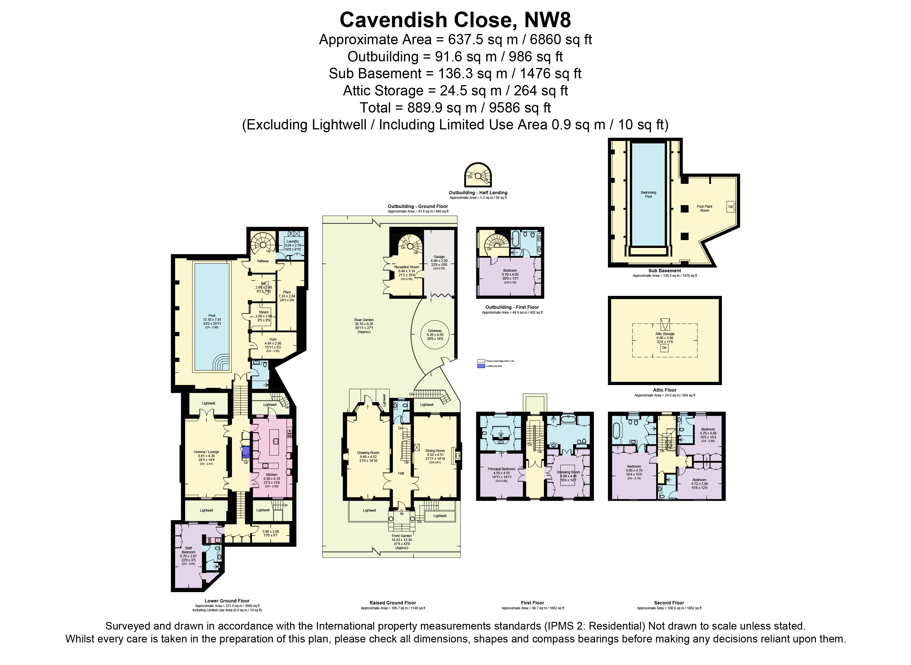 This grand home offers over 9,500 sq ft of luxurious accommodation set across multiple levels. The house is arranged over six floors and showcases elegant proportions, high ceilings, and magnificent living and entertaining spaces throughout. The raised ground floor features a formal dining room, double reception room, and a grand entrance hall, all opening onto a landscaped rear garden, ideal for entertaining on a grand scale.Occupying the entire first floor is a spectacular principal bedroom suite, complete with two luxurious en-suite bathrooms and bespoke dressing rooms-offering the utmost privacy and comfort. The second floor hosts three further generously sized bedroom suites, each with en-suite bathrooms and extensive wardrobe space.The lower ground floor is dedicated to leisure and relaxation, boasting an impressive 13-metre indoor swimming pool, steam room, bar area, and media/reception room, as well as a guest cloakroom and utility space. A sub-basement below houses plant and pool equipment, ensuring seamless function without interruption to living space. Further enhancing its appeal is a separate outbuilding arranged over two floors, perfect for guest use, a home office, or studio space.With its refined architecture, exceptional amenities, and prestigious location near Regent's Park and St John's Wood High Street, this is a rare opportunity to acquire one of the area's finest homes.Please note, we have not yet received confirmation from the client regarding certain information for this property service charge, ground rent and review periods. You should ensure you make your own enquiries regarding material information about this property.Cavendish Close is a quiet, private cul-de-sac located on the west side of St John's Wood. Just moments from the shops and cafés of St John's Wood High Street, it offers excellent transport links via the nearby Underground station and is close to the open spaces of Regent's Park. This peaceful setting blends residential charm with easy access to central London.