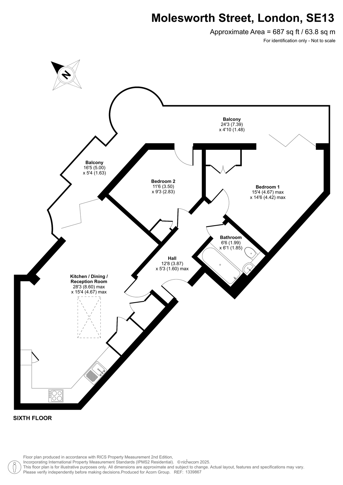Guide Price: £375,000-£400,000.Located on the 6th floor of the sought-after Riverdale House development, this well-presented two bedroom apartment offers contemporary living in the heart of Lewisham. Just moments from Lewisham Station and the DLR, this is a prime opportunity for commuters and lifestyle seekers alike.The property is in modern condition throughout, featuring a bright and spacious open plan living area that seamlessly connects to a generous private balcony, which stretches across both bedrooms and the reception room, making it the perfect space for entertaining or relaxing outdoors.Both double bedrooms are well-sized, with both benefitting from inbuilt storage. A stylish family bathroom completes the accommodation. The apartment also benefits from ample natural light, sleek finishes, and lift access within a secure development.Riverdale house is located within the heart of Lewisham, with the high street and shopping centre directly across from Molesworth Street, Lewisham Station & DLR is 0.3m walk door to door which offers quick access into London Bridge via Charing Cross as well as having access to DLR towards Bank station.Ideal for professionals, couples, or investors, this apartment offers a perfect balance of comfort, convenience, and style.Lease Length: 999 years from 1 July 2014Service Charge: £5666Ground Rent: £250Council Tax Band: C