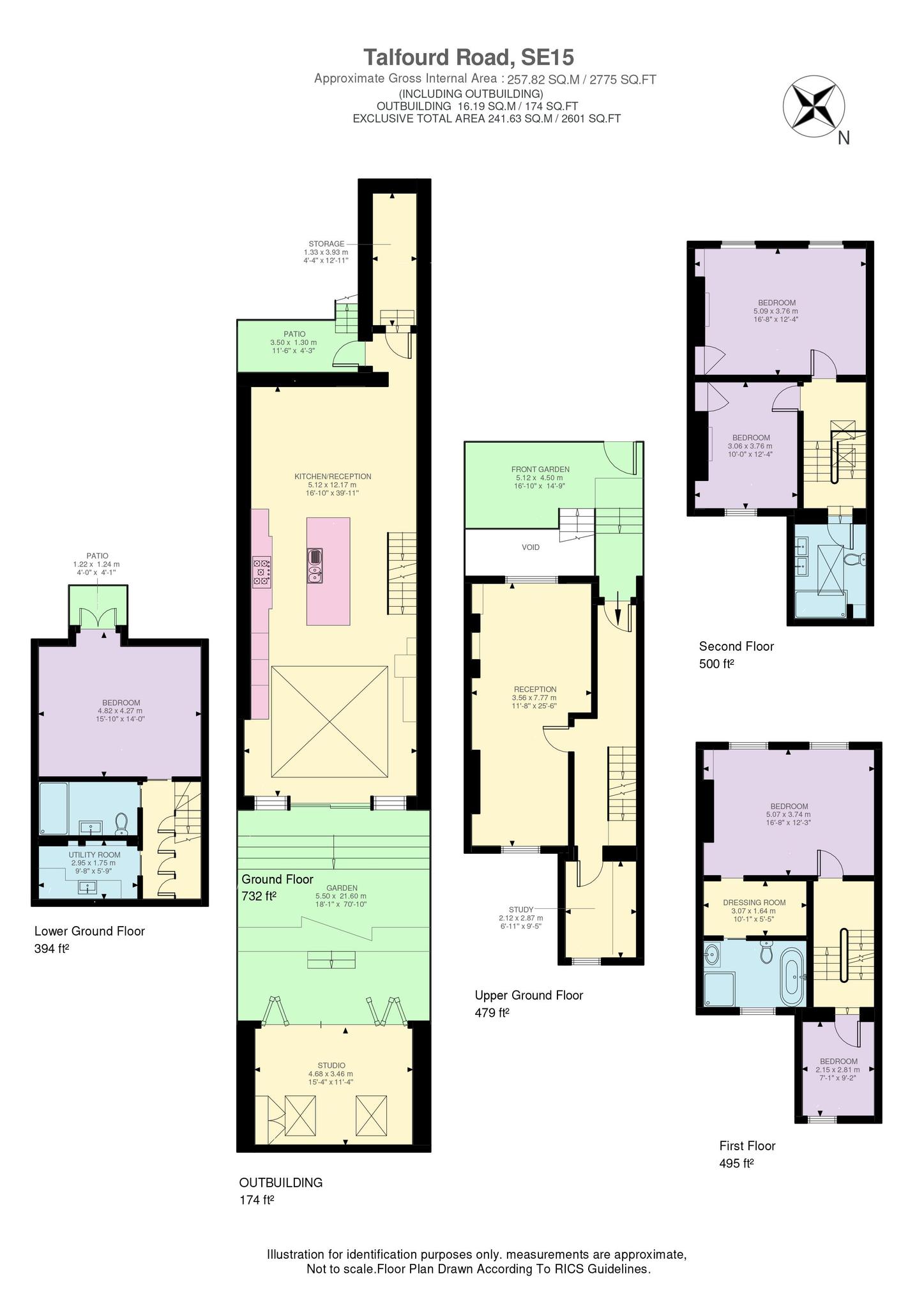 A desirable five bedroom extended Victorian house arranged across five floors, offering over 2,600 sq ft of well-appointed and comfortable accommodation.Externally, the surrounding street architecture was crafted by local artist (and previous occupant) Antony Gormley.Inside on the raised ground floor, the entrance hall has wonderful high ceilings, original cornicing and parquet flooring leading through a double reception room with increble light flooding in from both front and rear aspects. To the rear of this floor is a handy study with lovely garden viewings.The lower ground floor hosts the splendid full-width kitchen designed by Tom Howley with a Quooker boiling water tap and breakfast bar space, hosting bi-fold glass doors and a vaulted skylight.Downstairs, a basement floor consists of a large front-facing reception/bedroom, a shower room and separate convenient utility room.Upstairs, On the first floor, a neat bedroom is located on the rear return with garden views and plenty of space for a double bed. The wonderful principal suite occupies the rest of the first floor and benefits from a dressing room with bespoke storage and an en suite with contemporary roll top bath and walk-in shower.The second floor comprises a family shower room and a front-facing bedroom with fitted storage and integrated shelving. The final bedroom is rear facing with feature fireplace and garden views.A wealth of restaurants, cafes, independent boutiques and galleries are on your doorstep in Bellenden Village, Peckham Rye and nearby East Dulwich.The house is incredibly well connected by local transport links and is only 0.5 miles to Peckham Rye Station, with overground services to London Victoria and London Bridge and Thameslink services to London Blackfriars. Peckham Rye station also offers Overground services to Canada Water, Shoreditch High Street, Highbury & Islington and Clapham Junction. Denmark Hill Station is also close by (0.8 miles).A wealth of excellent state primary and secondary schools as well as independent schools are nearby, including The Villa Prep and Nursery, Belham Primary School, James Allen Girls' School, Alleyn's School, Dulwich Prep & Senior and Dulwich College.All distances are approximate.