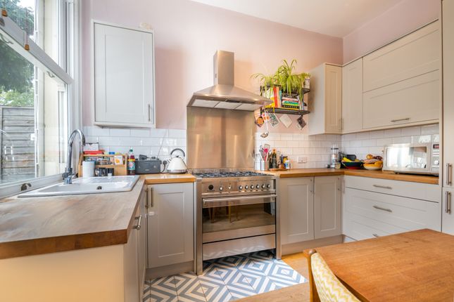 Occupying the entire ground floor of an elegant red brick detached Victorian house on this popular residential tree lined street, is this beautifully presented two-bedroom apartment offering almost 900 sq ft of stylish and well-proportioned living space.The flat benefits from being sold with a share of freehold, has off street parking, side return access and a private decked patio that leads to an expansive shared rear garden.The property is brimming with period charm, featuring high ceilings, double glazed sash windows and original detailing, yet has been thoughtfully decorated throughout with modern upgrades such as double glazing and air conditioning to provide an efficient, comfortable family home.The spacious layout includes two double bedrooms, charming reception room, a fabulous kitchen, a luxurious fully tiled bathroom, utility room and an abundance of built-in storage.The principal bedroom is very generous offering proportions over 4x5m and very high ceilings. It also benefits from bespoke built in wardrobes utilising the space in the alcoves, with an air-conditioning unit and a large bay window that offers an abundance of natural light.The reception room is another charming space with high ceilings, another air-con unit and characterful features such as original wooden flooring and an exposed brick chimney breast. French doors open from the reception space onto a private patio, which in turn leads directly to a large, well-maintained shared garden – perfect for summer entertaining or quiet relaxation.The shaker style kitchen is well appointed with integrated appliances and a large range cooker, metro tiled splash backs with a solid wooden worktop housing a sink set under a window looking out to the side return.The utility room is fitted with floor to ceiling cupboards housing the washing machine and offers access to the garden via the side return. The luxurious bathroom is fully tiled, incorporating a bath tub, walk in shower enclosure, toilet and wash hand basin.Therapia Road is a peaceful residential street in East Dulwich, a strong location on high ground with good local shops, pubs and eateries on Forest Hill Road like Deli Twenty Two, Norris and Knight, Watsons General Telegraph and The Herne Tavern. On Forest Hill Road there is also a doctors clinic, dentist, pharmacy, barber, Co-op and other local green grocers, takeaways, a post office. Honor Oak and East Dulwich are also close for more options. Public green spaces are many and varied, Peckham Rye is the closest, with Brenchley gardens nearby and Horniman Gardens for great skyline views. For golfing enthusiasts, the Aquarius golf course is right on your doorstep at the end of the street. Local schools and nurseries are well-regarded and include Fairlawn Primary and Harris academies for secondary options.