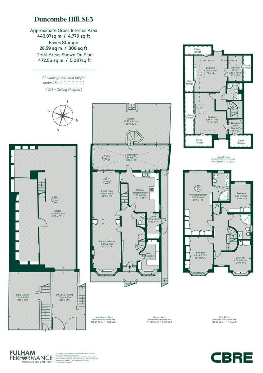 Step into a world of refined elegance with this exceptional six-bedroom, double-fronted detached family home, offering over 5300 sq ft of meticulously designed living space across four floors. Nestled in a prime position on Duncombe Hill, this residence boasts a rare and coveted feature: Private access to the exclusive Brockley Hill Park.The property unfolds with a grand raised ground floor entrance, leading to a stunning double reception room that spans the depth of the home. A chef's kitchen/diner with a separate utility space flows seamlessly into a full-width conservatory, opening onto a south-westerly facing rear garden. Residents enjoy private, gated access to the historic 'Brockley Hill Park', a 4.5-acre haven for wildlife and social activities, reserved solely for residents of adjacent streets. Additional features include a dedicated office space and a convenient WC on the raised ground floor.The expansive garage space on the ground floor presents a unique opportunity for conversion, offering the potential for further living accommodation. A bespoke staircase leads to the upper floors, revealing six generously sized double bedrooms and three bathrooms. The principal bedroom, located on the first floor, offers built-in wardrobes and an en-suite bathroom.Conveniently located, this property offers easy access to Honor Oak station (0.4mi) and Crofton Park (0.6mi) for effortless commutes. Nearby Stillness Junior school (0.2mi), Dalmain Primary (0.3mi), and St. Dunstans College (0.8mi) provide excellent educational options. Explore the vibrant local amenities of Honor Oak and Crofton Park, with their independent shops, cafes, and restaurants, all within easy reach.Cbre Limited on its behalf and for the Vendors or Lessors of this property whose Agents they are, give notice that:1. These particulars are set out as a general outline only for guidance to intending Purchasers or Lessees, and do not constitute any part of an offer or contract.2.Whilst cbre Limited uses reasonable endeavours to ensure that the information in these particulars is materially correct, some of the information is derived from third parties and has not been verified by us. Any intending Purchasers, Lessees or Third Parties should not rely on this information as a statement or representation of fact, but must satisfy themselves by their own inspection, searches, enquiries, surveys or otherwise as to the accuracy and completeness.3. To the maximum extent permitted by law cbre Limited accepts no liability or responsibility for any loss or damage including without limitation, indirect or consequential loss or damage, or any loss of profits resulting from direct or indirect actions based upon the content of these particulars. No person in the employment of cbre Limited has any authority to make any representation or warranty whatsoever in relation to this property.4. Unless otherwise stated, all purchase prices and rents are correct at the date of publication and, unless otherwise stated, are quoted exclusive of VAT. Lease details and service ground rent (where applicable) are given as a guide only and should be checked and confirmed by your solicitor prior to exchange of contracts.
