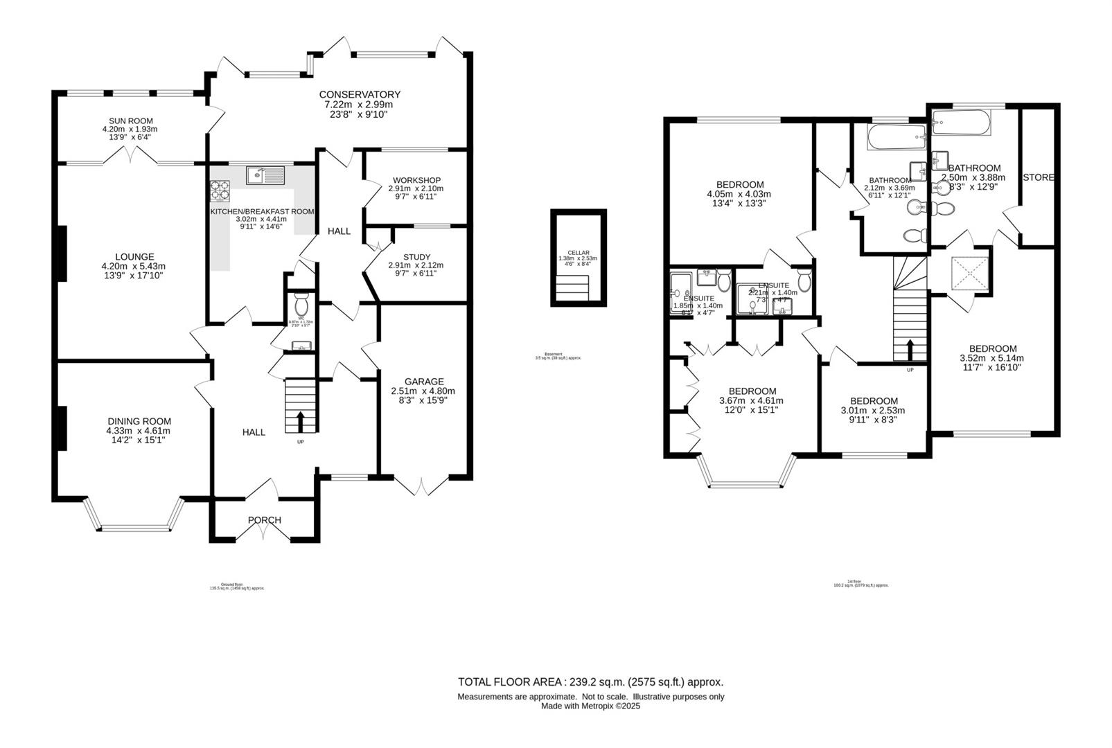 No onward chain*over 2500 sq ft* Situated on the highly desirable Banstead Road South in South Sutton, this impressive and very large semi-detached house presents a wonderful opportunity for families seeking a spacious and well-maintained home. With four bedrooms and four bathrooms, this property is designed to accommodate modern living with ease and comfort.The current owner has cherished this home for over 40 years, ensuring it has been kept to a high standard, although some updating may enhance its appeal further. The ground floor boasts three generously sized reception rooms, providing ample space for relaxation and entertaining. The kitchen is particularly noteworthy, offering an excellent size that is perfect for family gatherings and culinary adventures. There are two ground floor office rooms plus access to a large cellar.Upstairs, you will find four bedrooms, including two large doubles that provide a peaceful retreat at the end of the day. The property also features a larger-than-average garden, measuring approximately 125ft in length. This expansive outdoor space not only offers a tranquil setting for outdoor activities but also presents the potential for a substantial rear extension, subject to planning permission.Additional benefits of this home include off-street parking for several vehicles, gas central heating, and double glazing, ensuring comfort and convenience throughout the year.This property is ideally located in a popular area of South Sutton, making it a perfect choice for families and professionals alike. We highly recommend scheduling a viewing to fully appreciate the charm and potential this home has to offer.AccommodationUPVC double glazed entrance porchStained glass wooden front door to..Spacious entrance hallTiled flooring, double panel radiator, under stairs storage cupboard, wall mounted thermostat.Dining roomUPVC double glazed bay window to front aspect, double panel radiator, tiled flooring, fireplace with marble effect surround and wooden mantelpiece, coved ceiling and ceiling rose.LoungeTwo double panel radiators, tiled flooring, coved ceiling and ceiling rose, fireplace with decorative surround, double doors leading to..SunroomUPVC double glazed windows to rear aspect, tiled flooring, wall mounted heater, access to conservatory.Kitchen/breakfast roomRange of fitted wall units with matching cupboards and drawers below, roll top work surfaces with inlaid stainless steel sink and chrome mixer tap with food waste disposal, inlaid hob with extractor fan above, integrated oven/grill, integrated fridge and freezer, tiled flooring, double panel radiator, tiled splash back, UPVC double glazed window to rear aspect and door to side.Utility room/pantryTiled flooring and access to garage and further seating area, wall mounted “Worcester” boiler.StudyGlazed window to rear aspect, fitted shelving and doors and access to cellarCraft roomUPVC double glazed window to rear aspect, fitted storage cupboard, single panel radiator.ConservatoryUPVC double glazed windows to rear aspect and doors leading to garden, raised seating area, outside power supply.Front seating areaFeature UPVC double glazed window to front aspect, tiled flooring, wall mounted heater.Downstairs WCConsisting of low-level push button flush WC, wash hand basin with chrome taps, single panel radiator, tiled flooring, tiled walls.Stairs to 1st floor landingFeature skylight and loft access, airing cupboard.Bedroom oneUPVC double glazed bay window to front aspect, single panel radiator, fitted wardrobes with access to..Ensuite shower roomConsisting of tiled cubicle with thermostatic shower, wash handbasin with chrome taps, low level push button flush WC, single panel radiator, extractor fan, tiled flooring, tiled walls.Bedroom twoUPVC double glazed window to rear aspect, double panel radiator, coved ceiling.Ensuite shower roomConsisting a tiled cubicle with thermostatic shower, wash hand basin with chrome taps and storage cupboard below, low-level push button flush WC, extractor fan, tiled walls.Bedroom threeUPVC double glazed window to front aspect, wall mounted heater, coved ceiling, wood laminate flooring.Ensuite bathroomSpacious suite consisting of tiled cubicle with thermostatic shower, panel enclosed bath with Victorian style chrome mixer tap and shower attachment, wash handbasin with chrome mixer tap in storage cupboard below, low-level bidet with chrome mixer tap, low-level flush WC, double panel radiator, coved ceiling, tiled flooring, part tiled walls, obscure UPVC double glazed window to rear aspect.Bedroom fourUPVC double glazed window to front aspect, single panel radiator, coved ceiling.Family bathroomComprising panel enclosed bath with chrome mixer tap and thermostatic shower, wash hand basin with chrome mixer tap and storage cupboard below, low-level bidet with mixer tap, low-level push button flush WC, tiled flooring, tiled walls, heated chrome towel rail, extractor fan, coved ceiling, obscure UPVC double glazed window to rear aspect.Rear garden (South Easterly aspect)Approximately 80ftLarge paved patio area leading to artificial lawn section and footpath side, koi pond and decorative planting, garden sheds and large summer house, fence enclosed, outside power supply, sheltered barbecue area.Integral garageDouble wooden doors at front, hardstanding providing further off street parking if desired, space and plumbing for washing machine and tumble dryer, space for tall standing fridge/freezer.FrontBlock paved driveway providing off street parking for several vehicles.Buyer’s informationUnder UK law, estate agents are legally required to conduct Anti-Money Laundering (aml) checks on buyers and sellers to comply with regulations. These checks are mandatory, and estate agents can face penalties if they fail to perform them. We use the services of a third party to help conduct these checks thoroughly. As such there is a charge of £36 including vat, per person. Please note, we are unable to 