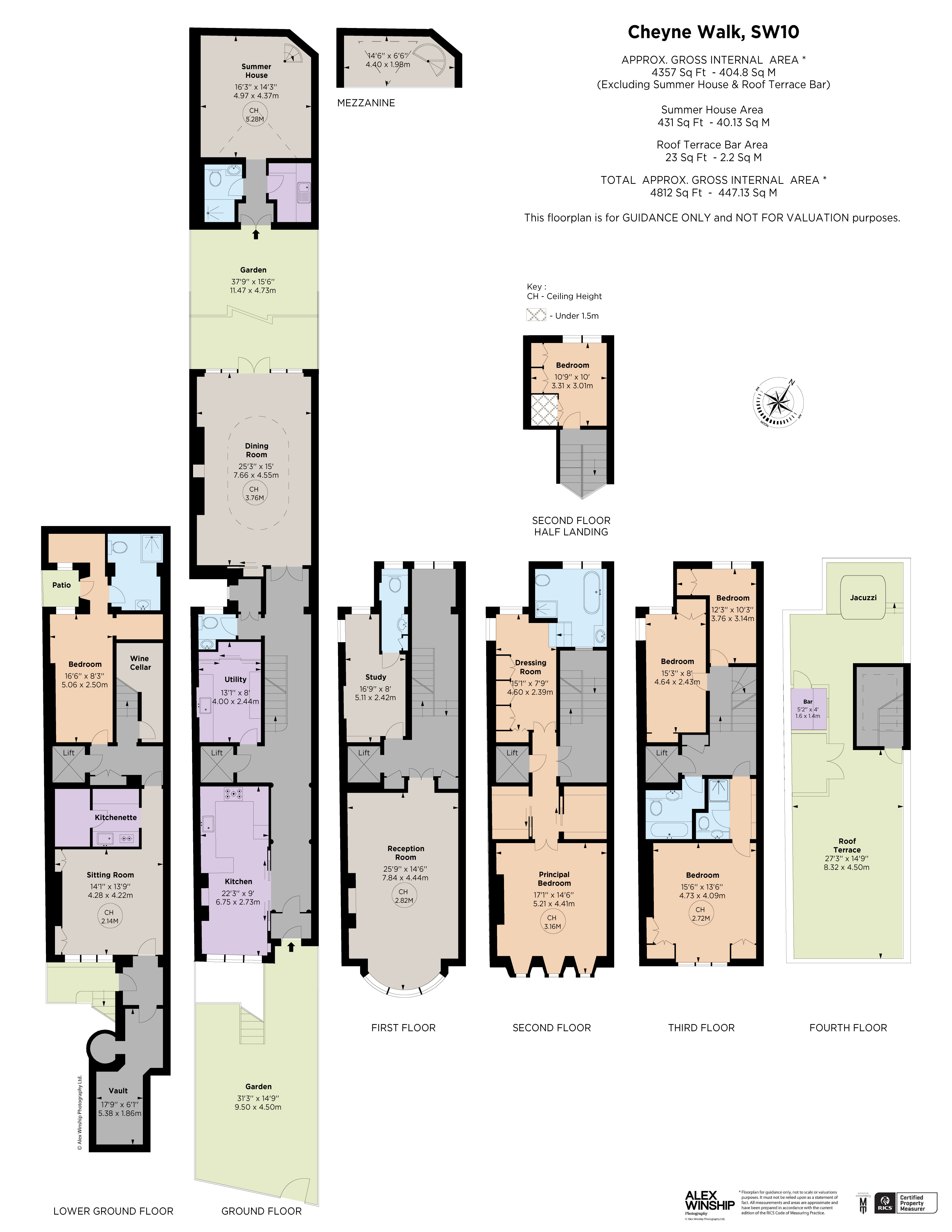An enchanting period house set back behind its own front garden and providing extensive and flexible family accommodation with the option of a self-contained flat at lower ground floor level. This most attractive south-westerly facing property benefits from a passenger lift serving all floors, a wonderful roof terrace with spectacular river views, a 38 ft rear garden (c.600 sq ft) and a most useful and appealing separate Summer House. Furthermore, there is a large dining room overlooking the rear garden at ground floor level and a stunning first floor drawing room which commands direct views of the Thames.Cheyne Walk, located in Chelsea along the north bank of the River Thames, boasts a rich and illustrious history, making it one of London's most prestigious residential addresses. Established in the early 18th century, this picturesque street features a stunning array of Georgian and Victorian townhouses that reflect the architectural elegance of their eras. In the 19th century, Cheyne Walk became a haven for artists, writers, and notable figures, contributing to its prestigious reputation. The renowned artist Dante Gabriel Rossetti lived at No. 16, transforming the property into a hub of artistic activity. The celebrated novelist George Eliot resided at No. 4, where she completed several of her famous works. J.M.W. Turner, one of Britain's greatest painters, also called Cheyne Walk home, further cementing the street's association with artistic brilliance. In the 20th century, Cheyne Walk continued to attract distinguished figures due to its blend of historical charm and modern amenities. Sir Mick Jagger of The Rolling Stones lived at No. 48 during the height of his career, marking the street with a legacy of rock 'n' roll. The iconic film director Sir Laurence Olivier and actress Vivien Leigh, known for their illustrious careers in theatre and film, also resided here, adding to the street's glamorous reputation.More recently, Cheyne Walk has maintained its appeal to high-profile residents, reflecting its timeless charm and elite status. Best-selling Irish author Marian Keyes, known for her popular novels like "Watermelon" and "Rachel's Holiday, " has called Cheyne Walk home. Sir Christopher Lee, the iconic actor famous for his roles in "Dracula" and "The Lord of the Rings, " was another notable resident, bringing a touch of cinematic history to the area. Keith Richards, fellow Rolling Stones band member, also lived on Cheyne Walk, underscoring the street’s continued association with rock music royalty.Today, Cheyne Walk remains one of London's most coveted residential streets. Its prime location, historic significance, beautifully preserved properties, and impressive roster of past and present residents ensure its continued status as a symbol of exclusivity and elegance in the real estate market. The architectural beauty and serene riverside setting make it a sought-after location for affluent individuals seeking a blend of history, culture, and luxury.