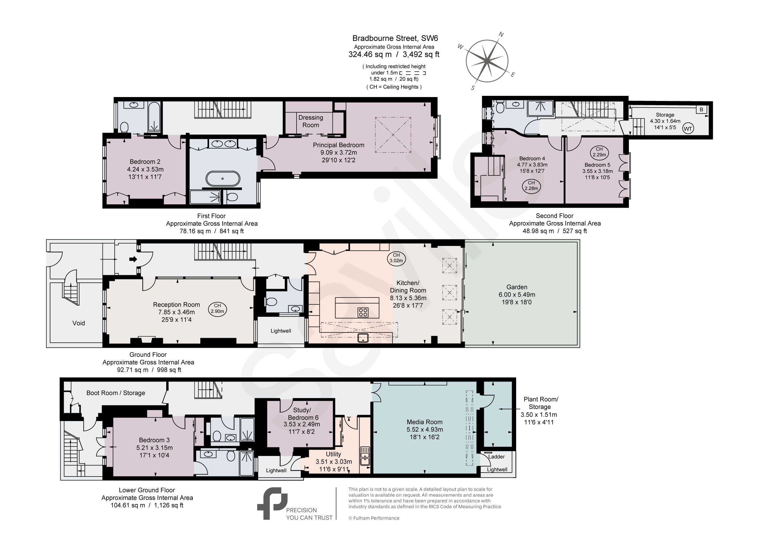 An exceptional, architecturally designed five/six bedroom house on the prestigious Peterborough Estate.DescriptionPositioned on one of Fulham’s most coveted streets, this impeccably presented five bedroom home on the Peterborough Estate is a rare architectural gem - thoughtfully designed to maximise light, space, and effortless modern living.Fully extended and meticulously finished throughout, the property blends classic elegance with cutting-edge design. Exceptional attention to detail runs throughout. An architect-designed cantilever staircase, light and airy in form, acts as a striking feature, complemented by bespoke joinery and premium flooring by Element 7. Full-height ceilings enhance the feeling of volume across all floors, while intelligent lighting by Light iq and extensive glazing ensure every corner is bathed in natural light. A boot room with scooter access allows practical entry without using the main front door - a thoughtful touch that reflects the clever planning evident in every part of the house.On the ground floor is a stylish double reception room with gas effect fire. The heart of the home is a beautifully appointed Bulthaup kitchen with integrated Gaggenau appliances, a Japanese teppanyaki grill, and Quooker boiling water tap - a space designed as much for family life as for sophisticated entertaining. The open-plan kitchen and dining area flows seamlessly onto a landscaped west-facing garden, perfect for al fresco dining.The fully extended lower ground has excellent ceiling height and provides a sizeable family/media room, separate utility room, a flexible room which is currently used as a study, as well as a guest bedroom suite and further shower room.The luxurious principal suite includes a spacious dressing area and elegant en suite, while three additional double bedrooms and two beautifully finished bathrooms provide versatile accommodation for family or guests.This is a luxurious turnkey home of rare quality - arguably one of the most impressive houses on the Peterborough Estate.LocationBradbourne Street is situated on the prestigious Peterborough Estate in central Parsons Green.This prime location offers easy access to Parsons Green underground (district line) which is 0.3 miles from the property, as well as bus routes along New Kings Road into Chelsea (1.5 miles) and the West End (5.2 miles).The area is known for its wide selection of nursery and primary schools, including Pippa Pop-Ins, Thomas's Fulham and Marie d'Orliac, as well as sophisticated shopping and restaurants.The property is also well placed for the green open spaces, children's playgrounds and tennis courts of Eel Brook Common, South Park and Hurlingham Park.Please note that all distances are approximate.Square Footage: 3,492 sq ft