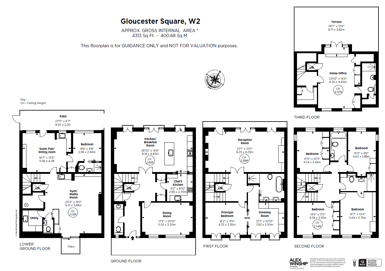An exceptional townhouse in Gloucester Square.DescriptionSituated in one of London’s most sought-after garden squares, this outstanding six-bedroom townhouse combines classical elegance with contemporary refinement across five beautifully appointed floors.Accessed via a high-speed passenger lift, the property offers two sophisticated reception rooms, ideal for both formal entertaining and relaxed family living. Featuring intricate parquet flooring and exceptional natural light throughout, the interiors strike a perfect balance between heritage charm and modern luxury.The principal bedroom suite occupies its own floor and provides a true private retreat, complete with a luxurious en suite bathroom and bespoke dressing room. Five further bedrooms are generously proportioned, offering elegant accommodation for family and guests alike.A self-contained apartment - perfect for a guest, nanny, or caretaker - adds versatility and privacy, while the beautifully designed kitchen caters to the highest culinary standards.Additional highlights include full air-conditioning, a dedicated home office, and a versatile gym/media room, ensuring the property is fully equipped for modern living.Externally, a large private terrace offers a tranquil setting for al fresco dining and entertaining. Off-street parking provides a rare convenience in central London.Residents also enjoy exclusive access to the beautifully maintained private gardens of Gloucester Square - an idyllic green space offering mature trees, quiet pathways, and a sense of refined seclusion in the heart of the city.LocationLancaster Gate Underground Station - 0.24 miles and Paddington Station 0.25 miles.Square Footage: 4,313 sq ft