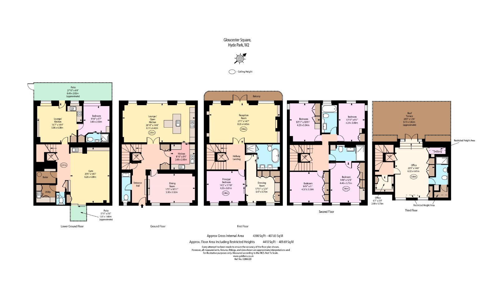 Set on the distinguished Gloucester Square, this newly redeveloped freehold house offers approximately 4,410 sq ft of meticulously designed internal space, finished to an exceptional standard with bespoke joinery and interior design throughout. Presented in a contemporary, turnkey style, the property comprises 6–7 bedrooms, five bathrooms, and two additional guest WCs, including a self-contained guest or caretaker apartment. The principal suite boasts a generous dressing room and luxurious en-suite bathroom. Living spaces include two reception rooms, a formal dining room, and an open-plan family kitchen complemented by a separate chef’s kitchen-both fitted with state-of-the-art Gaggenau appliances. Additional features include a gym/media room, a dedicated office (or optional seventh bedroom), air-conditioning throughout, and underfloor heating across the principal floors. A passenger lift services all levels, while the main living areas are enhanced by elegant parquet flooring. A large private terrace with BBQ and outdoor fridges offers superb entertaining space, alongside off-street parking (first come, first served). South facing and ideally positioned, the property also benefits from access to the beautifully maintained private communal gardens of Gloucester Square, and is moments from Hyde Park, Paddington Station, and Connaught Village.Council tax band: HEPC Rating: COur China Desk is here for you, if Chinese is your preferred language, please get in touch via WeChat (s-ChestertonsAPAC)