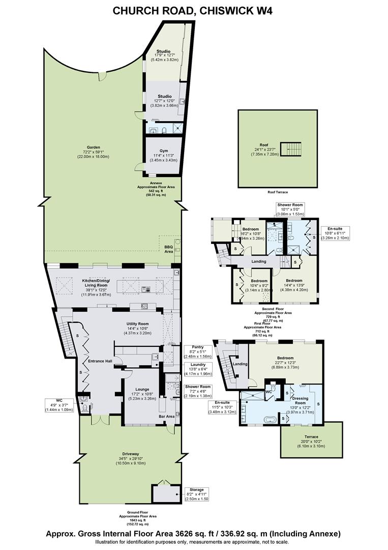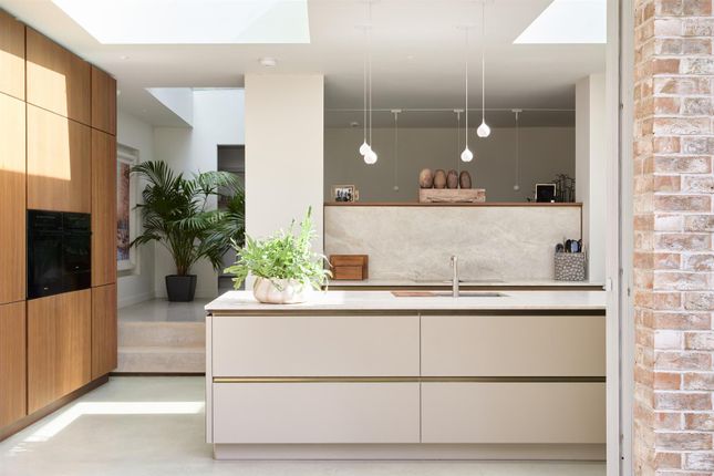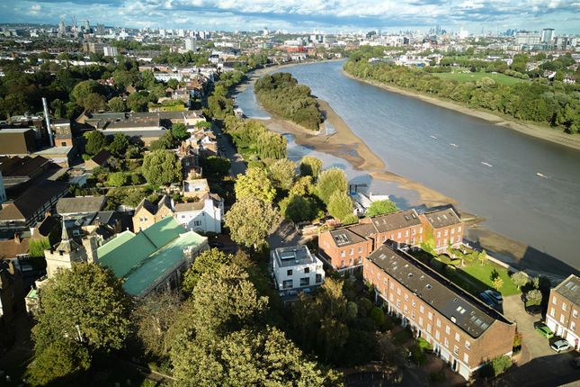 A landmark modernist home, reimagined for contemporary living. Tucked away on the cusp of the iconic Chiswick Mall and moments from the River Thames, sits this striking detached five bedroom residence. Originally designed by renowned Hungarian modernist architect Stefan Buzas it has recently undergone a meticulous, architect led transformation. Now a fully reimagined smart home, the property blends minimalist design, luxury finishes, and cutting edge technology across an expansive and versatile living space. Secure electric gates open onto a private resin-bound driveway with space for up to three vehicles and EV ready wiring. Inside, a full 'back to brick' refurbishment has introduced solid polished concrete floors, new electrics, plumbing and heating, while retaining the structure’s robust concrete frame. The ground floor offers incredible flexibility for multi-generational living and entertaining, with underfloor heating throughout. A purpose built movie room with Dolby Atmos surround sound, doubles as a self-contained studio apartment, complete with a bespoke kitchen, integrated wine fridge, en suite shower room and its own private entrance. The heart of the home lies to the rear of the ground floor: A vast open-plan living space with triple glazed Hyline sliding doors that vanish into pocket walls, bringing the outdoors in. The Pronorm kitchen features solid walnut cabinetry, Taj Mahal leathered quartzite worktops, dual Quooker taps and fully integrated, app connected, Miele appliances. Adjacent, a hidden utility room houses Miele laundry appliances and an intelligent indoor drying system.Occupying the entire travertine marbled first floor, the air-conditioned and underfloor heated master suite, delivers the ultimate in comfort and style. A bespoke Molteni dressing room, spa like en suite with twin showers and a Japanese smart toilet are paired with a private balcony offering glimpses of the Thames. Ascending to the top floor, you will find three further bedrooms, one of which features an en suite shower room. The other two bedrooms share a luxury family bathroom with an electric skylight and underfloor heating, and both have sight of the river Thames. In addition, the roof is accessed by a staircase with a custom built, 3 metre powered, electric skylight. The meticulously landscaped rear garden provides a tranquil retreat featuring a solid concrete patio, luxury outdoor stainless-steel kitchen with mains gas Wolf and separate Kamado Joe BBQ's, year-round planting with full irrigation, lighting and external WiFi coverage. The custom-built annexe houses a fully approved self-contained studio unit with a separate gym. Additional highlights include: Hot water underfloor heating throughout, app-controlled lighting, electric blinds, integrated misting fire suppression, Cat 6 cabling and full WiFi coverage, alarm and video entry systems. This is a rare, modernist, architect inspired, technically advanced, and quietly luxurious home. Council tax G. EPC rating D.