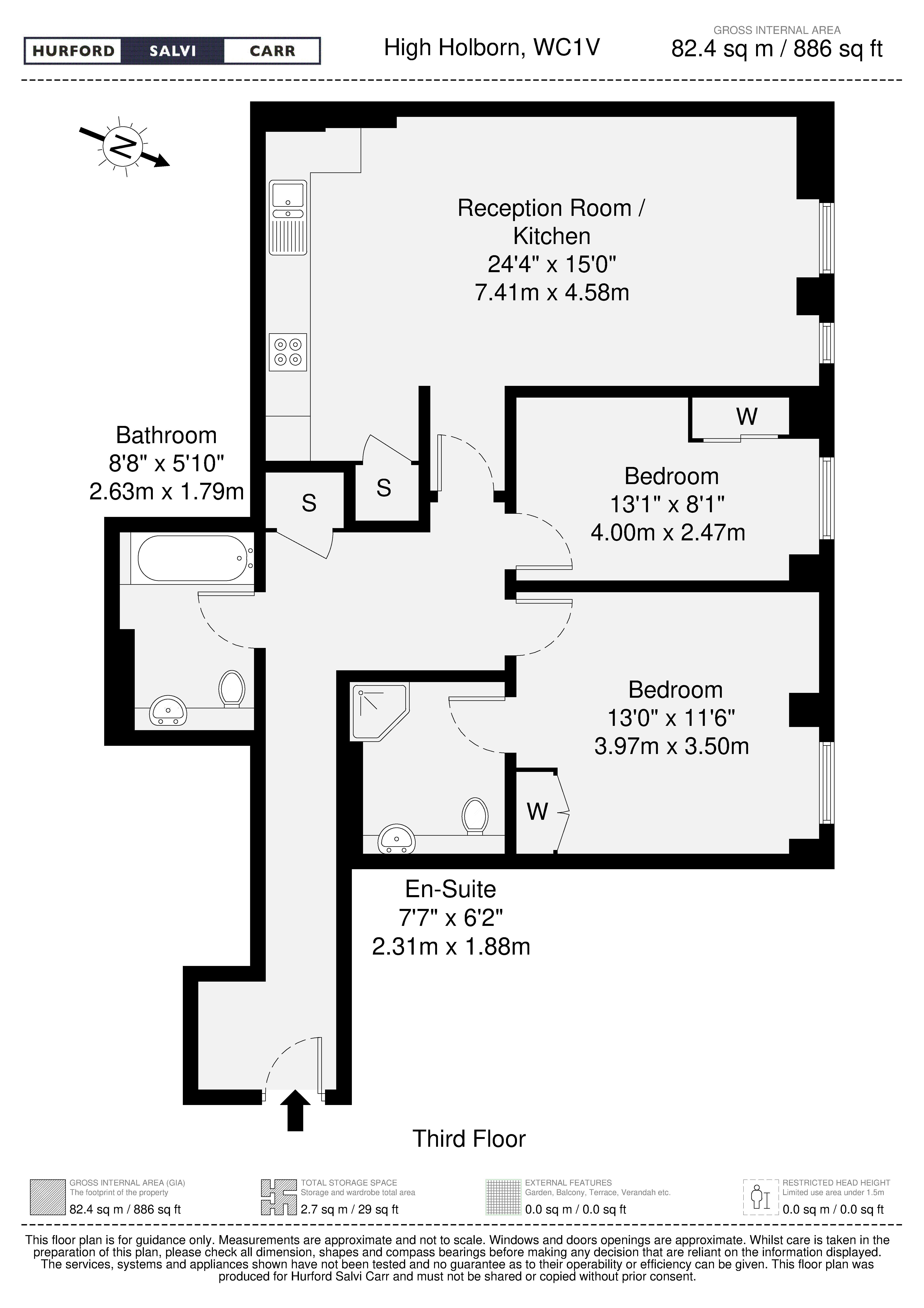 This bright and spacious apartment is located in one of Chancery Lane's most sought-after apartment buildings and has the advantage of a day porter.Originally built in the 1950s, 7 High Holborn was converted in the late 1990s into luxury apartments by the developers United House, with a wonderful entrance hall which retains its original and striking stone galleried staircase with wrought iron balustrade.When completed in 2001 it became the area's most prestigious residential building and is still held in the highest esteem.The apartment which is located to the rear of the building offer bright and comfortable accommodation comprising a large reception room with ample space for a dining table and open plan kitchen, principal bedroom with ensuite shower room, Second bedroom and guest bathroom.The buildings Iocation is just remarkable, within walking distance to the four Inns of Court housing one of the world's most prestigious bodies of judges and lawyers, as well as Lincoln's Inn Fields which is the largest public garden square in London.The apartment is found in the heart of Central London and midway between the West End and the City with Covent Garden to the west and St Paul's to the east, both a short walk away.Chancery Lane (Central Line) Underground Station is on your doorstep giving exceptionally speedy links to the City's Financial district and Farringdon Underground and Mainline Station is a short walk away.