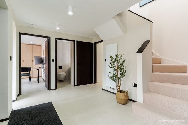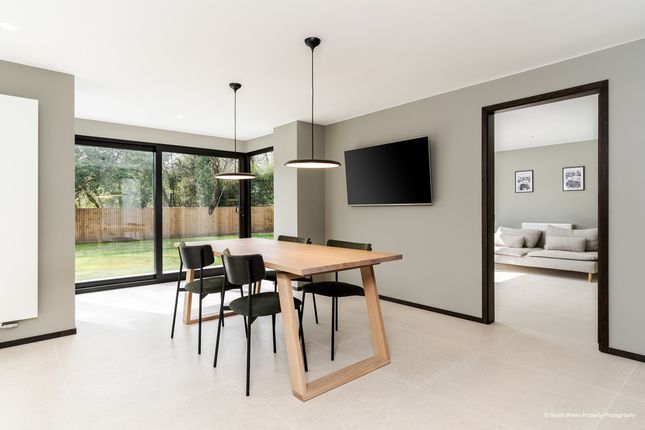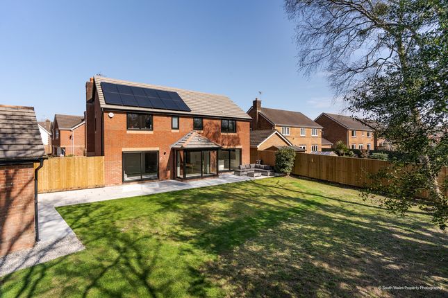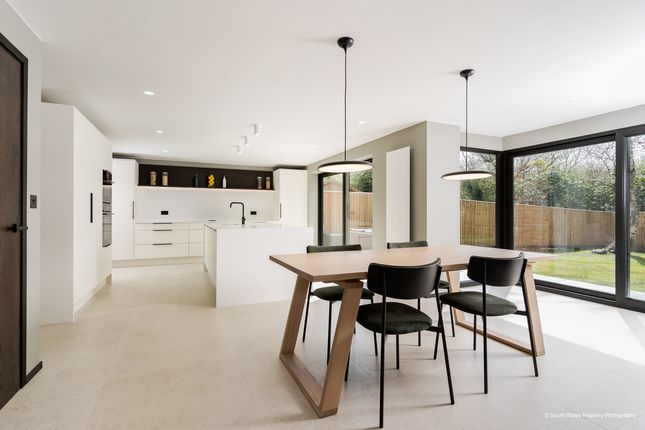 Thompsons are delighted to have been instructed to offer for sale this fabulous and spacious five bedroom executive property which has been extensively upgraded and beautifully styled by the current owners transforming it into a ‘dream home’ with top quality finishes throughout. Boasting bespoke bathrooms and a stunning fitted kitchen/diner, this home truly must be seen to be fully appreciated. Situated in a desirable location with easy access to the M4 motorway, the property offers exceptional living space ideal for modern family life. The accommodation includes a welcoming and spacious reception hall, lounge, sitting room, study, kitchen/diner, utility, cloaks/wc. Upstairs you will find five generous bedrooms with luxury bathroom and en suites all finished to the highest standards. Externally, the property sits on a large private plot ideal for relaxing or entertaining outdoors. A double garage offers further convenience and storage.Entrance hall: 11’11” x 9’6” (Approx.)Via a modern aluminium front door with two opaque uPVC double glazed panels this spacious entrance welcomes you into this beautiful home. Stairs to the first floor. Storage cloaks cupboard. Spotlights and downlights to ceiling. Slimline radiator. Large format Porcelanosa tiled flooring. Thermostatic central heating controls. Power points.Study: 11’1” x 7’7” to face of cupboards (Approx.)Porcelanosa large format tiled flooring continued from entrance hall. UPVC double glazed window to the front elevation fitted with a roller blind. Bespoke fitted cupboards. Recessed lighting. Slimline radiator. Power points.Lounge: 18’3” x 13’3” plus bay (Approx.)Via modern glazed double doors into this spacious reception room. UPVC double glazed box bay to the front elevation fitted with roller blinds. Media wall with television with indirect accent sensor lighting. Herringbone style flooring. Two radiators. Power points.Cloakroom W/C:Bespoke solid vanity unit with wash hand basin with drawer. Walls and floors tiled with co-ordinating Porcelanosa large format tiles. Low level w/c. Fitted mirror with accent lighting plus a pendant light. Extraction fan.Open plan kitchen / diner: 25’ x 14’6” (Approx.)A light and bright open plan space ideal for entertaining.Kitchen area: 14’4” x 14’6” (Approx.)A stunning bespoke fitted kitchen with solid working surfaces with a four ring induction hob with down draft extraction fan. Solid co-ordinating splashback. Integrated full larder fridge and freezer. Combination oven / microwave and a single oven. A large central island again with the co-ordinating solid working surface with waterfall edge and incorporating a sink unit with instant hot water tap provides an additional seating area. Integrated dishwasher. Shelving with accent recessed lighting. Recessed lighting to ceiling. UPVC sliding patio doors open to the rear garden. Large format Porcelanosa tiles to flooring. Slimline radiator. Power points. Open to:Dining area: 18’ x 9’8” (Approx.)Ample space for table and chairs. Understairs storage cupboard. Recessed and downlighting to ceiling. UPVC double glazed sliding patio doors open to the rear garden with glazed panels to the side. Slimline radiator. Power points. Door to:Sitting room: 13’3” x 10’7” (Approx.)Another light and bright reception room. Large format Porcelanosa tiled flooring. UPVC double glazed patio doors to the rear garden. Recessed lighting. Radiator. Power points.Utility room: 7’1” x 6’ (Approx.)Fitted base units with wood effect working surfaces over with upstands and incorporating a stainless steel sink unit with draining board and mixer tap over. Plumbed for washing machine and space for a tumble dryer. UPVC double glazed door to the side elevation provides access into the garden. Electrical consumer unit. Wall mounted gas central heating boiler. Radiator. Extraction fan.First floor:Carpet as fitted to the half turn stairs. Herringbone style flooring to the spacious landing area. Two uPVC double glazed windows to the front elevation fitted with roller blinds. Recessed lighting. Airing cupboard housing the hot water tank. Radiator. Power points.Principal bedroom: 13’4” x 13’2” to face of wardrobes plus door recess(Approx.)A good size double bedroom. UPVC double glazed window to the rear elevation fitted with a roller blind and over looking the garden and woodlands. Herringbone style flooring. Wall of fitted wardrobes. Bespoke wall panelling. Recessed lighting to ceiling plus down lighting. Radiator. Power points. Door to:En-suite:A suite comprising of a bespoke floating vanity unit with wash hand basin, walk in shower with obscured glass side screen with rainforest style shower and a wall mounted w/c. Porcelanosa large format tiles to floor with co-ordinating tiles to walls. UPVC double glazed opaque window to the side elevation. Electric toothbrush charger. Modern slimline radiator. Xpelair extraction.Bedroom two: 13’9” x 8’11” (Approx.)Another double bedroom with uPVC double glazed window to the rear elevation fitted with a roller blind. Herringbone style flooring. Wall of fitted wardrobes. Panelled wall with reading light. Radiator. Power points.En-suite:Fitted with a white suite comprising of a wall mounted w/c, vanity unit housing the wash hand basin and a shower enclosure with independent shower with rainforest style head. Feature textured tiles with co-ordinating wall tiles. Tiled flooring. UPVC double glazed opaque window to the rear elevation. Modern slimline radiator. Electric toothbrush charger. Xpelair extraction.Bedroom three: 10’9” x 10’4” (Approx.)Another double bedroom. Herringbone style flooring. UPVC double glazed window to the front elevation fitted with roller blind. Feature panelled wall with wall light. Fitted wardrobe. Radiator. Coving to ceiling. Power points.Bedroom four: 10’10” x 8’6” (Approx.)Another double bedroom with uPVC double glazed window to the front elev