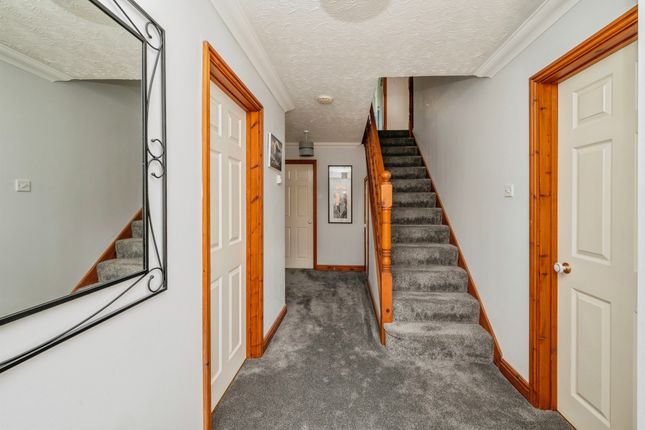 SummaryThis immaculately presented, four bedroom detached house with double garage, driveway parking and three reception rooms overlooking fields would make an ideal family home and is being offered with no onward chain!DescriptionSituated at the end of a private driveway, this impressive detached family home offer accommodation comprising entrance hall, lounge, dining room, kitchen, utility room, cloakroom and snug/ study on the ground floor. On the first floor you will find a master bedroom with en suite, three further bedrooms and a family bathroom. Externally, the property boasts ample driveway parking and a double garage with electric roller doors, power and lighting. The front and rear gardens are well maintained and overlook fields to the side aspect. The property has been recently decorated, well maintained set in a private position on a popular estate and being sold with no onward chain, this property would make an ideal family home within walking distance of local schools, shops and the town centre.Entrance HallDouble glazed door to the front aspect, understairs cupboard and newly fitted carpeted flooring.Lounge 13' 6" x 12' 8" ( 4.11m x 3.86m )Double glazed bay window to the front aspect, double glazed window to the side aspect, fireplace with gas fire, television point, double doors into the dining room and newly fitted carpeted flooring.Dining Room 10' 2" x 9' 9" ( 3.10m x 2.97m )Double glazed double doors opening onto the rear garden, double glazed window to the side aspect and newly fitted carpeted flooring.Kitchen 11' 3" x 9' 9" ( 3.43m x 2.97m )Fitted kitchen with a range of wall and base units with work surfaces over, electric oven, gas hob with cooker hood above, ceramic sink drainer, built in dishwasher, space for under counter fridge, vinyl flooring and a double glazed window to the rear aspect.Utility RoomSpace for fridge/ freezer, plumbing for washing machine, space for tumble dryer, gas central heating boiler, stainless steel sink drainer, double glazed window to the rear aspect, double glazed door to the side aspect and vinyl flooring.CloakroomWC, wash hand basin, tiled splashback, vinyl flooring and a double glazed window to the side aspect.Study/ Snug 12' 9" x 8' ( 3.89m x 2.44m )Double glazed window to the front aspect, television point and newly fitted carpeted flooring.First Floor LandingAiring cupboard housing hot water tank, radiator and carpeted flooring.Bedroom One 12' 8" x 12' ( 3.86m x 3.66m )Double glazed window to the front aspect offering field views, built in wardrobes, radiator and carpeted flooring.En SuiteSuite comprising WC, wash hand basin with vanity unit, shower cubicle, shaving point, extractor fan, part tiled walls, vinyl flooring, spotlights, radiator and a double glazed window to the side aspect.Bedroom Two 12' 7" x 11' 2" ( 3.84m x 3.40m )Double glazed window to the front aspect, built in wardrobe, radiator and carpeted flooring.Bedroom Three 10' 9" x 9' 6" ( 3.28m x 2.90m )Double glazed window to the rear aspect, built in wardrobe, radiator and carpeted flooring.Bedroom Four 9' 9" x 7' 9" ( 2.97m x 2.36m )Double glazed window to the rear aspect, built in wardrobe, radiator and carpeted flooring.Family BathroomSuite comprising bath with shower over, WC, wash hand basin with vanity unit, spotlights, extractor fan, part tiled walls, vinyl flooring and a double glazed window to the rear aspect.Double GarageDouble garage with electric roller doors, power and lightingExterior The front of the property offers driveway parking, access to the double garage via roller doors and side personnel door. The front garden is mainly laid to lawn with patio path and fruit trees. The rear garden can be access via a gate to the side of the property, it is fully enclosed, overlooking fields and benefits from a garden shed with power, outdoor tap, lawn and patio areas, bordering flower beds, trees, shrubs and plants.1. Money laundering regulations: Intending purchasers will be asked to produce identification documentation at a later stage and we would ask for your co-operation in order that there will be no delay in agreeing the sale.
