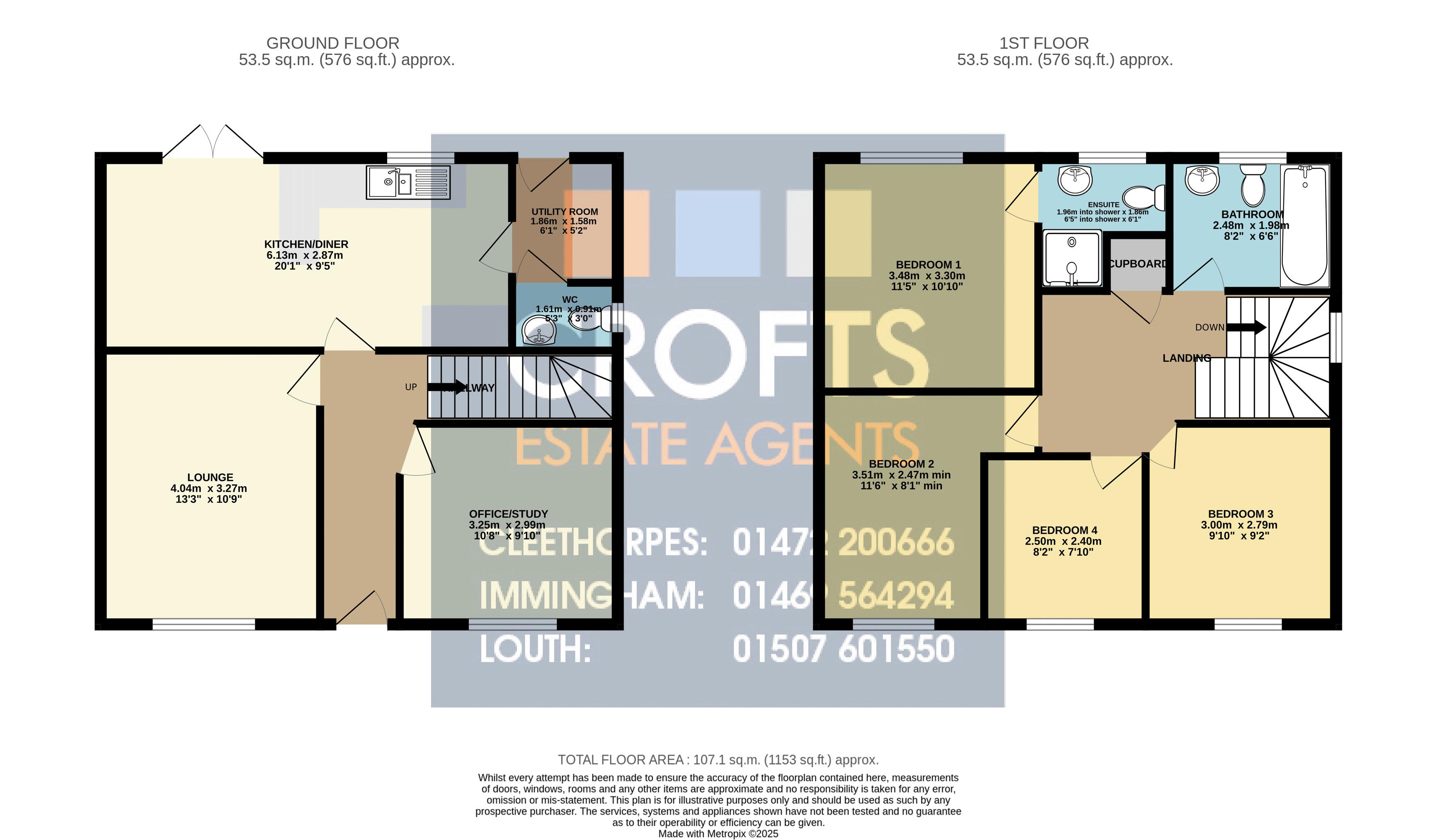 Crofts Estate Agents are thrilled to present this impressive four-bedroom detached family home, occupying a generous plot with open green views to the front. Stylishly presented in neutral tones, the property offers a warm and welcoming feel throughout, complete with gas central heating and uPVC double glazing.Step inside to a spacious entrance hallway leading to a versatile office/study, a bright and comfortable lounge, a modern open-plan dining kitchen, handy utility room, and a cloakroom. Upstairs, a light-filled landing gives access to four well-proportioned bedrooms, including a main bedroom with en-suite shower room, plus a contemporary family bathroom.Outside, the home enjoys an open-plan frontage with uninterrupted views across the green, while the rear boasts a superb enclosed garden – perfect for entertaining or soaking up the sunshine with its desirable southerly aspect. A private driveway and detached garage complete this fantastic package.This is a wonderful opportunity to secure a beautifully balanced family home in a sought-after setting – early viewing is highly recommended!Entrance HallwayOffering composite entry door to the front elevation. Central heating radiator. Staircase to the first floor. Lvt flooring.Office/Study (9' 10'' x 10' 8'' (2.992m x 3.256m))A versatile space with uPVC double glazed window to the front elevation. Central heating radiator.Lounge (13' 3'' x 10' 9'' (4.048m x 3.273m))Neutrally decorated and having uPVC double glazed window to the front elevation. Central heating radiator.Kitchen/Diner (9' 5'' x 20' 1'' (2.876m x 6.130m))A well proportioned kitchen diner which has a uPVC double glazed window to the rear elevation and uPVC double glazed French doors to the rear. Fitted with a range of wall and base units with complementary work surfacing over with inset one and a half sink and drainer. Integrated oven and four ring gas hob with chimney extractor over. Plumbing for a dishwasher. Space for a larder fridge freezer. Central heating radiator. Down lighting to the ceiling. Ample space to accommodate a dining table and chairs.Utility (6' 1'' x 5' 3'' (1.866m x 1.589m))Offering composite entry door to the rear elevation, the utility has wall and base units with complementary work surfacing with space beneath for a washer and dryer. Wall mounted gas boiler. Fitted extractor fan.Cloakroom (3' 0'' x 5' 3'' (0.910m x 1.612m))UPVC double glazed window to the side elevation. Fitted with a w.c and wash hand basin. Splashback tiling. Central heating radiator.First Floor LandingUPVC double glazed window to the side elevation. Loft access to the ceiling. Storage cupboard.Family Bathroom (6' 6'' x 8' 2'' (1.985m x 2.487m))Offering uPVC double glazed window to the rear elevation, the family bathroom is equipped with a pedestal wash hand basin, close coupled w.c and a panelled bath with shower and screen over. Splashback tiling. Central heating towel radiator.Bedroom One (11' 5'' x 10' 10'' (3.488m x 3.301m))UPVC double glazed window to the rear elevation and having central heating radiator.Ensuite (6' 5'' into shower x 6' 1'' (1.967m x 1.866m))UPVC double glazed window to the rear elevation. Fitted with a pedestal wash hand basin, close coupled w.c and a shower cubicle. Fitted extractor fan. Central heating towel radiator.Bedroom Two (11' 7'' x 8' 1'' min (3.519m x 2.468m))Neutrally decorated and having uPVC double glazed window. Central heating radiator.Bedroom Three (9' 10'' x 9' 2'' (3.003m x 2.790m))UPVC double glazed window to the front elevation. Central heating radiator.Bedroom Four (8' 3'' x 7' 11'' (2.507m x 2.407m))UPVC double glazed window to the front elevation. Central heating radiator.OutsideSet upon this good sized plot with open frontage facing the green, this lovely home is ideal for the family market. The rear garden enjoys a sunny facing aspect and has a good sized expanse of lawn along with a small patio area. Gated access out to the front. To the rear of the property there is also off road parking and a detached garage.GarageDetached garage located to the rear of the property with up and over door.