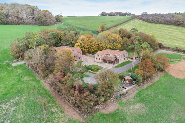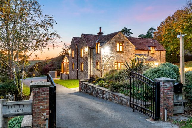 This spectacular hillside residence evokes the sensation of living among the clouds - a private world where the sky feels close enough to touch and every sunrise paints the landscape anew. The sweeping driveway, curving gracefully through the orchards of Thatchers, creates a grand sense of arrival, announcing a home that embodies both elegance and serenity.Perched high above the rolling Somerset countryside, Hillfield Farm commands breathtaking panoramic views in every direction, a panorama of soft hills, golden fields, and endless horizon. A meandering country lane leads to private, gated grounds, where peace and privacy define every moment.The principal residence exudes timeless sophistication. Every detail has been curated to blend classic country charm with modern refinement. At its heart, a beautifully appointed kitchen and dining room opens through elegant bi-fold doors to a sun-drenched terrace-an inviting setting for alfresco dining and evenings spent beneath the stars. The sitting room, anchored by a grand stone fireplace and wood-burning stove, radiates warmth and intimacy. A few steps lead down to a luminous glass area, a tranquil sanctuary bathed in natural light, perfect for unwinding, reading, or simply savouring the ever-changing vistas of the surrounding countryside. Completing the thoughtfully designed ground floor are a study, games room, utility and boot room, and cloakroom.The first floor offers four sumptuous bedroom suites, each with a private en-suite bathroom. The principal suite is a retreat of its own, featuring a spacious and luxurious en-suite complete with a freestanding bathtub and high-end finishes, a lavish dressing room, and an additional cloakroom-a perfect sanctuary at the end of each day.A separate two-bedroom, two-bathroom villa provides a serene space for guests, extended family, or potential rental use. With its open-plan kitchen, breakfast area, and inviting living room, it mirrors the elegance and comfort of the main house while maintaining complete independence. The annexe also offers the opportunity for the new owner to put their own stamp on the space, tailoring it to personal taste and lifestyle.Beyond the residences, is a handsome stone outbuilding, with vast internal space, offering exceptional versatility-ideal for garaging, a workshop, or further development. The surrounding gardens are a tapestry of vibrant blooms, sloping lawns, and mature trees, thoughtfully designed to harmonize with the natural rhythm of the land. A timber-decked terrace, while offering a superb setting to enjoy the views, would benefit from some renovation to restore it to its full potential, making it a perfect spot to watch sunsets on the horizon.Extending across approximately 15 acres of well-tended pasture and tranquil woodland, Hillfield Farm captures the essence of refined country living-private, poetic, and deeply romantic.Additional adjoining c.12 acres is available through separate negotiation.Area overview:Nestled in the tranquil hills of the Mendip Area of Outstanding Natural Beauty, Hillfield Farm offers a serene countryside retreat with panoramic views of the Somerset landscape.Located just outside the picturesque villages of Loxton and Christon, the property provides a harmonious blend of rural charm and convenient access to nearby amenities.Loxton is a quintessential Somerset village, known for its community spirit and scenic surroundings. A notable spot is the Frankie Howerd Hub & Café, a community-focused establishment run by the Frankie Howerd obe Trust. Situated on Sevier Road, the café offers a variety of meals and refreshments, with all profits reinvested into local initiatives.Christon, a charming village nestled in the Mendip Hills, is home to the historic Blessed Virgin Mary Church, a beautiful small Norman church built around A.D. 1170. The surrounding area offers scenic walks and a peaceful atmosphere, making it a delightful destination for those seeking tranquility.Nearby attractions include Cheddar Gorge, a spectacular natural wonder that attracts visitors with its dramatic cliffs, caves, and walking trails. Wookey Hole Caves offers mystical caves and family-friendly attractions nearby. For a seaside experience, Weston-super-Mare is approximately 4.5 miles from Hillfield Farm, offering a range of amenities including shopping, dining, and leisure activities. Attractions like the Grand Pier and Marine Lake provide entertainment for all ages.While Hillfield Farm offers a peaceful rural setting, it is conveniently located for access to essential amenities. The nearby town of Weston-super-Mare provides a range of services, including shopping centers, healthcare facilities, and schools. A short drive from Hillfield Farm and you are at Sidcot School, providing prestige private schooling with boarding. The M5 motorway is easily accessible, offering connections to Bristol and beyond.