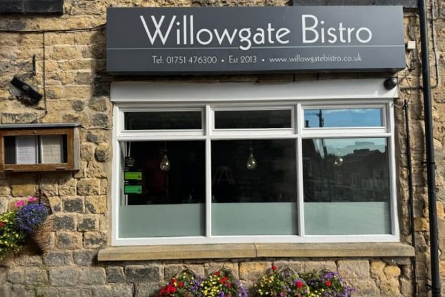 Full DescriptionA fine opportunity to acquire the freehold of this very profitable fine dining licensed restaurant with two storey two bedroomed fully furnished maisonette above, centrally located in the busy tourist town of Pickering.The restaurant Willowgate Bistro is a highly regarded, long established business that enjoys an excellent reputation for its quality locally sourced food and fine dining experience. Currently the business opens on a Thursday, Friday and Saturday evening and achieves a turnover of around £ 150,000 per annum.The ground floor consists of a 38 cover dining area, custom built solid oak bar, well equipped commercial kitchen, WC and dry storage areaThe 2 storey upstairs accommodation consists of a porch, hallway, spacious living room looking out onto the market place, a luxury bathroom, a newly built kitchen and dining area leading out to a spacious private roof terrace with a stunning church view. On the 3rd floor there are 2 double bedrooms one of which has a walk in dressing room and a landing area with fitted wardrobes.Ideal property for an owner occupied lifestyle business that makes money from the off or as the restaurant and fully furnished maisonette have separate utilities and entrances it would make an excellent investment property.Extra Details :The maisonette is council tax band A.The restaurant has an EPC Rating of C valid until 2034 and a rateable value of £5,900This property is not a listed building. Full accounts available for interested parties after viewing.**enquiries**For all enquiries, viewing requests or to create your own listing please visit the Emoov website.If calling, please quote reference: S5442Porch (5.1' x 3.3')Front door into quarry tiled flooring with double glazed window overlooking the churchyard.HallwayKarndean flooring. Radiator, double gazed window overlooking the church yard, doors leading to sitting room, bathroom, kitchen and stairs to upper floor.Sitting Room (15.5' x 14.4')Karndean flooring, radiator, 2 double glazed sash windows overlooking the market place, 1 double glazed window overlooking the church yard, black glass built in electric fire.Bathroom (10.5' x 8.8')Karndean flooring, heated towel rail, double glazed window with privacy glass, free standing bath, WC, built in sink unit, walk in shower, extractor fan.Kitchen Diner (13.2' x 12.5')Karndean flooring, radiator, luxury white gloss kitchen consisting of wall and base units, built in electric double oven, 5 ring gas hob, integrated washing machine and dishwasher, utility cupboard housing gas boiler, vaulted style double glazed windows and double doors leading onto roof terrace.Roof Terrace (12.3' x 12.6')Timber decking, outdoor solar wall lights, stunning views of the church.Bedroom One (14.4' x 11.5')Cathedral style ceiling, radiator, double glazed dormer window overlooking the churchyard, way through to walk in dressing room.Dressing Room (6.11' x 5.80')Walk in dressing room with cupboards and rails.Bedroom Two (12.60' x 8.11')Cathedral style ceiling, radiator, double glazed dormer window overlooking churchyard.Bistro Bar And Dining Area (32.1' x 14.6')Karndean flooring, 2 radiators, large triple double glazed window overlooking the market place, set for 22 but space for 38 covers, custom built solid oak bar area with coffee machine, grinder, wash basin, wine racking, ice making machine and 2 under counter fridges.Bistro WC (6.7' x 4.3')Tiled walls and floor, WC, hand wash basin, electric hand dryer and cupboard housing gas boiler.Bistro Kitchen And Storage Area (21.2' x 12.8')Gas cooker, 2 fryers, double stainless steel fridge, freezer, dishwasher, glass washer, microwave ovens, wine fridge, stainless steel benches, twin bowl stainless steel sink unit, separate hand wash basin, food mixers and various other commercial kitchen items.
