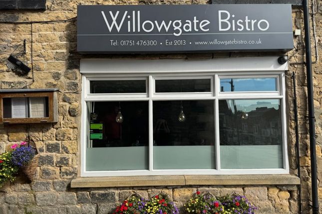 Full DescriptionA fine opportunity to acquire the freehold of this very profitable fine dining licensed restaurant with two storey two bedroomed fully furnished maisonette above, centrally located in the busy tourist town of Pickering.The restaurant Willowgate Bistro is a highly regarded, long established business that enjoys an excellent reputation for its quality locally sourced food and fine dining experience. Currently the business opens on a Thursday, Friday and Saturday evening and achieves a turnover of around £ 150,000 per annum.The ground floor consists of a 38 cover dining area, custom built solid oak bar, well equipped commercial kitchen, WC and dry storage areaThe 2 storey upstairs accommodation consists of a porch, hallway, spacious living room looking out onto the market place, a luxury bathroom, a newly built kitchen and dining area leading out to a spacious private roof terrace with a stunning church view. On the 3rd floor there are 2 double bedrooms one of which has a walk in dressing room and a landing area with fitted wardrobes.Ideal property for an owner occupied lifestyle business that makes money from the off or as the restaurant and fully furnished maisonette have separate utilities and entrances it would make an excellent investment property.Extra Details :The maisonette is council tax band A.The restaurant has an EPC Rating of C valid until 2034 and a rateable value of £5,900This property is not a listed building. Full accounts available for interested parties after viewing.**enquiries**For all enquiries, viewing requests or to create your own listing please visit the Emoov website.If calling, please quote reference: S5321Porch (5.1' x 3.3')Front door into quarry tiled flooring with double glazed window overlooking the churchyard.HallwayKarndean flooring. Radiator, double gazed window overlooking the church yard, doors leading to sitting room, bathroom, kitchen and stairs to upper floor.Sitting Room (15.5' x 14.4')Karndean flooring, radiator, 2 double glazed sash windows overlooking the market place, 1 double glazed window overlooking the church yard, black glass built in electric fire.Bathroom (10.5' x 8.8')Karndean flooring, heated towel rail, double glazed window with privacy glass, free standing bath, WC, built in sink unit, walk in shower, extractor fan.Kitchen Diner (13.2' x 12.5')Karndean flooring, radiator, luxury white gloss kitchen consisting of wall and base units, built in electric double oven, 5 ring gas hob, integrated washing machine and dishwasher, utility cupboard housing gas boiler, vaulted style double glazed windows and double doors leading onto roof terrace.Roof Terrace (12.3' x 12.6')Timber decking, outdoor solar wall lights, stunning views of the church.Bedroom One (14.4' x 11.5')Cathedral style ceiling, radiator, double glazed dormer window overlooking the churchyard, way through to walk in dressing room.Dressing Room (6.11' x 5.80')Walk in dressing room with cupboards and rails.Bedroom Two (12.60' x 8.11')Cathedral style ceiling, radiator, double glazed dormer window overlooking churchyard.Bistro Bar And Dining Area (32.1' x 14.6')Karndean flooring, 2 radiators, large triple double glazed window overlooking the market place, set for 22 but space for 38 covers, custom built solid oak bar area with coffee machine, grinder, wash basin, wine racking, ice making machine and 2 under counter fridges.Bistro WC (6.7' x 4.3')Tiled walls and floor, WC, hand wash basin, electric hand dryer and cupboard housing gas boiler.Bistro Kitchen And Storage Area (21.2' x 12.8')Gas cooker, 2 fryers, double stainless steel fridge, freezer, dishwasher, glass washer, microwave ovens, wine fridge, stainless steel benches, twin bowl stainless steel sink unit, separate hand wash basin, food mixers and various other commercial kitchen items .