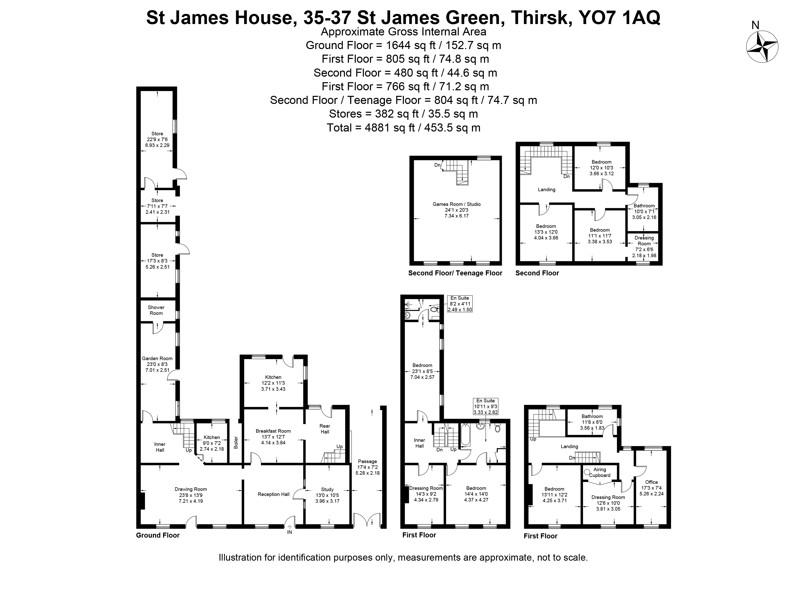 A substantial Listed Georgian family home with a private walled garden that works well as one large family home or could be split to create two 3 storey town houses with gardens. It enjoys a central position overlooking the green in the popular market town of Thirsk which offers excellent road and rail access.Reception hall, 4 reception rooms, kitchen, back kitchen and large rear hall. Five bedrooms with dressing rooms, games room/studio and a 2 bed teenage floor with study. Private walled garden and three useful stores.St James House is a handsome Grade II listed town house providing extensive accommodation which is arranged over three floors. It is believed to date from the mid to late 18th Century and was previously 3 houses before being altered to provide one large family home, but this could be changed back again if so desired, subject to any necessary permissions required. It is currently in a poor condition and will require substantial works to make good, however it could easily be transformed into a wonderful family home of great character and charm. Opportunities like this are hard to find in such a central location.OutsideTo the front of the property there is a gravelled road providing on street parking which also adjoins The Green. There is vehicular access through double gates and an archway which gives access to the walled garden at the rear. This area enjoys considerable privacy and includes three useful stores which again could be used for something else, subject to any necessary permissions.LocationThe property is located in the centre of the popular market town of Thirsk which is known for its racecourse and also the fictional vet James Herriott. The property is within easy walking distance of the cobbled market square where youwill find an extensive range of amenities and the train station in the town offers direct services to London Kings Cross, Edinburgh and York. For the commuter there is easy access to the A19 which in turns leads to the commercial centres of North Yorkshire and Teesside as well as the national motorway network. The town lies nestled between The Yorkshire Dales and the North York Moors National Parks which both provide some of the areas most stunning scenery with wonderful walks on your doorstep.Property informationServices: The property is connected to mains electric, water and drainage and gas.Local Authority: North Yorkshire CouncilT: Council Tax: Band GTenure: FreeholdPostcode: YO7 1AQwhat3words: ///meaning.trailing.forkfulPostcode: YO7 1AQwhat3words: ///meaning.trailing.forkful
