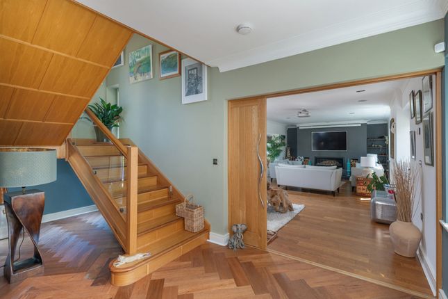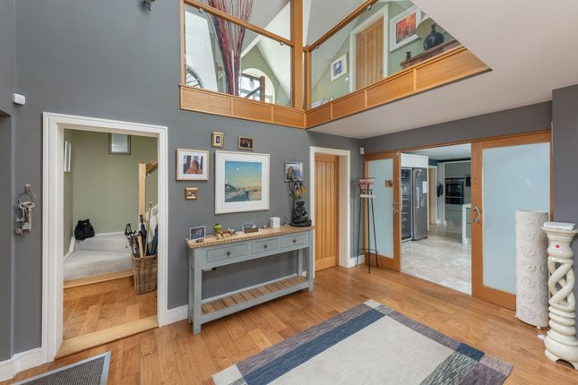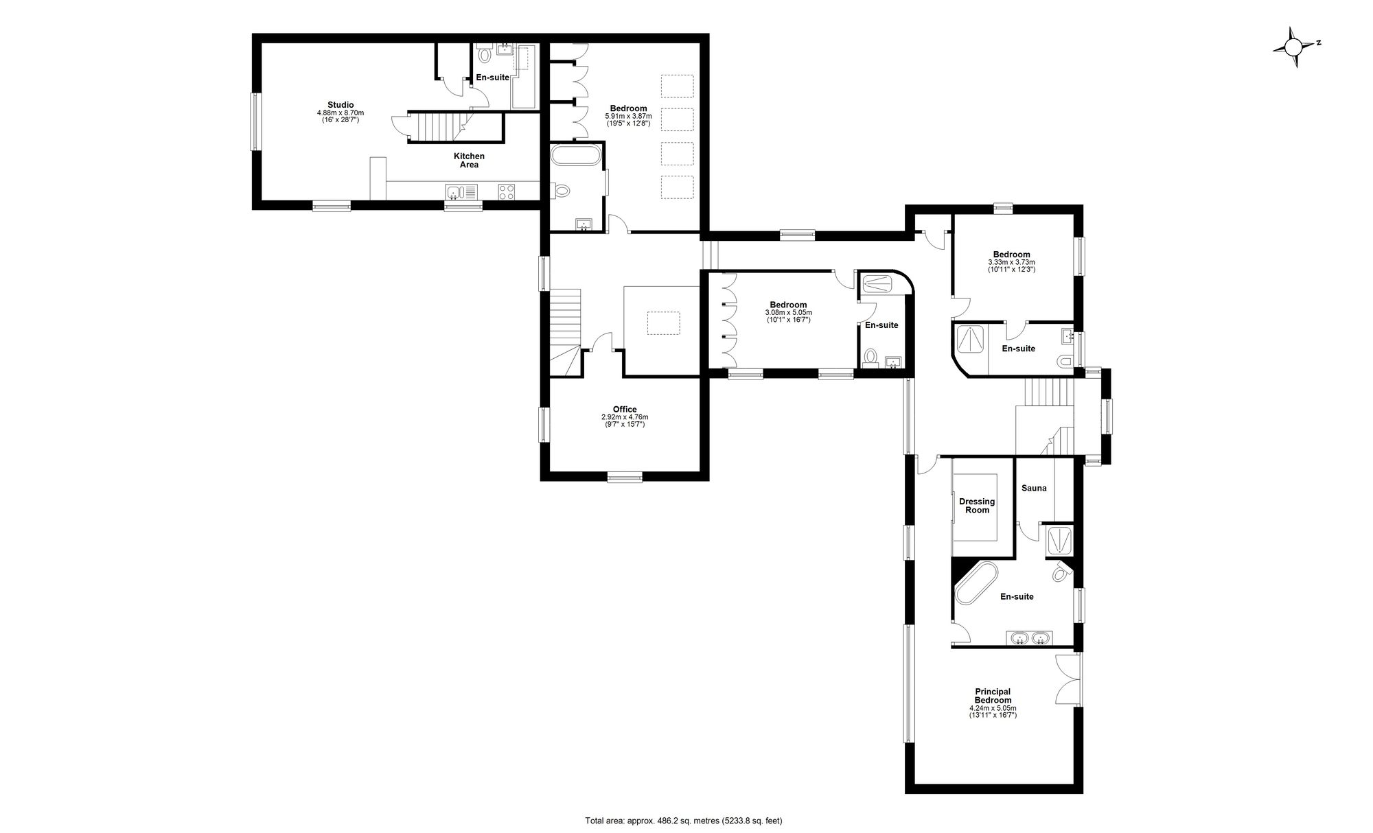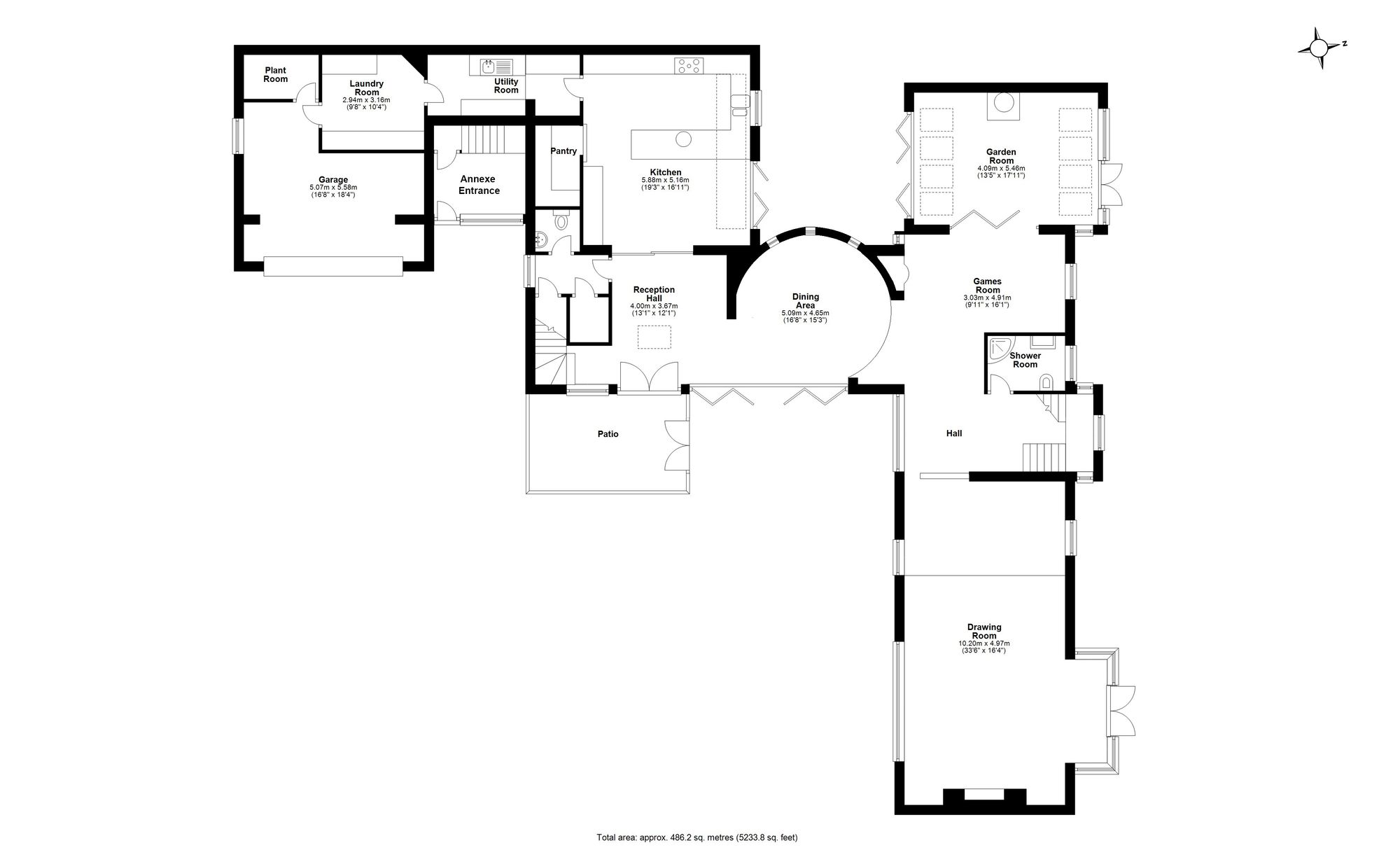Accommodation in BriefMain HouseReception Hall | Dining Area | Games Room | Garden Room | Drawing Room | Shower Room | Kitchen | Pantry | Utility Room | Laundry Room | Plant Room | Integral GarageFirst FloorPrincipal Bedroom with En-Suite, Sauna and Dressing Room | Three Further Double Bedroom with En-Suites | OfficeStudioOpen Plan Bedroom/Living Room/Kitchen Area | BathroomThe PropertySet back along a long, tree-lined driveway in the centre of the sought-after village of Corbridge, Birchwood House occupies a secluded and private position, surrounded by established gardens, mature trees, and a collection of landscaped outdoor settings crafted for year-round enjoyment. Originally forming part of a stable yard, the house has been carefully re-modelled and extended to offer over 5,200 sq ft of internal space, along with a separate self-contained studio. Inside, the home offers generous, light-filled spaces with smart home features and a consistently high standard of finish throughout.At the front of the house, a broad entrance hallway opens into the primary living and entertaining spaces. Solid hardwood flooring runs throughout the ground floor, complemented by a substantial oak staircase and finely crafted joinery. The layout is arranged as an open-plan sweep, with the flexibility to divide spaces using bespoke oak sliding and hinged doors allowing for a fluid transition between zones, equally suited to everyday living and entertaining.A central dining area forms the heart of the layout, enhanced by full-width five-panel glass bi-fold doors that open directly into the front garden. A glass sun canopy extends above, creating a sheltered transition between indoors and out and offering a striking setting for entertaining or relaxed family dining. Just beyond the dining area, the games room offers a versatile setting for leisure or informal use. A sliding door provides the option to separate this space from the more formal drawing room, while folding doors open into the glazed garden room — an inviting space bathed in natural light from overhead skylights and tall windows. French doors open onto the rear garden, while additional bi-fold doors lead out to a private courtyard patio, creating a tranquil retreat that connects seamlessly with the surrounding outdoor spaces.The kitchen is a bright, well-proportioned space, beautifully appointed to a high specification with a full suite of integrated appliances. These include a stoves Richmond gas cooker, Siemens microwave oven, and a Quooker tap delivering instant boiling, chilled, and sparkling water from a single spout, dual dishwashers, a Bosch wine cooler, and Samsung fridge and freezer. There is ample space for a dining table positioned in front of bi-fold doors that open to the courtyard. A well-organised utility area, pantry, and laundry room are discreetly positioned to support the kitchen’s practical function without interrupting the clean, open layout.On the opposite side of the house, the drawing room offers a refined counterpoint to the open-plan living areas. Centered around a contemporary wood burner and fitted with bespoke library shelving, the room also features a recessed ceiling cinema system and electrically operated shutter blinds. French doors open onto the rear garden, while generous windows frame the surrounding greenery.Upstairs, a generously lit and spacious landing creates a sense of light and openness at the centre of the first floor. The principal suite is particularly impressive, featuring a Juliet balcony overlooking the garden, integrated air conditioning, and a fitted dressing room. Its en-suite bathroom is elegantly finished with designer fittings including a freestanding tub, rainfall shower and a private sauna — offering a restful and indulgent retreat.The first floor offers versatile accommodation, with rooms that can be adapted to suit a range of needs. Three further bedrooms provide flexibility for family or guests, with two benefitting from fitted wardrobes and each served by its own stylish en-suite bathroom. All are finished to a high standard, maintaining the quality and consistency seen throughout the home. One bedroom is currently arranged as a gym, complete with electric Velux-style windows, while a separate office provides an ideal space for home working or quiet study.Birchwood StudioWith its own private entrance and well-considered layout, Birchwood Studio offers exceptional versatility - ideal for multi-generational living, guest accommodation, or as a high-quality holiday let. The open-plan interior provides ample space for both sleeping and relaxing, with a comfortable seating area arranged around a feature electric fire that adds warmth and character. A smartly designed kitchen supports independent living or occasional use, while the bathroom is stylishly appointed with quality fittings and a powerful shower over a generously proportioned bath.ExternallyThe approach to Birchwood House is via a long, tree-lined driveway that opens into a generous parking area and leads to a large garage. To the front, a large, stone-lined garden is arranged around a stream-fed natural pond, crossed by a small bridge and bordered by mature planting. A broad stone terrace wraps around the house, with a covered seating area strung with ambient lighting — an ideal setting for outdoor dining and entertaining. A secondary courtyard, nestled between the kitchen and garden room, offers a more intimate space for morning coffee or evening drinks.The north-facing rear garden is fully enclosed and can be accessed directly from both the drawing room and garden room. A flagstone path leads past a lawn and seating areas to a raised terrace at the far end, where a timber summerhouse sits alongside a powered workshop, garden shed, and greenhouse. A wood-fired hot tub, heated via an air source heat pump, is tucked into a private corner — one of several secluded spaces carefully arranged to make the most of the garden’s va