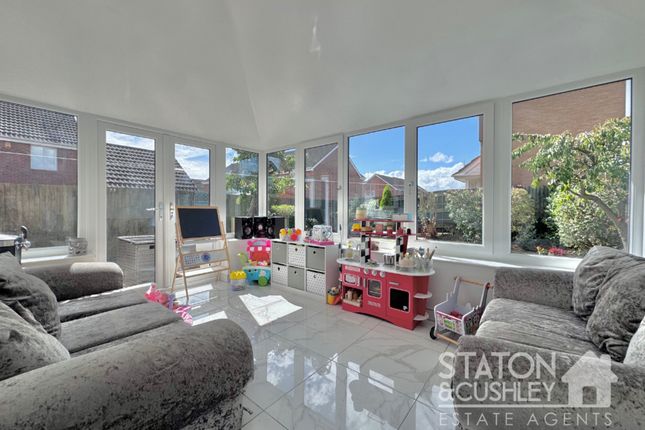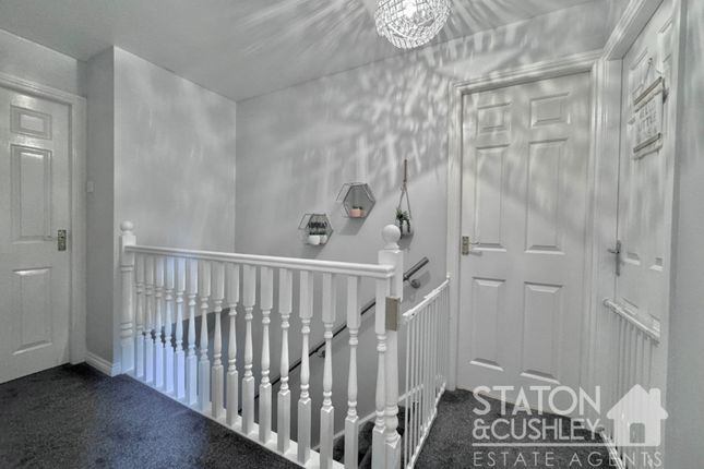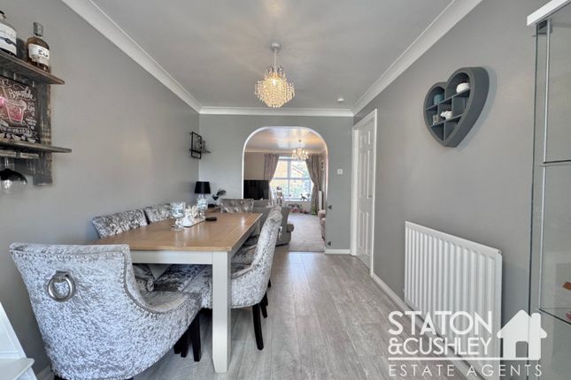 Staton & Cushley are pleased to present this magnificent four bedroom family residence, occupying a desirable positioning within the heart of a prestigious development close to a wealth of local amenities, highly regarded schools and transport links. This wonderful home not only offers a spacious and well laid out interior but also a beautiful and stylish internal decor making it a dream home for growing families.Upon entering the property you are greeted by an inviting entrance hallway which offers access through to lower floor rooms and stairs rising to the first floor accommodation. Firstly you will be welcomed into the cosy lounge boasting a beautifully featured half bay window to the front elevation and fireplace whilst providing a seamless transition into the separate dining area. Just next door you will be welcomed into the generous kitchen which comes complete with a range of modern wall and base units, ample over work surface and integrated appliances including dishwasher, two ovens, induction hob and seperate gas hob providing all you need and more to cook up tasty dishes with ample dining space just next door, setting the perfect area to dine and socialise with family and friends. Completing the ground floor is a downstairs wc for convenience and a well proportioned conservatory to the rear providing a versatile space you can utilise at your own accordance boasting beautifully featured French doors allowing a magnificent garden outlook to enjoy all year round.Heading upstairs, the first floor landing hosts four well proportioned bedrooms all of which offer a tasteful palette ready to add your own homely furnishings. The master bedroom offers a true touch of luxury having fitted wardrobes and access to its own stylish ensuite facility enabling a private retreat to unwind. Accompanying the first floor is a perfectly presented family bathroom boasting a three piece suite in white and tiled surrounds providing a serene space to relax at the end of the day.Outside the property stands proudly on an enviable plot offering a well maintained garden to the rear elevation and a larger than average driveway to the front allowing ample off street parking for multiple vehicles which in turn allows access to the conveniently located garage.Viewing is highly recommended to appreciate all this beautiful home has to offer and more