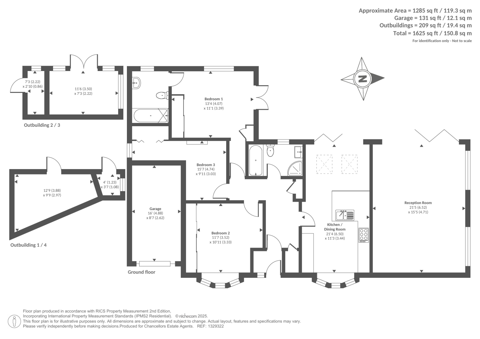 Property DescriptionThis extended detached bungalow occupies a corner plot in a cul-de-sac location in Sydenham, South Oxfordshire and includes a garage, off-road parking and two outbuildings. The property has East and South facing gardens, and views over nearby countryside.Property DetailsThe property has an entrance hallway with built-in storage for coats and shoes, leading to the main hallway from which all rooms are accessed. There are two further storage cupboards, one of which has plumbing for a washing machine.The kitchen/dining room has dual aspect windows, a range of fitted eye-level and base units by Wren, Corian worktops, a breakfast bar, integrated dishwasher, integrated wine cooler, space for an American-style fridge/freezer, electric Velux roof windows and bi-fold doors opening to the garden.Double doors from the kitchen lead to a dual-aspect reception room with a wood-burning stove and bi-fold doors to the garden.The property has three double bedrooms. The main bedroom is dual aspect, with built-in wardrobes, French doors to the garden and an en-suite bathroom with p-shaped bath, overhead shower, heated towel rail and vanity unit. The other bedrooms have built-in wardrobes. There is potential to extend into the adjoining garage, subject to relevant permissions.The family bathroom has a bath, separate shower and heated towel rail.OutsideThe wrap-around garden is mainly laid to lawn with multiple seating areas. Two outbuildings provide an insulated home office with power and lighting, and a workshop with a separate storage area. Side access leads to the front of the property, which has off-road parking for several vehicles and a garage with power and lighting.Other featuresThe property has gas central heating via a modern combi boiler, double glazing throughout, and a part-boarded loft with light and pull-down ladder.LocationSydenham is situated at the foot of the Chiltern Hills, approximately 1 mile from Chinnor and 2.5 miles from Thame. Village amenities include a public house, church and preschool. Chinnor offers everyday shopping facilities, while Thame has a wider range of shops, supermarkets, schools, sports clubs, leisure facilities, and healthcare services. Larger towns including Aylesbury (12 miles), High Wycombe (14 miles) and Oxford (15 miles) offer further amenities.The property is within 5 miles of the M40 (J6) and Princes Risborough railway station, which has services to London Marylebone.Video Viewings:If proceeding without a physical viewing please note that you must make all necessary additional investigations to satisfy yourself that all requirements you have of the property will be met. Video content and other marketing materials shown are believed to fairly represent the property at the time they were created.Property reference 5864596