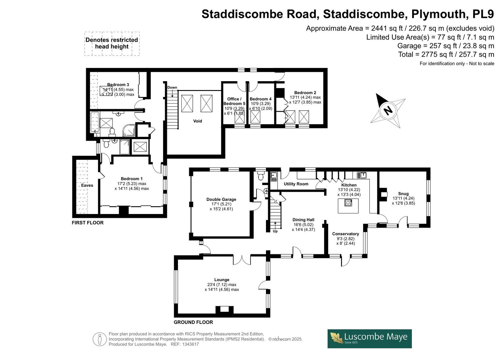 Guide Price £800,000 to £825,000Nestled within the highly desirable hamlet of Old Staddiscombe, yet situated in Plymstock with its wealth of amenities, excellent schooling, and strong transport links, this distinguished five-bedroom detached residence offers an unparalleled blend of countryside tranquillity and contemporary luxury. Completed in 1990 by an NHBC registered builder and finished to an exceptionally high standard, the property has been meticulously designed and decorated by the current owners, who have cherished it since purchasing off-plan. Unassuming from the front, this home is more than meets the eye, revealing a bright, airy, and welcoming interior flooded with natural light from an abundance of windows and skylights.The ground floor is centred around a striking galleried dining hall, which is dramatically overlooked by the second-floor gallery, creating a sense of grandeur and spaciousness. A dual-aspect lounge with feature wood burner offers a sophisticated yet inviting space for family living, while a secondary snug/sitting room, also with a log burner, provides a cosy retreat for quiet evenings or private study. The showpiece kitchen and living area is designed with both style and function in mind, featuring a central island, integrated appliances, and exquisite marble work surfaces. A glass conservatory area is incorporated into the kitchen, creating a light-filled space perfect for dining or relaxing while enjoying views of the garden and countryside. A practical utility room, cloakroom, and integral double garage further enhance the accommodation. The property is very versatile, offering flexible living arrangements across all floors to suit a variety of family needs or home working requirements. Each principal living space opens seamlessly onto the rear garden, forging a perfect connection between indoors and the surrounding countryside.Upstairs, the main bedroom is a serene retreat, complete with fitted wardrobes, a stylish en suite shower room, and breath taking views over the garden and rolling countryside beyond. Off the main bedroom is a spacious carpeted walk-in attic/storage area, providing excellent additional space. Both of the further double bedrooms benefit from fitted wardrobes, while two single bedrooms—one currently configured as a home office—add to the property’s versatility. Expansive windows and skylights throughout the first floor capture sweeping views and fill the rooms with natural light, enhancing the sense of space and tranquillity. The bathrooms are fitted with individual underfloor electric heating units, each with its own timer and temperature controls, ensuring year-round comfort in both the main bathroom and the en suite.Externally, the rear garden is a standout feature, enjoying south-west and south-east aspects which maximise sunlight throughout the day. It includes an extensive patio area and a lawn, perfect for alfresco entertaining and relaxation. Both front and rear gardens are beautifully landscaped with mature shrubs, trees, and extensive planting, creating a private and serene environment. An ample driveway provides generous off-road parking, while the rear garden borders open farmland, offering uninterrupted vistas and a stunning natural backdrop.Combining meticulous design, exceptional finish, and a premier location, this home offers a rare opportunity to enjoy a luxurious lifestyle in a peaceful, highly sought-after setting with easy access to the coast and all that Plymstock has to offer.LocationOld Staddiscombe is a charming and historic hamlet with roots dating back to the medieval period. Originally a small farming settlement, it retains much of its rural character, with a mix of traditional and contemporary homes set amidst rolling countryside. The area is steeped in history, with many buildings reflecting its agricultural past and the sense of community that has developed over centuries. Winding lanes, scenic footpaths, and open farmland provide a tranquil environment, offering residents a peaceful retreat while still being connected to the wider Plymouth area.The property benefits from its enviable position just 1 mile from Staddon Heights Golf Club and only 1 mile from the beautiful Bovisand beaches, both accessible by footpath. This unique combination of countryside charm, outdoor leisure, and coastal access ensures a lifestyle that embraces both relaxation and recreation.While enjoying the historic charm of Old Staddiscombe, the property is located within Plymstock, one of Plymouth’s most sought-after suburbs. Plymstock combines village-like appeal with practical convenience, offering a wealth of amenities including independent shops, supermarkets, cafes, and restaurants, alongside excellent schooling and healthcare. Transport links are well-established, providing easy access to the city centre, the coast, and the surrounding South West region. This combination of Old Staddiscombe’s historic tranquillity, proximity to golf and beaches, and Plymstock’s modern conveniences makes the location ideal for families, professionals, and anyone seeking a serene yet connected lifestyle.Material InformationTo ensure legal compliance, we require our sellers to complete a Property Information Questionnaire or provide a Material Information Guide, along with the title document. If available, please scan the qr code or click the link to access the additional online material information. Alternatively you can contact our team for this information.Verified Material InformationCouncil Tax band: FTenure: FreeholdProperty type: HouseProperty construction: Standard brick and block constructionEnergy Performance rating: DNumber and types of room: 5 bedrooms, 2 bathrooms, 4 receptionsElectricity supply: Mains electricitySolar Panels: NoOther electricity sources: NoWater supply: Mains water supplySewerage: Septic tankHeating: Mains gas-powered central heating is installed. The system was installed on 30 Jun 2018.Heating fea
