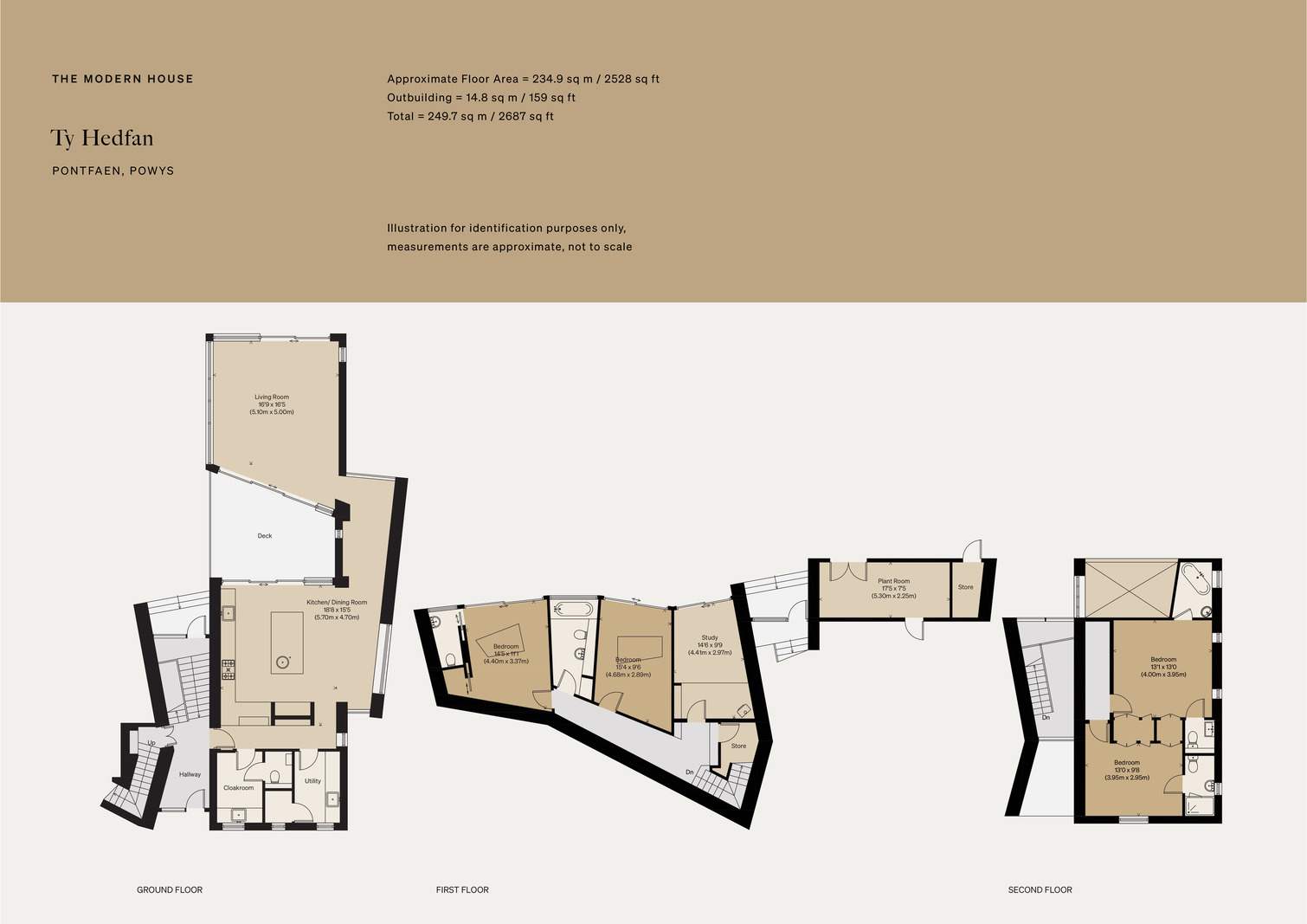 This exquisite example of modern architecture is the work of the acclaimed architectural practice Featherstone Young and comes to market for the first time since its inception. Multi award-winning and short-listed for the prestigious Manser Medal in 2011, Ty Hedfan is a masterful exercise in light and materials, a five bedroom home with beautifully light lateral living space cantilevering elegantly over the River Ysgir. Contextually driven, the architectural design is a triumphant response to its secluded location in the Welsh countryside, with the Brecon Beacons National Park reachable in five minutes.The ArchitectHeaded by Sarah Featherstone and Jeremy Young, Featherstone Young was established in 2002 and has delivered a considerable number of high quality, innovative buildings. Their work has been widely acknowledged as critical and inspiring – reflected in considerable client satisfaction, numerous awards, exhibitions and media coverage.Featherstone Young see architecture as a process of place-making, with capturing context and local identity a crucial part of their design thinking. As a result, each of their buildings have unique and distinctive qualities that respond both to the immediate surroundings, their clients’ ethos and that of the people who use them. For their work on Ty Hedfan, the firm won a riba Award and was nominated for the Steven Lawrence Prize. The building attracted significant media coverage and was featured on several television programmes, including Sandi Toksvig’s Extraordinary Escapes and George Clarke's Amazing Spaces.Listen to our Homing In podcast with Sarah Featherstone here.Environmental PerformanceThe house was conceived with passive environmental design at the forefront. Windows and roof lights are carefully placed to maximise thermal gain and views while minimising overheating. The thermal mass of heavyweight elements (including the ground) is used to aid warming and cooling at different times of the year. Each wing has its own continuous running mev unit that senses humidity and adjusts itself automatically which, combined with ample opening windows, gives excellent internal air quality. The green roof on the lower wing is biodiverse and provides an attractive backdrop from the upper levels.The TourOn the approach, the exterior façade feels effortlessly embedded in its surroundings, setting local slate and stone against the lush backdrop of the treetops. Taking its cue from the traditional Welsh long house form, Ty Hedfan - meaning ‘hovering house’ in Welsh - is highly site-specific and makes use of topographical constraints to inspire its form. In total control of their palette, the architects demonstrate an intentional approach to materials, carefully selected for both longevity and visual appeal.Distinctive in its elevation, the profile is characterised by two distinct wings, totalling approximately 2,400 sq ft. On entering, a series of exceptional living spaces unfold, cleverly conceived on an angled plan to optimise a sublime quality of light while connecting visually to the spectacular backdrop.Open-plan living spaces and an elevated courtyard are set with an impressive double-height glass-walled spur, suspended with dramatic effect above the water’s edge. Full-height glass walls draw in a spectacular light across the cantilevered living room, capturing a leafy snapshot of the treetops and views directly down to the river.Areas for eating and relaxing are loosely delineated to provide versatility and an easy flow, with a suspended fireplace forming a natural focal point in cooler months. The kitchen is defined by clean lines of bespoke cabinetry, with appliances neatly integrated and solid timber flooring runs throughout, adding a tactile materiality underfoot.The second wing, housing the sleeping areas and study (or additional bedroom) is articulated across the westerly side. Partially buried into sloping ground, the sleeping areas feel enveloped within the surroundings, bringing a feeling of quiet and calm. A particularly large bedroom, a peaceful retreat from the rest of the house, is positioned at the furthest end, with an en suite bathroom and bathtub.The additional bedrooms and a study lead off an arterial corridor, each with plenty of storage and closet space. Beautifully crafted timber-framed windows optimise light and thermal solar gain, with the flourishing sedum roof extending the green outlook. There is direct access from here to the upper decked terrace, framed with natural Welsh slate walls that merge with the natural landscape; a fantastic position to enjoy the views.There is also planning permission in place to construct a garage/outbuilding on the street boundary, details of which can be found here.Outdoor SpaceThe outdoor areas have been incredibly well considered and form an integral part of the overall experience of the house, forming a harmonious equilibrium between the architecture and its surroundings. Decked terraces are strategically placed to enjoy an immersive experience of the river and its natural environment; a celebration of local wildlife, rich in biodiversity and teeming with flora and fauna.The broader surrounding gardens have been designed to feel naturalistic in their setting, comprising of lawned areas bordered by mature specimen trees. A series of raised beds lie to one side of the house, providing plenty of opportunity for self-sufficient gardening, and a generous parking area at the foot of the private driveway ensures ample space for several vehicles.The house also has 60 m of enchanting river frontage running in front of it.The AreaUniquely positioned in the Brecon Beacons, five miles north of Brecon, the small village of Pontfaen is surrounded by rolling Welsh countryside. Best known for hillwalking, the location of the house provides the ideal starting point for many of the best-known routes. Pen-y-Fan is the highest peak and can be tackled from the north (the side closest to the house) t