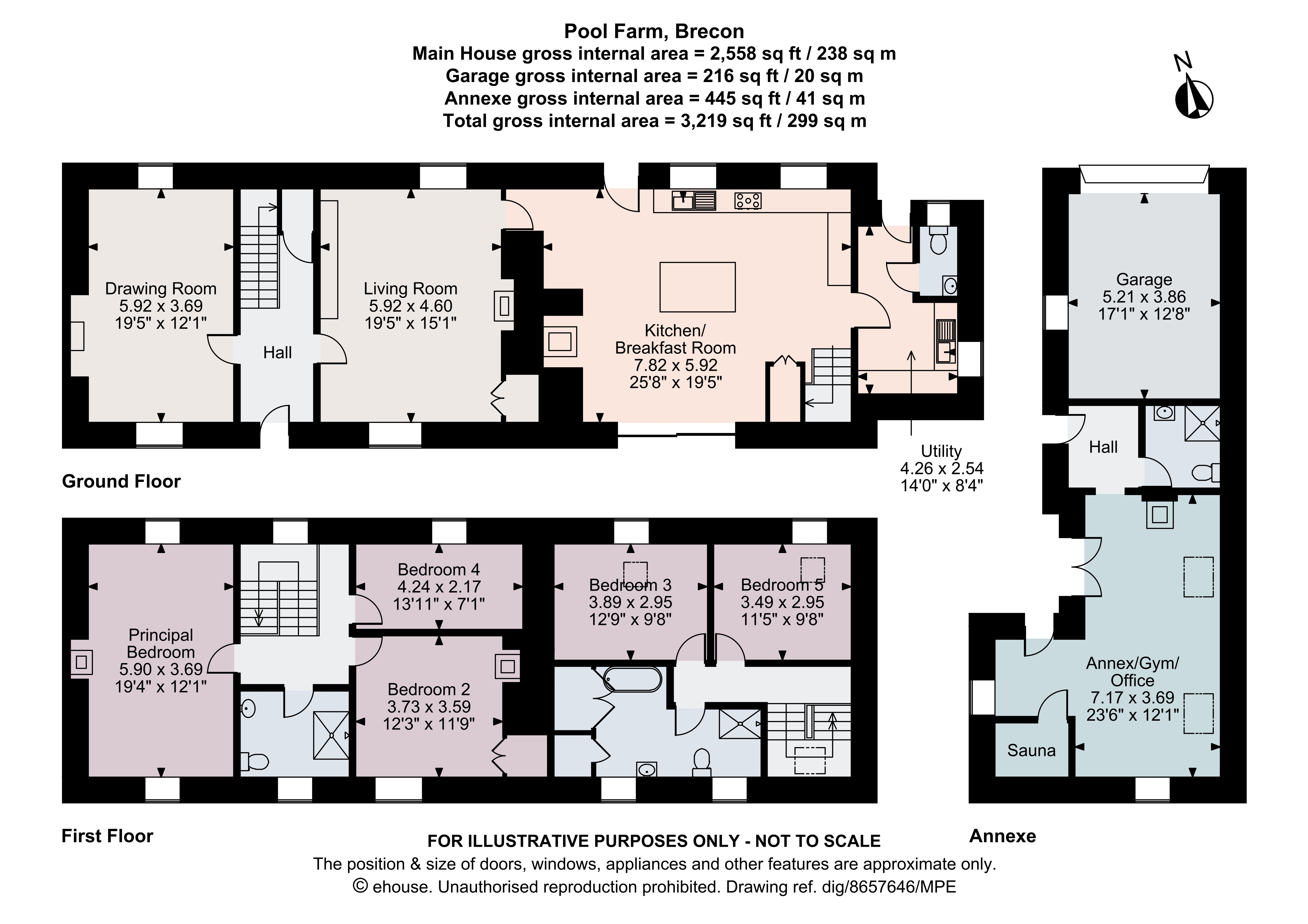 Charming 18th-Century Farmhouse with Modern Elegance in the Heart of the Brecon CountrysideDescriptionTucked away in the rolling countryside just three miles from the historic market town of Brecon, Pool Farm is a truly special home. Believed to date back to the 18th century, this characterful property has been lovingly restored and further enhanced by its current owners, who have taken great care to preserve its period charm while introducing thoughtful modern touches.Approached via a private, beech hedge-lined driveway, the farmhouse sits proudly within a tranquil courtyard shared with a small number of converted outbuildings. These former barns now serve as independent residences, creating a unique and secure community atmosphere. Nestled in this discreet setting, the house enjoys a wonderful sense of privacy and is not overlooked. The driveway opens into a generous parking area including an EV charger, leading to an orchard, mature trees, shrubs, and expansive lawns that frame the front of the house beautifully.Stepping inside, you're greeted by a welcoming entrance hall with traditional flagstone flooring that immediately sets the tone. The layout flows effortlessly into the two reception areas. Both rooms feature elegant sash windows, log-burning stoves, underfloor heating and painted stone walls. While the drawing room provides a cosy retreat with its stone fireplace, the generously sized family living room offers a perfect space for relaxation and gathering together. Window seats beneath dual-aspect windows allow peaceful views of the gardens and courtyard from both rooms.The heart of the home is the farmhouse kitchen, a warm and inviting space with exposed beams, flagstone floors, an aga range cooker, a large inglenook fireplace featuring a log burner, and a charming bread oven tucked to one side. Bi-folding doors open directly onto the gardens and an extensive patio area, seamlessly connecting indoor and outdoor living and making it easy to enjoy the tranquil surroundings from the heart of the house. This room is perfect for family gatherings, cooking, and entertaining, with ample space for a large dining table and relaxed seating.Adjacent to the kitchen is a practical utility room and downstairs WC, along with access to the boiler.The main staircase leads to a bright and spacious landing, where oak flooring continues the period feel. The principal bedrooms are generously proportioned, with charming features such as Victorian-style fireplaces and sash windows that flood the rooms with natural light. A well-appointed bathroom serves this wing of the house.From this floor, you can gaze across the landscape and catch glimpses of the summit of Pen Y Fan, the highest peak in South Wales, rising gently above the surrounding hills-a daily reminder of the awe-inspiring beauty of the Brecon Beacons.A secondary staircase leads to a guest wing, offering privacy and flexibility for children, visitors or multi-generational living. Here, you'll find additional bedrooms with exposed roof trusses and a second bathroom, complete with a bath and storage cupboard housing the hot water cylinder. This thoughtful layout allows for separation between family and guest accommodation, enhancing comfort and convenience.Outside, the grounds are a true highlight. The front garden is laid out to lawn and dotted with mature trees and flowering borders, a herb garden, and a rill, creating a serene and picturesque setting against the backdrop of the surrounding hills. To the rear of the garden, a generous vegetable plot with thoughtfully designed raised beds provides abundant space for growing fresh produce, offering both practicality and an appealing focal point for keen gardeners.A converted barn now serves as a garage and office/recreation room with its own dedicated access to fibre broadband, ideal for home working, hobbies, a gym or additional living space with a shower room.Pool Farm benefits from mains electricity and water, private drainage, solar panels and oil-fired central heating. The location offers the best of both worlds: Peaceful rural living with easy access to Brecon's shops, amenities and independent and mainstream schools. The property is within walking distance of the scenic Cradoc Golf Course, which boasts stunning views of the Brecon Beacons National Park.Square Footage: 2,558 sq ftAcreage:0.5 AcresAdditional InfoMains water and electricity.Oil fired central heating.Drainage via a shared septic tank.Solar panels to the roof of the main house, with storage batteries.