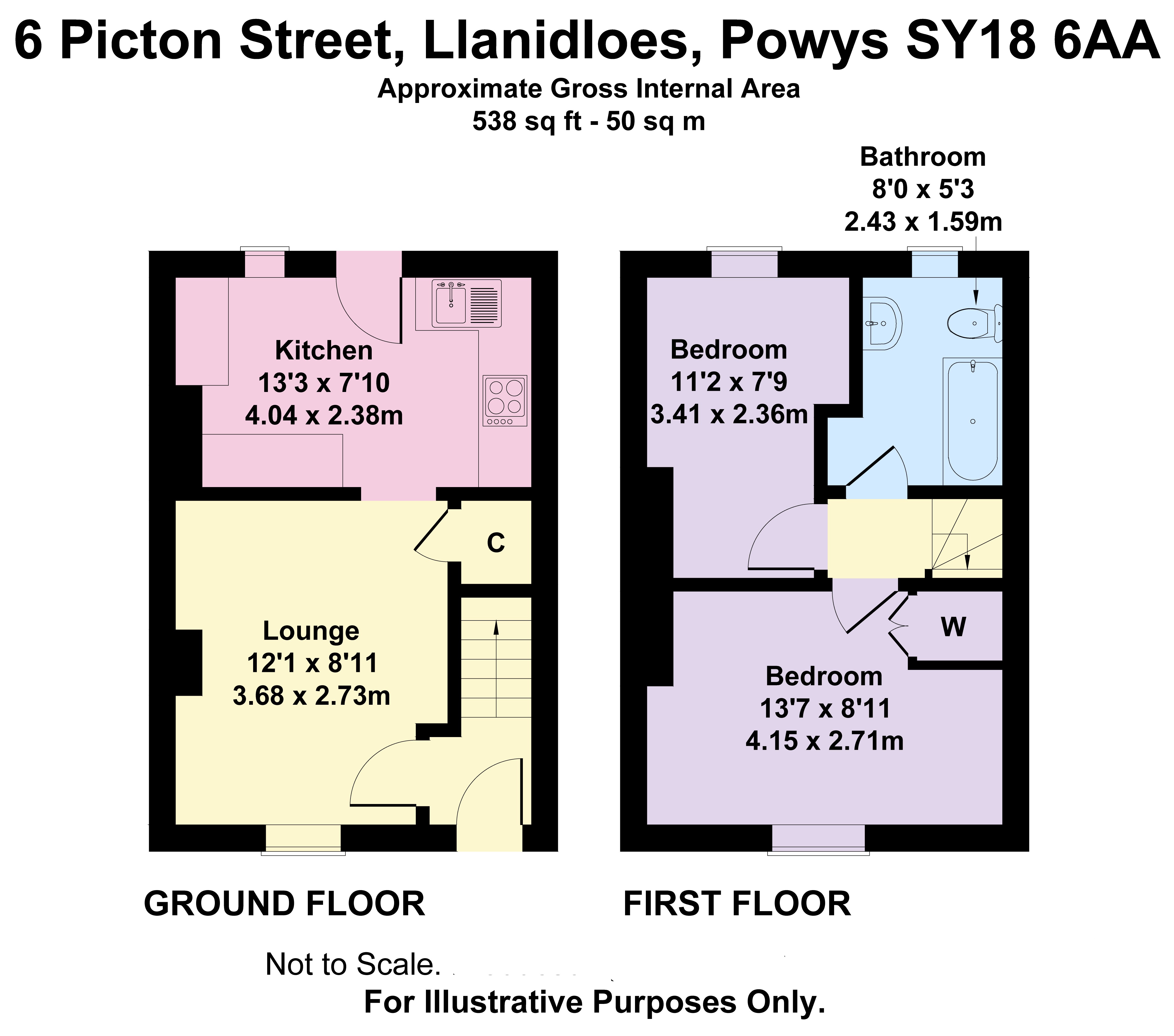 Well appointed mid terrace dwelling situated just off the main town centre with its range of cafes & shops. Close to the riverside walk at Severn Porte. Llanidloes benefits from primary & high schools, sports centre & recreational facilities and is convenient to a number of popular tourist attractions (ie) Clywedog Reservoir and Hafren Forest with its boardwalk to the source of the River Severn. The larger market town of Newtown is 14 miles away and the coastal university town of Aberystwyth 32 miles.This well presented town cottage has gas central heating, sash double glazed windows and would make an ideal home or let with its private rear courtyard seating area.Ground floorEntrance Hall, front entrance door, oak floor, staircase to first floorLiving Room with woodburning stove in recess with shelves either side, oak flooring, spotlights, understairs cupboardKitchen with fitted units to wall & floor with timber worktop surfaces, breakfast bar, 11⁄2 bowl stainless steel sink unit, space for cooker with extractor hood over, gas & electric cooker points, partly tiled walls, plumbing for dishwasher & washing machine, quarry tiled floor, rear glazed entrance door, gas central heating boilerFirst floorLanding with access to loftFront Bedroom with built in wardrobesRear BedroomBathroom with white suite comprising pedestal wash basin in storage cupboard surround with mirror over, WC., panelled bath with shower over, half glazed shower screen, part tiled walls, tiled floor, spotlightsCommon rear passageway with right of way to No 6 via the adjoining properties. Courtyard seating area with tiled patio, outside power point & light.ServicesElectricity, gas, water & drainage connected. Gas central heating.TenureFreehold. Land Registry Title No: