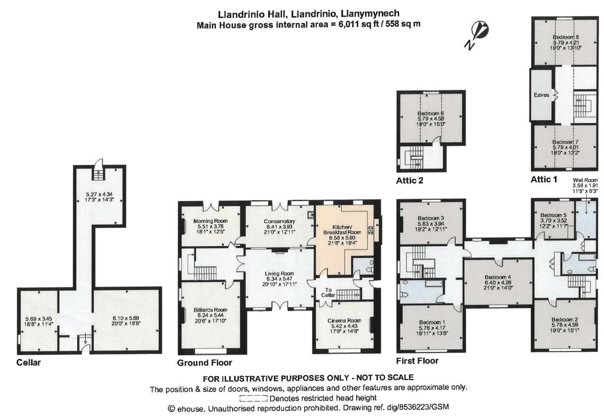 With no onward chain! Nestled in the picturesque village of Llandrinio, Llanymynech, this stunning Grade ll* listed period country residence offers a unique opportunity for those seeking a spacious and characterful home. Spanning an impressive 6011 square feet, the property boasts eight generously sized bedrooms and five elegant reception rooms, providing ample space for both family living and entertaining. As you approach the residence, you are greeted by a charming tree-lined driveway that sets the tone for the tranquil rural setting. The expansive grounds extend to 1.42 acres, offering a delightful garden space that is perfect for outdoor activities or simply enjoying the serene surroundings. With parking available for up to ten vehicles, this property is ideal for hosting guests or accommodating a large family. The interior of the home is rich in original character, showcasing period features that add to its charm and appeal. While the property is already impressive, there is also significant scope for improvement, allowing new owners to personalize the space to their taste and lifestyle. This beautiful country residence is not just a home; it is a lifestyle choice, offering a peaceful retreat from the hustle and bustle of everyday life while still being conveniently located for local amenities. Whether you are looking for a family home or a property with business potential, this property is sure to impress. Do not miss the chance to make this exceptional residence your own.DirectionsFrom Oswestry take the A483 towards Welshpool until you reach Four Crosses. At the roundabout take the second exit towards Welshpool. Follow the road along and after approximately 1/2 a mile turn left sign posted Llandrinio. Follow the road into the village and go past the village public house. The driveway that leads down to the property will be found on the right hand side after approximately 1/4 of a mile and will be identified by our for sale board.Accommodation ComprisesThe HallwayThe hallway has a part glazed door to the side and doors leading to the cinema room, living room, cloakroom and kitchen/breakfast room with a staircase leading to the first floor. A door also gives access to the cellars.Cellar One (5.69m x 3.43m (18'8" x 11'3" ))The cellars are split into three areas with steps leading down from the hallway.Cellar Two (6.10m x 5.69m (20'0" x 18'8" ))Cellar Three (5.27m x 4.34m (17'3" x 14'2" ))Cloak RoomThe cloakroom has a w/c and a wash hand basin.Cinema Room (5.42m x 4.43m (17'9" x 14'6"))The cinema room has a large window to the front, an inset fireplace with a marble surround, dado rail and two School style cast-iron radiators.Living Room (6.34m x 5.47m (20'9" x 17'11"))The large living room has two sash windows to the front, French doors leading out to the front, two sash style windows to the rear looking into the conservatory, inset cast iron log burner with stone surround and slate hearth, School style cast iron radiator and double doors leading to the inner hallway .Additional PhotoInner HallwayThe inner hallway has doors leading off to the billiard room and the morning room, large original wooden turned Caroleanne staircase leading to the first floor and a School style cast-iron radiator.Billiard Room (6.24m x 5.44m (20'5" x 17'10"))The billiard room is another great reception space having a large sash window to the front, stripped original wood flooring, dado railing, a cast iron inset fireplace with marble surround and a sash window to the side and spot lighting.Morning Room (5.51m x 3.78m (18'0" x 12'4"))The morning room has French doors to the rear, a door leading to the conservatory and an inset cast iron fireplace with surround, school style cast iron radiator and wood floor.Conservatory (6.41m x 3.93m (21'0" x 12'10"))The bright conservatory has French doors to the rear of the property, two large windows to the rear overlooking the gardens, a Belfast sink, a door leading to the kitchen/breakfast room, tiled floor and two School style cast iron radiators .Kitchen/Breakfast Room (6.56m x 5.90m (21'6" x 19'4"))The large kitchen/breakfast room has two sash windows to the rear, a good range of fitted wall and base units with work surfaces over, stainless steel sink, plumbing for a washing machine, space for a double cooker, spotlighting, school style cast iron radiator and quarry tiled flooring.Additional PhotoThe StaircaseFirst Floor LandingThe first floor landing has the original wooden turned staircase leading to the second floor, original stripped wood floor and doors leading off to the rear hallway, bedrooms, bathroom and second landing.Bedroom One (5.76m x 4.17m (18'10" x 13'8"))Bedroom one has a large sash window to the front, school style cast iron radiator, wall lighting and the original stripped wooden floor .Family BathroomThe family bathroom has the original wood floor and a sash window to the side, a W/C, wash hand basin, part tiled walls, a panelled bath with mains shower over and glass screen and a School style cast iron radiator.Bedroom Two (5.78m x 4.59m (18'11" x 15'0" ))Bedroom two has a sash window to the front of the property, original stripped wooden floor, school style cast iron radiator and wall lighting.Bedroom Three (5.83m x 3.94m (19'1" x 12'11"))Bedroom three has a sash window to the rear and inset fireplace, wall lighting and the original stripped wooden floor .Bedroom Four (6.40m x 4.26m (20'11" x 13'11"))Bedroom four has a sash window to the front, original stripped wooden floor, wall lighting and a school style cast iron radiator .Second BathroomThe second bathroom has a w/c, wash hand basin, panelled bath with mains shower over, stripped wood flooring, part tiled walls and a sash window to the side.Bedroom Five/Laundry (3.70m x 3.52m (12'1" x 11'6"))Bedroom five has a window to the rear, wooden floor, wall lighting and a school style cast iron radiator .Wet RoomThe wet room has a mains powered shower, a window to the rear, wall lights and part pe