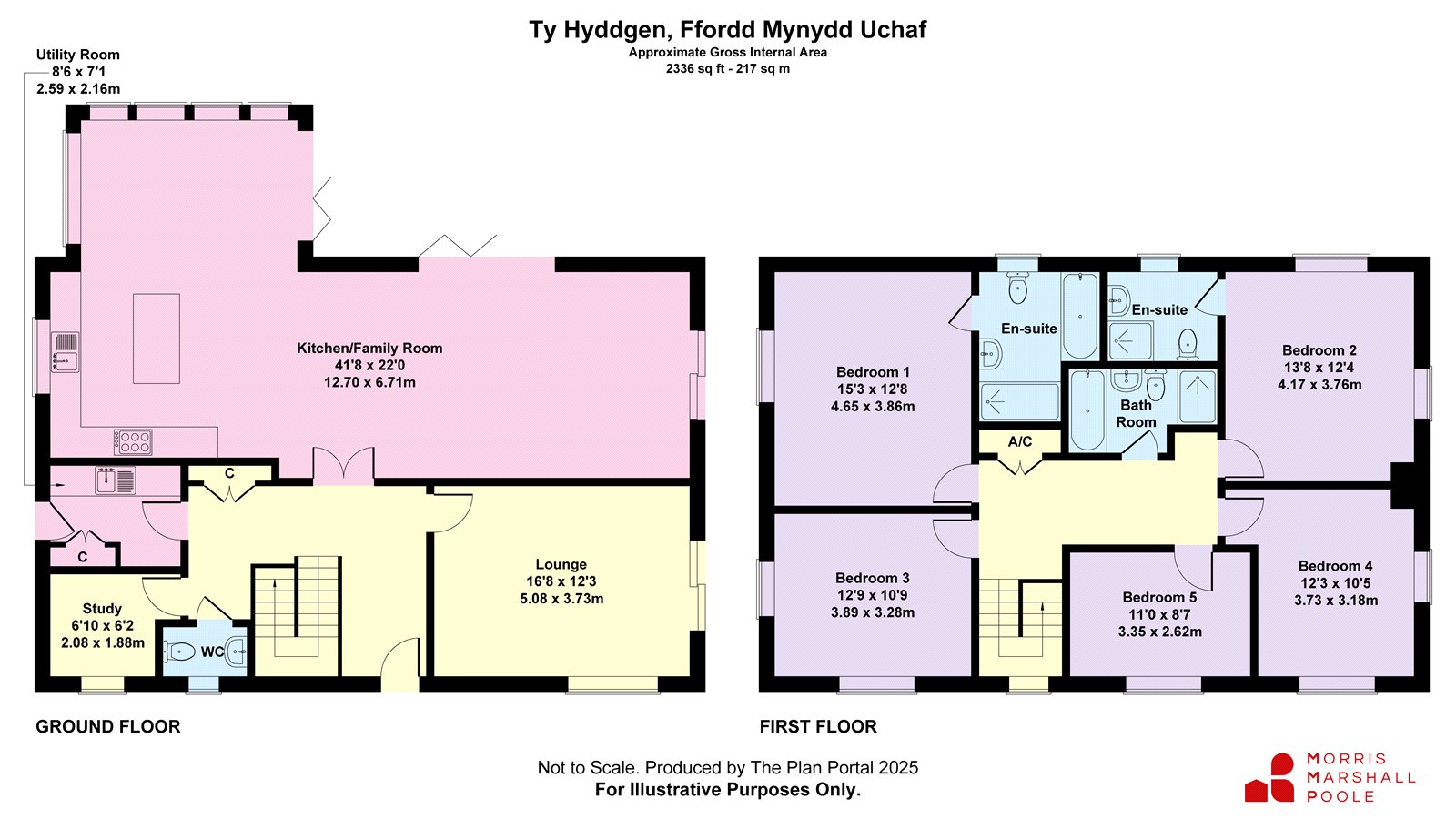 Presented in immaculate condition, this premier quality, energy-efficient home, built in 2020, offers adaptable accommodation and high-quality fixtures and fittings throughout. This stunning 5-bedroom detached house offers a perfect blend of luxury and comfort, boasting a bright and spacious interior, exuding a modern and stylish charm throughout and is perfect for both family living and entertaining guests. Situated in a peaceful and scenic location, the property features a beautiful garden, ideal for outdoor entertaining or simply relaxing in the natural surroundings. With off-street parking and a double garage, convenience is at the forefront of this home.Located on the edge of town, this property offers a quiet lifestyle with panoramic views, while still being close to local amenities and the train station. Set on over two acres of land, there is ample space for outdoor activities and enjoying the stunning views of the countryside. This stylish property presents a rare opportunity to own a prestigious home in a desirable location.The accommodation briefly comprises:Wide Entry Hall; with wood effect ceramic tiles. Cloaks cupboard, under stairs storage and doors toWC with vanity wash hand basin, low level WC and wood effect ceramic tiles.Study (6'10 x 6'2); with wood effect ceramic tile floor and window to front.Utility Room (7'1 x 8'6 max); with wood effect ceramic tile floor, shaker style base and wall units to one wall. Stainless steel sink unit, plumbing for automatic washing machine. Utility cupboard housing hot water tank and external door to side.Lounge (16'8 x 12'3); with wood effect ceramic tile floor, Opus wood burner with slate hearth surround and sliding patio doors to garden with views across the Dyfi Valley.Kitchen/Family Room (41'8 x 22'); Open plan comprising a multi-use space including a Dining Area, Lounge and Kitchen with wood effect ceramic tiles. Kitchen comprises a shaker style base and wall units to two walls, central island in contrasting colour, white quartz worktop. Stainless steel sink inset and integrated appliances including dishwasher, 2 Neff electric ovens, Neff 5 ring induction hob with extractor fan over and space for large fridge/freezer. Dining Area boasts a vaulted ceiling with full glazing surrounding giving it a light and airy atmosphere with bi-fold doors to the rear patio seating area. Lounge offers a spacious family area with ample space for seating and activities, bi-fold doors lead to rear patio with sliding patio doors to side lawn. Opus wood burning stove with slate hearth and surround.First Floor:Large Landing with loft access and Airing Cupboard. Loft is boarded for storage with a pull down ladder.Bedroom 1 (12'8 x 15'2); with views across surrounding hillside. En-suite Bathroom with walk-in shower and separate bathtub, vanity wash hand basin with backlit mirror over, WC, heated towel rail and ceramic tile floor.Bedroom 2 (13'8 x 12'4) with dual aspect; window to rear of the property, deep casement picture window to side with views across the Dyfi Valley. En-suite Shower Room with walk-in shower, vanity wash hand basin with backlit mirror above, WC, heated towel rail and ceramic tile floor.Bedroom 3 (10'9 x 12'9) with dual aspect; offering views across surrounding hills.Bedroom 4 (10'5 x 12'3) with dual aspect; offering views over surrounding hills and across the Dyfi Valley.Bedroom 5 (8'7 x 11') with window to front.Family Bathroom; double shower cubicle, separate bathtub, vanity wash hand basin with backlit mirror above, WC, heated towel rail and ceramic tile floor.To the front of the property, there is a wide gravelled driveway with parking for multiple vehicles. A gravel pathway extends to either side of the property, opening to a large, paved patio seating area to the rear which can be accessed internally from the Kitchen/Family room via Bi-Fold doors. To one side of the property there is a recently landscaped area, laid to lawn, with a small nature pond, teeming with wildlife, and stunning panoramic views across the Dyfi Valley. To the other side of the property, the gravel path extends into a courtyard area with a rear porch housing the air source heat pump and external water tank. There is also side access to the Garage and steps up to the additional land.The Garage (21’ x 17’9) is a recent addition to the property and provides ample parking space for two vehicles behind an electric powered roller door. Here the solar inverter is housed and there is an EV charger port. Stairs lead to the full height Mezzanine above which has power, lights and internet connected. There are sliding patio doors offering views across the surrounding mountains and pasturelands, with space beyond for the introduction of a decking area.There are 2 acres of additional land which is fully enclosed and boasts panoramic views. The land has been planted with over 800 trees in a regenerative way with a mixture of native species including Hawthorn, Wild cherry, and Oak; all of which are approximately 4 years old.